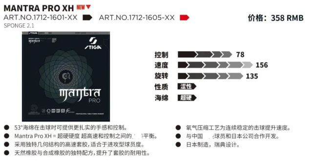 STIGA斯帝卡MANTRA PRO咒语M梵语H胶皮球拍反胶XH套胶
