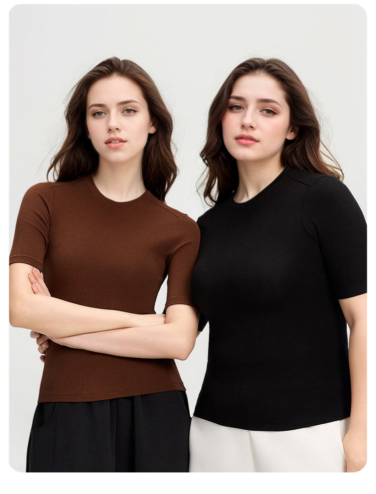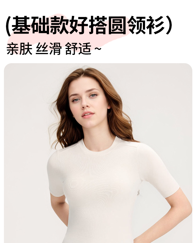 圆领短袖针织衫无缝一体设计舒适材质春季上衣BW542501