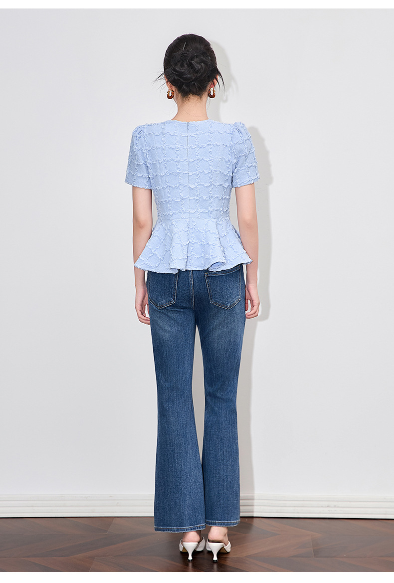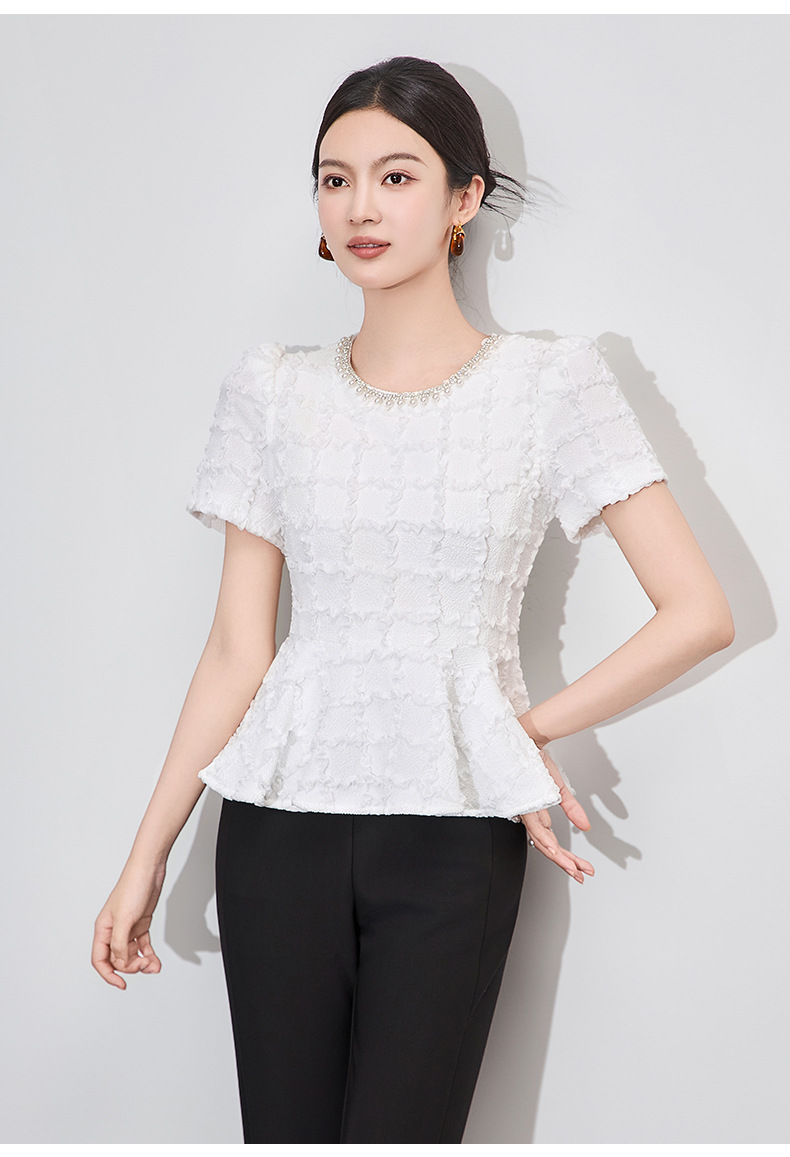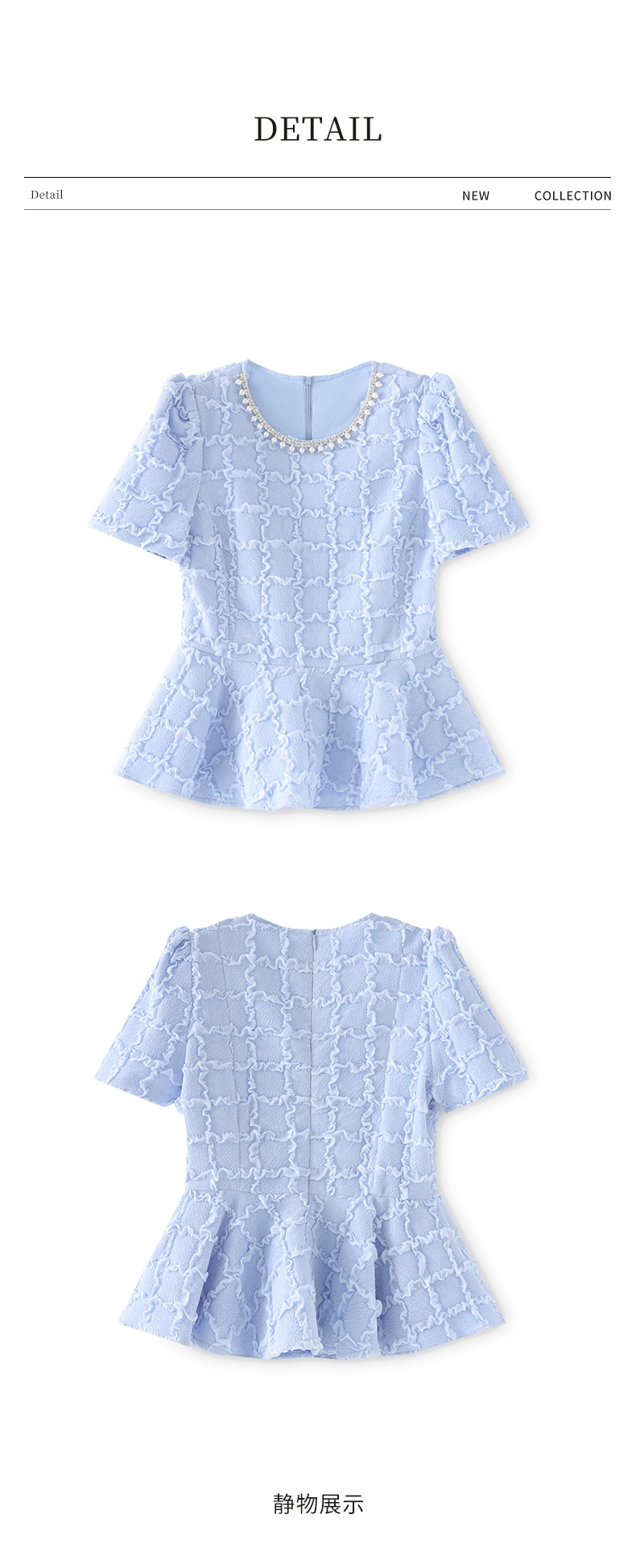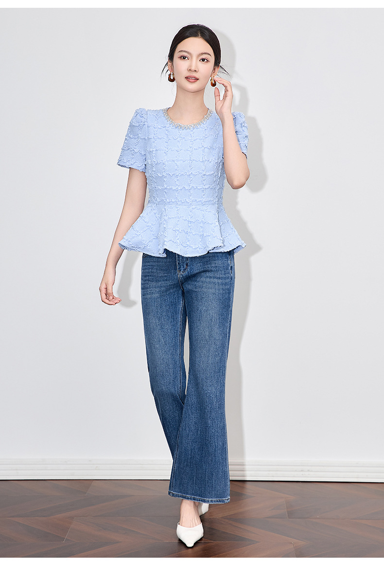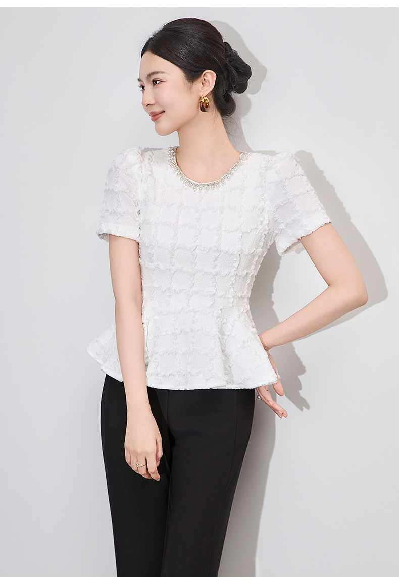 「高货wl」全新升级【铂金会员220/天猫299/差价79】(13126)洛诗琳优雅气质肌理感T恤2025夏款荷叶边收腰鱼尾上衣