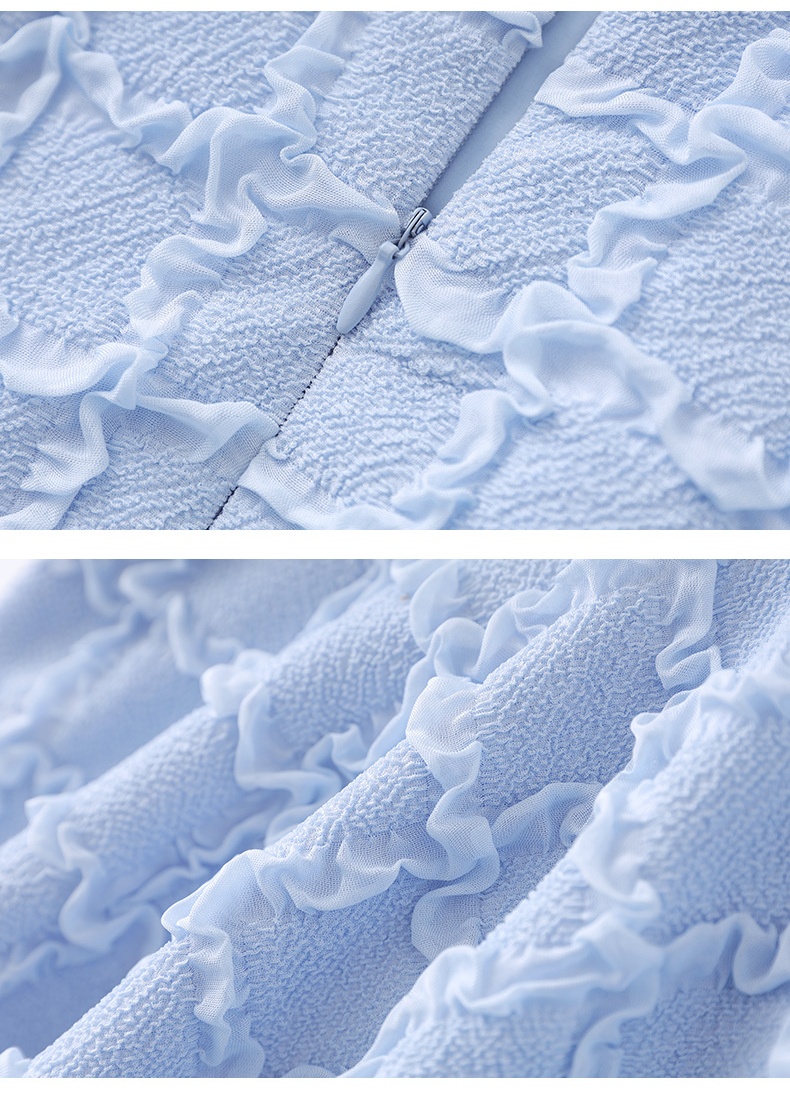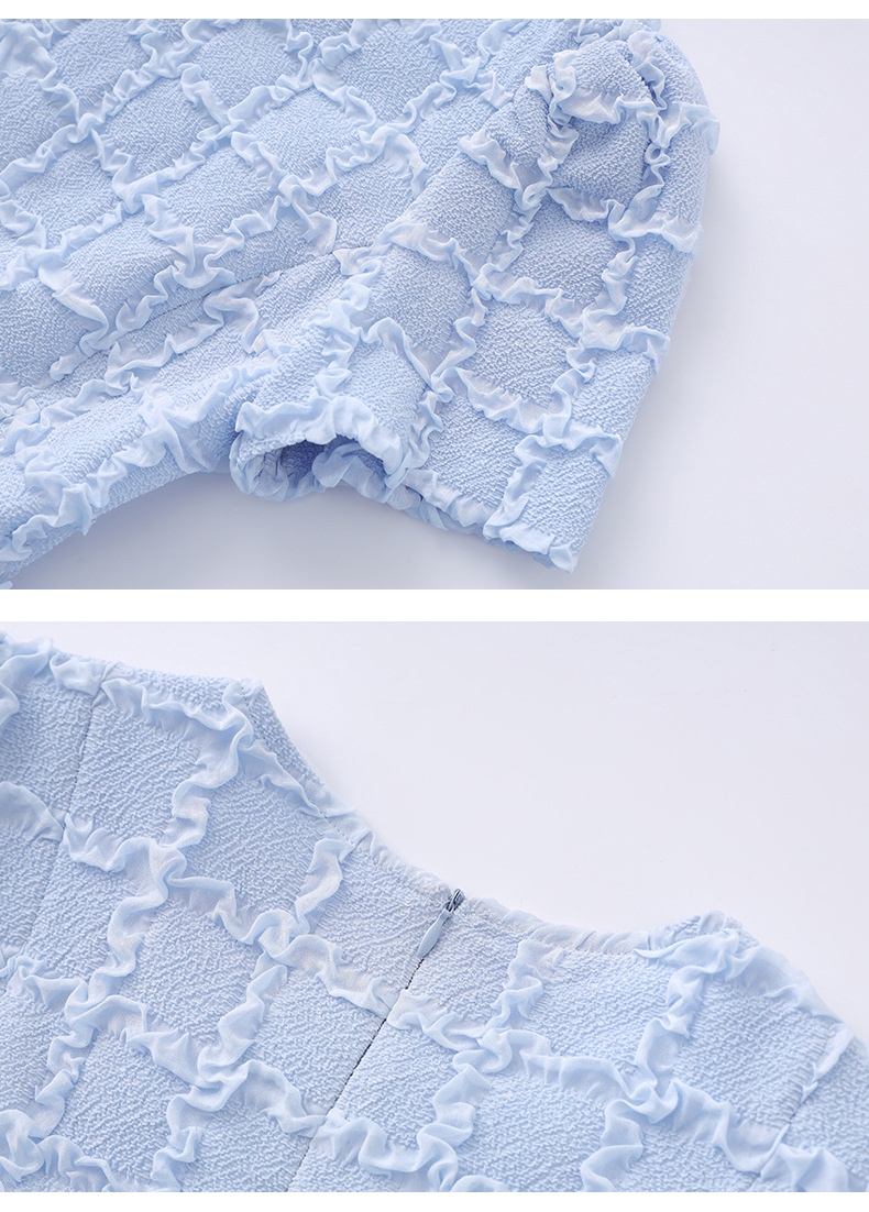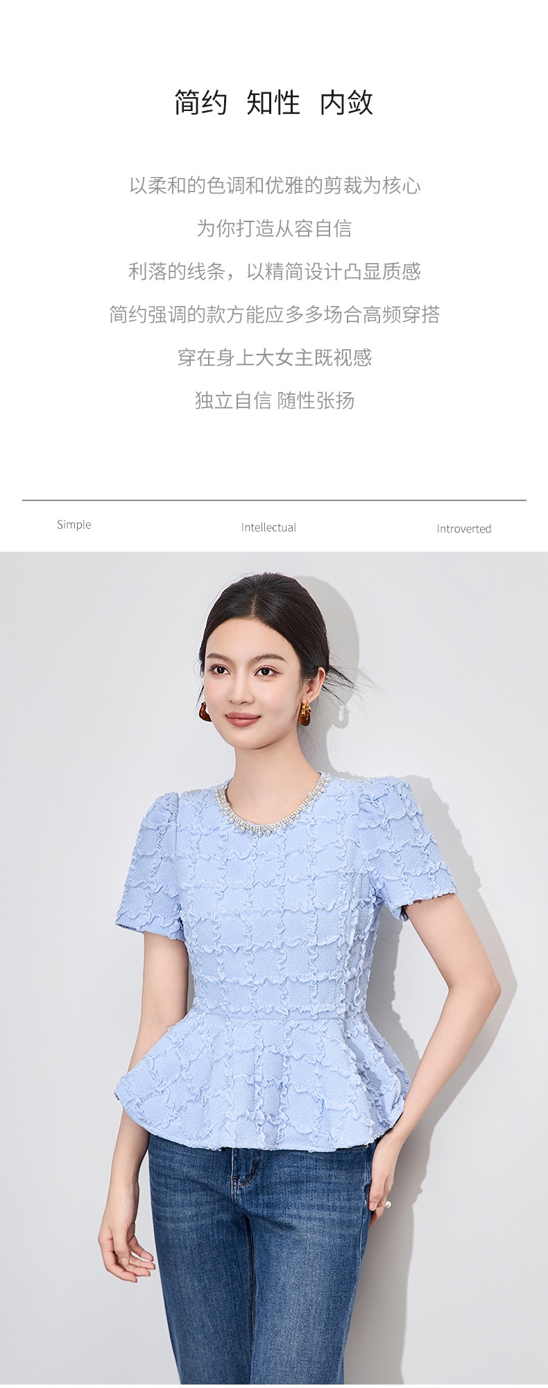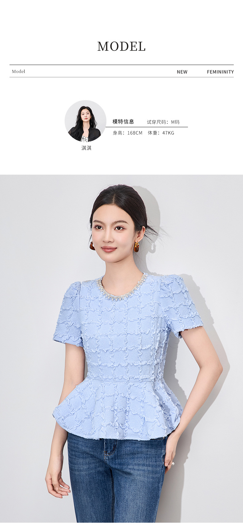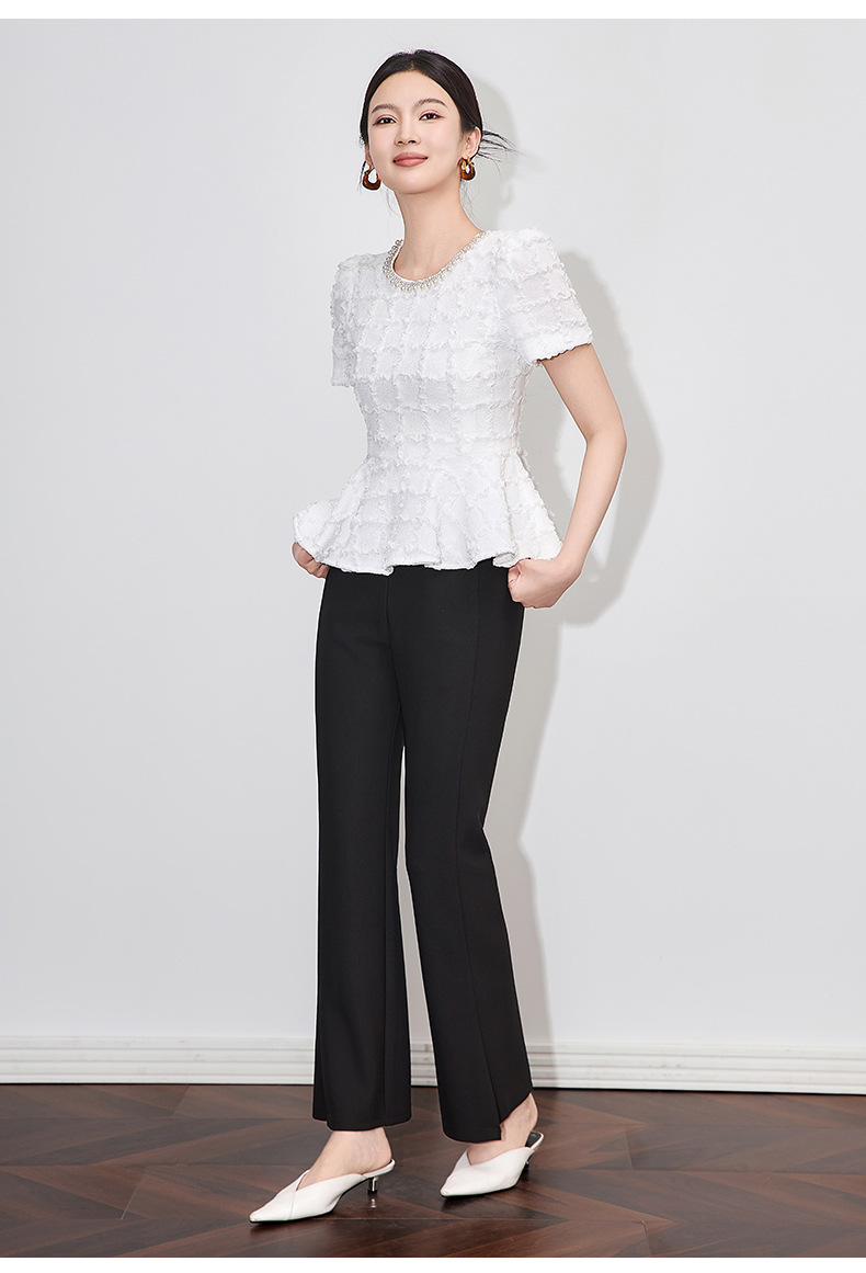 「高货wl」全新升级【铂金会员220/天猫299/差价79】(13126)洛诗琳优雅气质肌理感T恤2025夏款荷叶边收腰鱼尾上衣