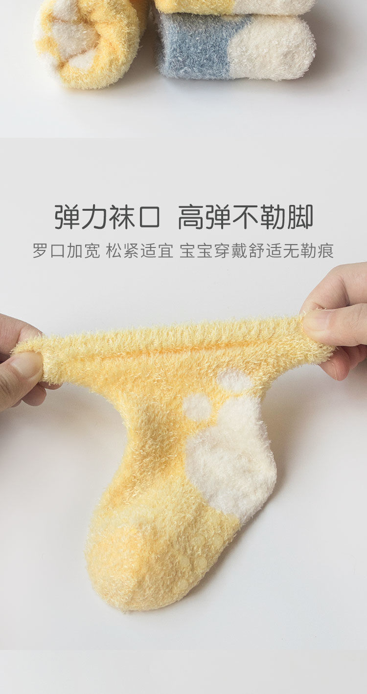 【任选三双/19.9,少拍不发货】儿童毛毛袜子秋冬款新生儿棉袜保暖防滑不勒腿中筒袜,毛毛绒绒的外观增添可爱氛围,防滑底部贴心设计为宝宝打造稳定步履。ry