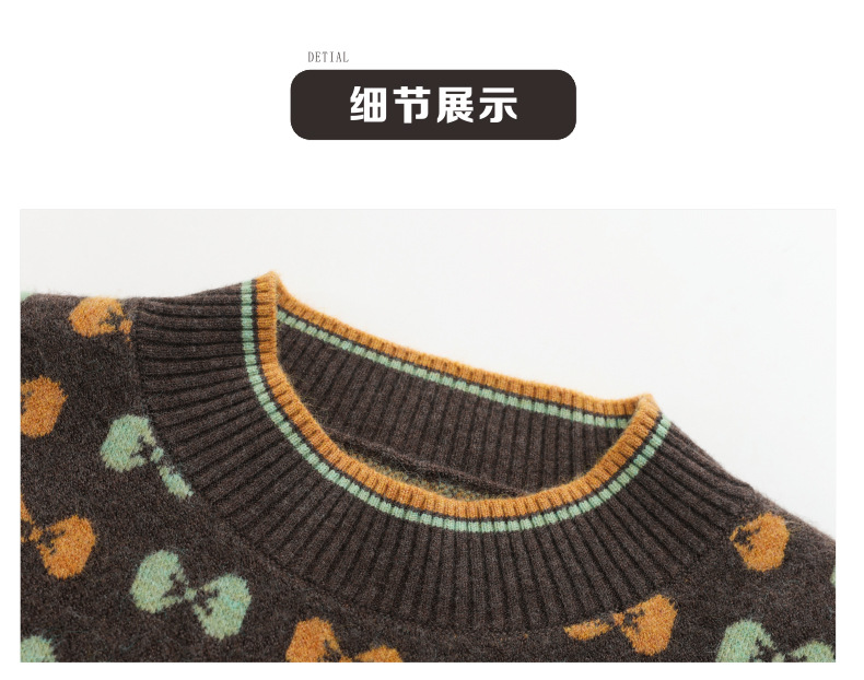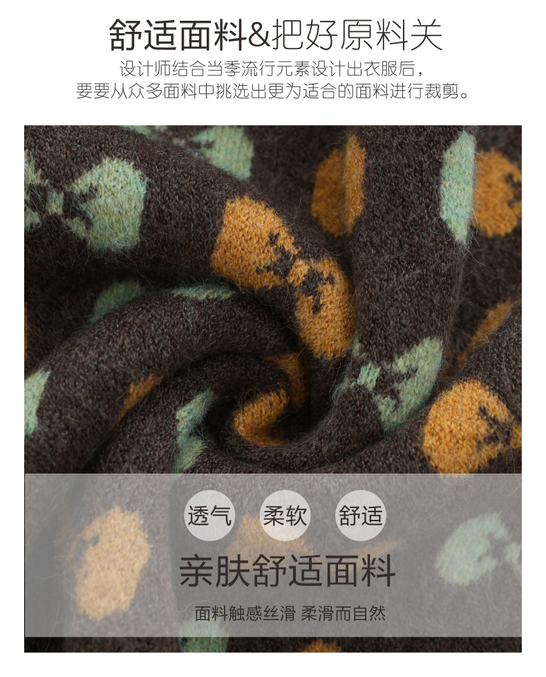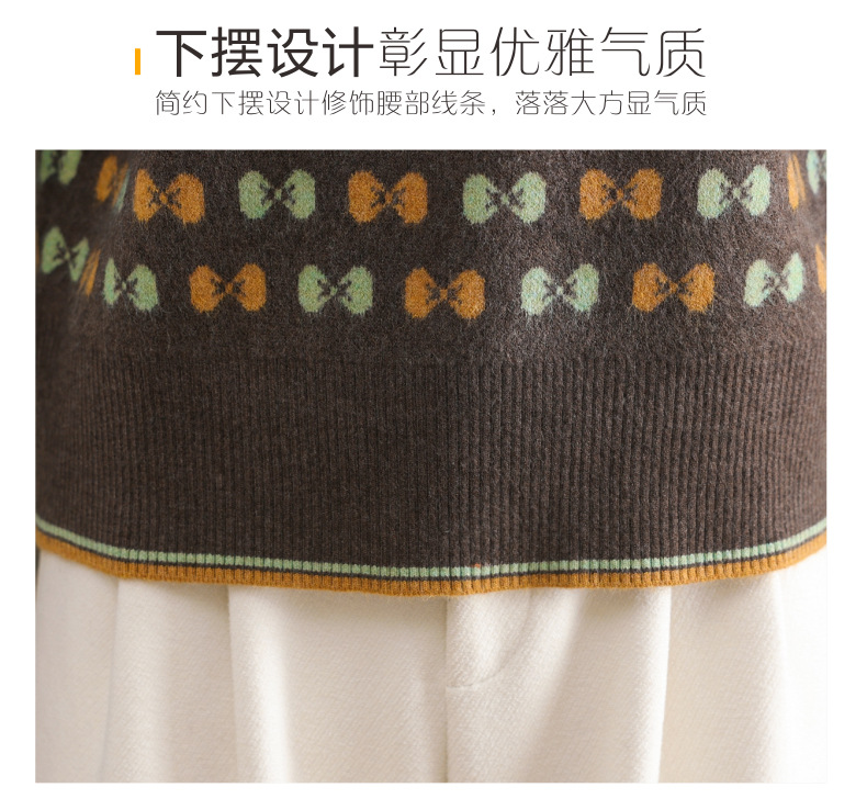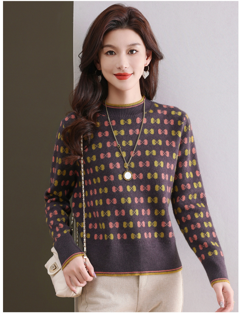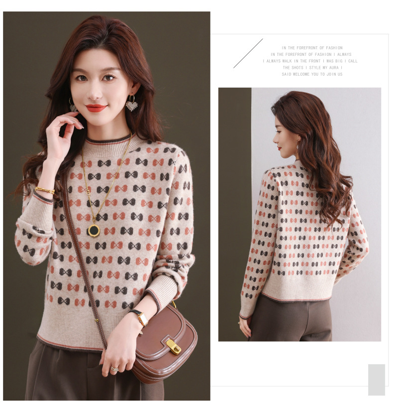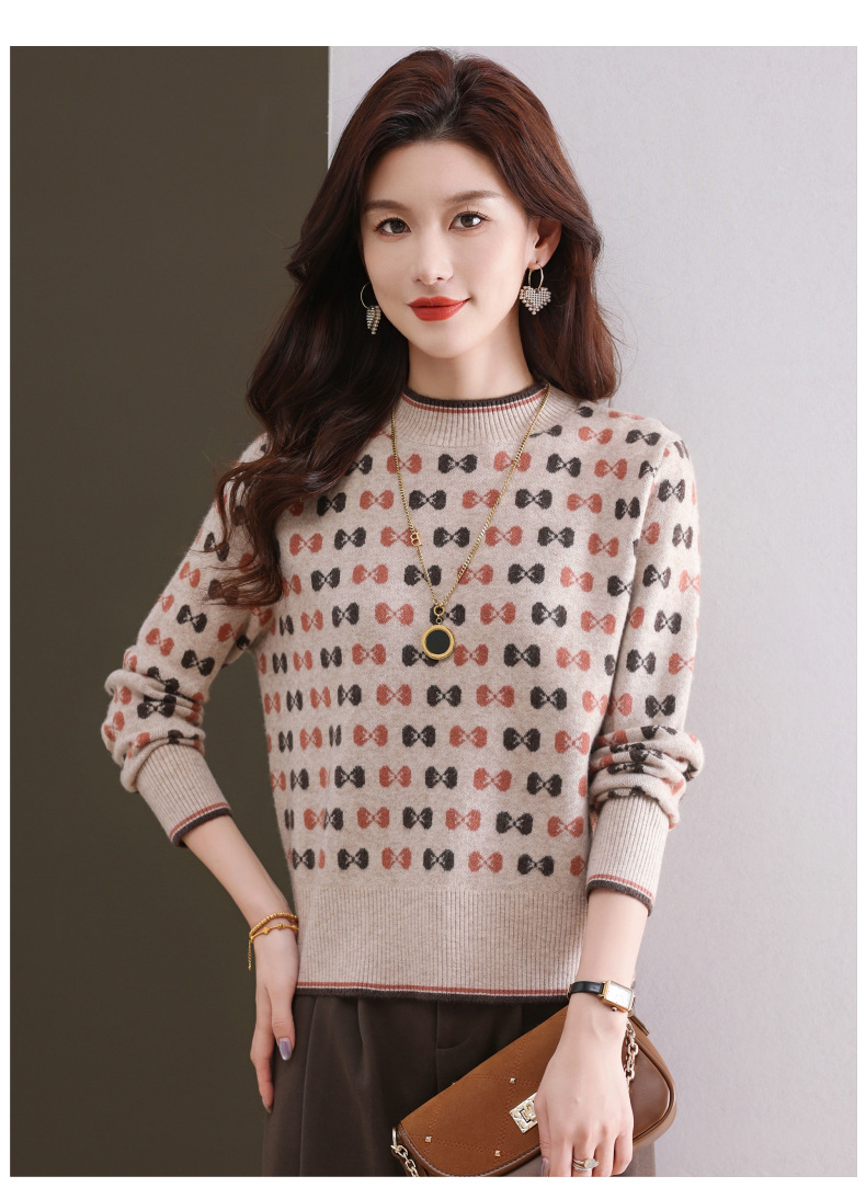CC-101-59858半高领复古毛衣女秋冬2024厚款宽松提花气质内搭中领针织打底衫女