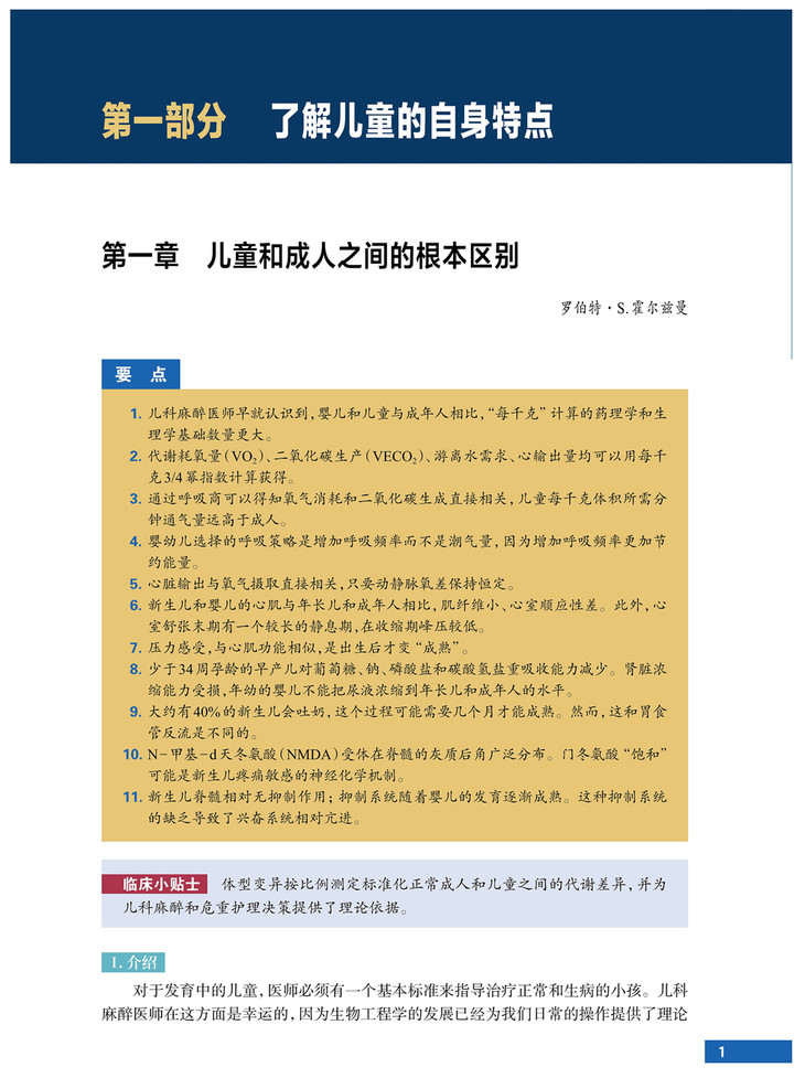除了技术、设备以及人员方面调整,儿童的疾病与成人并没有太大的不同。然而,有许多儿童(包括年龄较大的儿童)的疾病不在成人麻醉医师的范围之内。因此,理解儿童麻醉的经历和发展对我们临床工作有一定的指导意义。