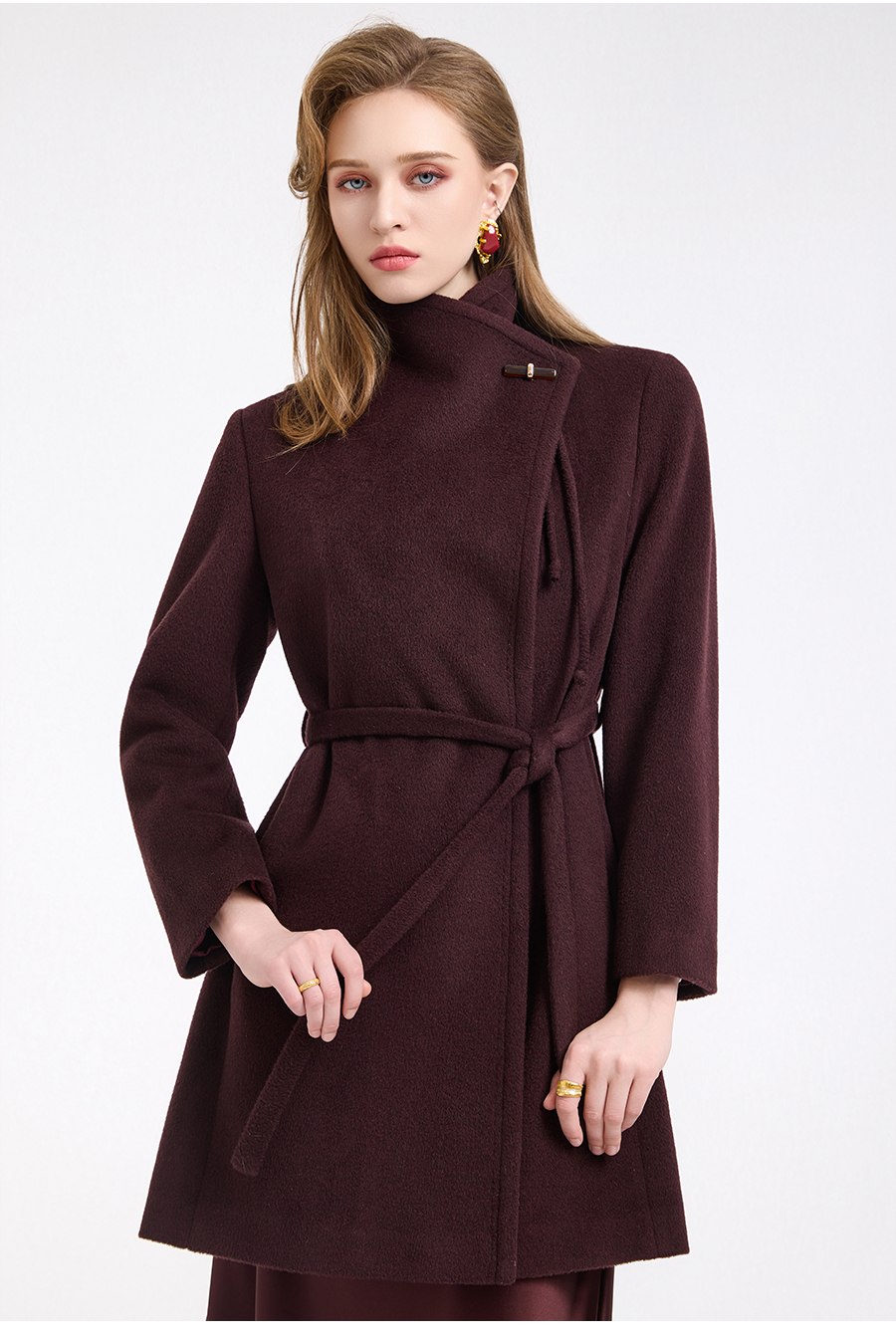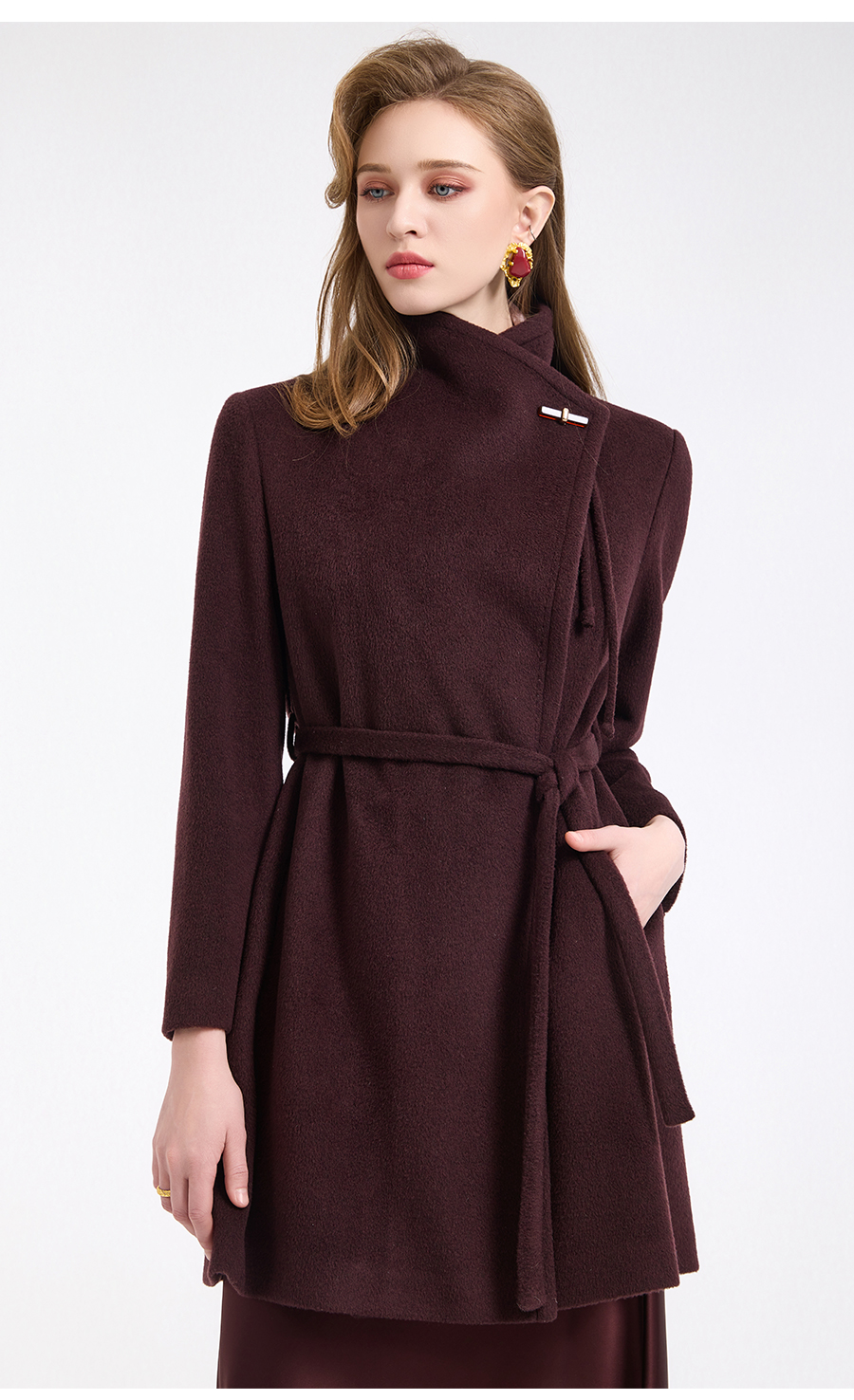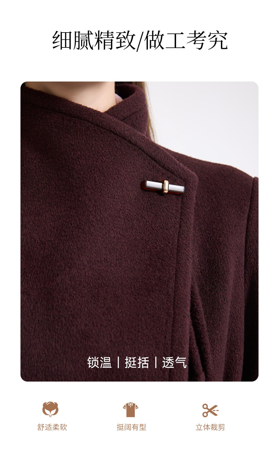 乔万尼冬新品100%绵羊毛不对称立领设计毛呢大衣ED4A770