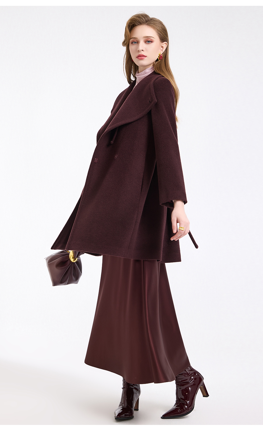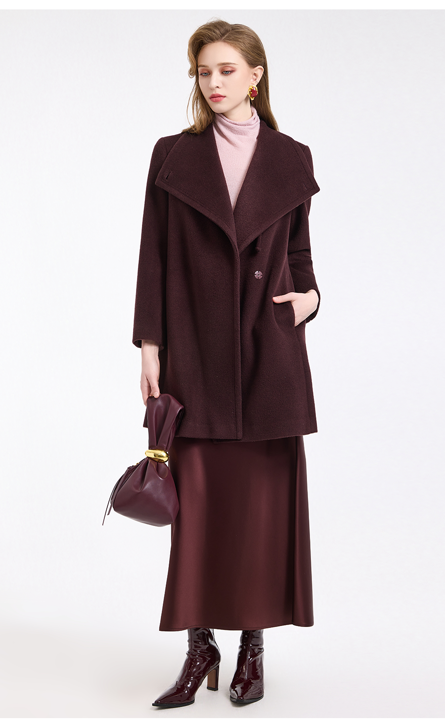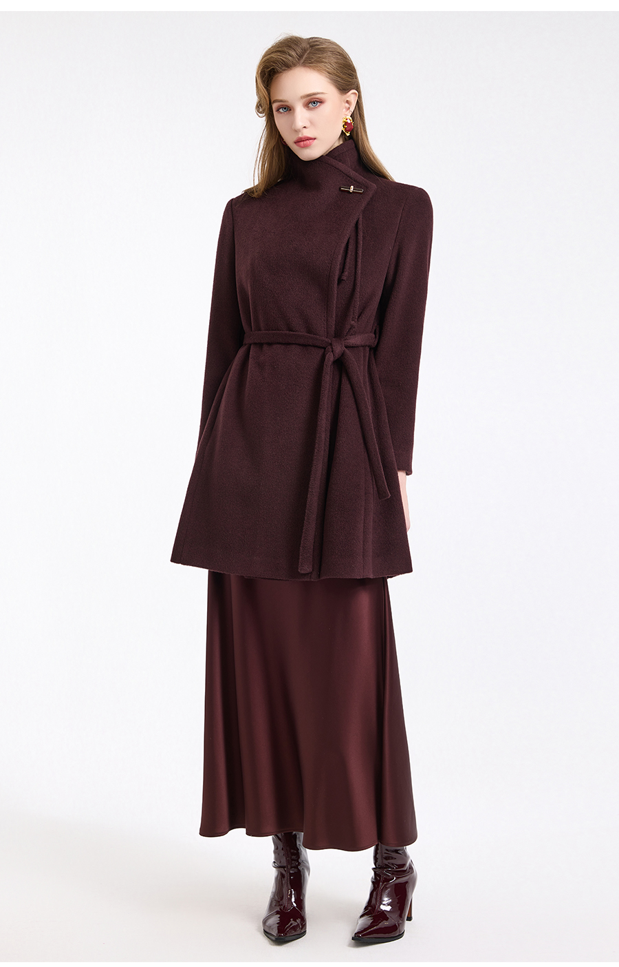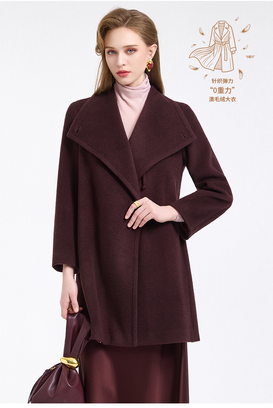 乔万尼冬新品100%绵羊毛不对称立领设计毛呢大衣ED4A770