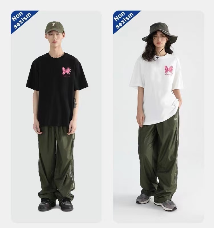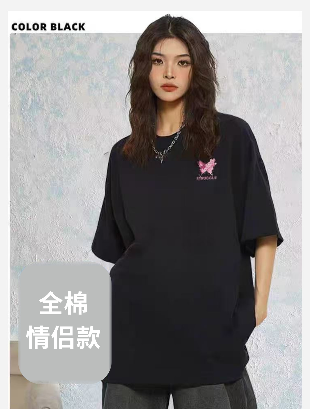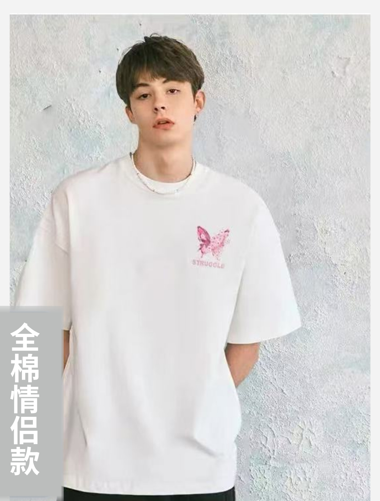 工厂直促价【100%棉】情侣(樱花蝴蝶-侧标)柯式印花短袖T恤-喜出