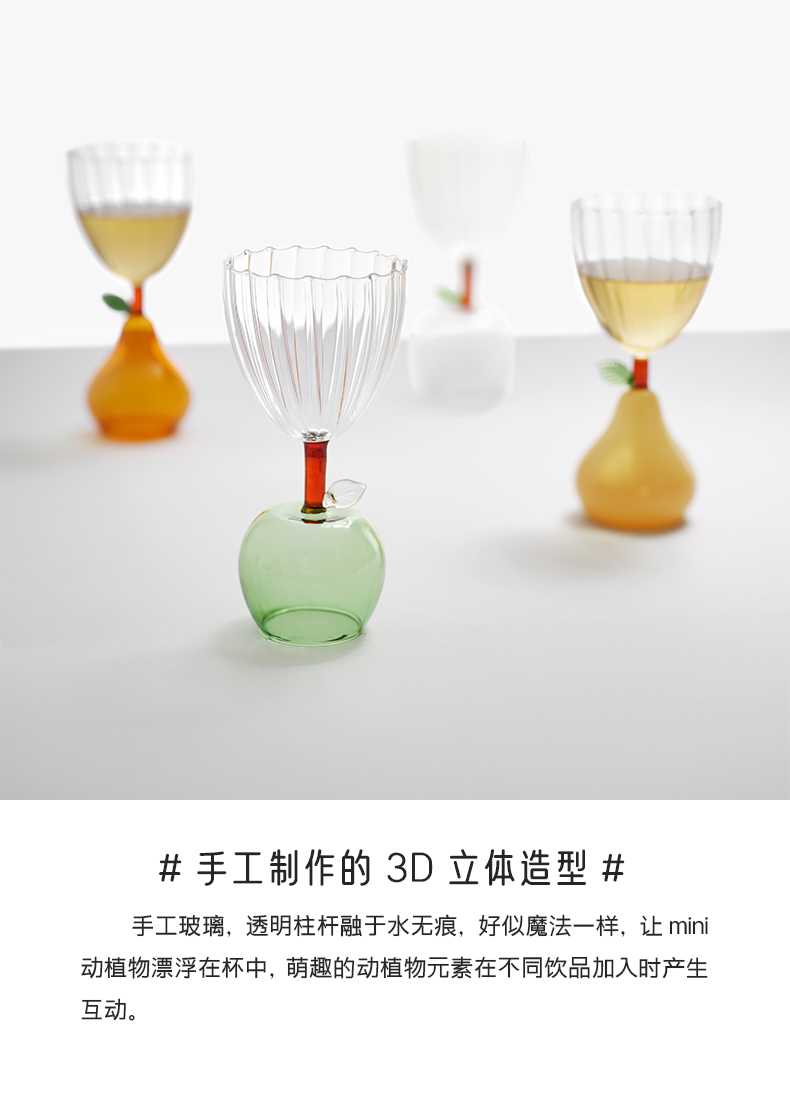 ICHENDORF 花果系列意大利进口手工可爱立体花型耐热玻璃水杯