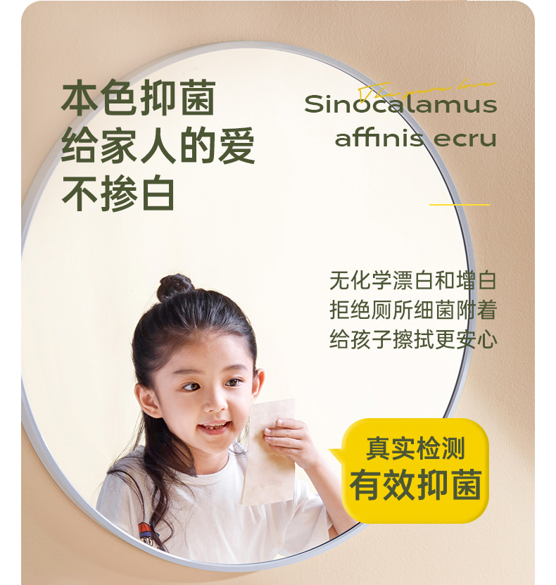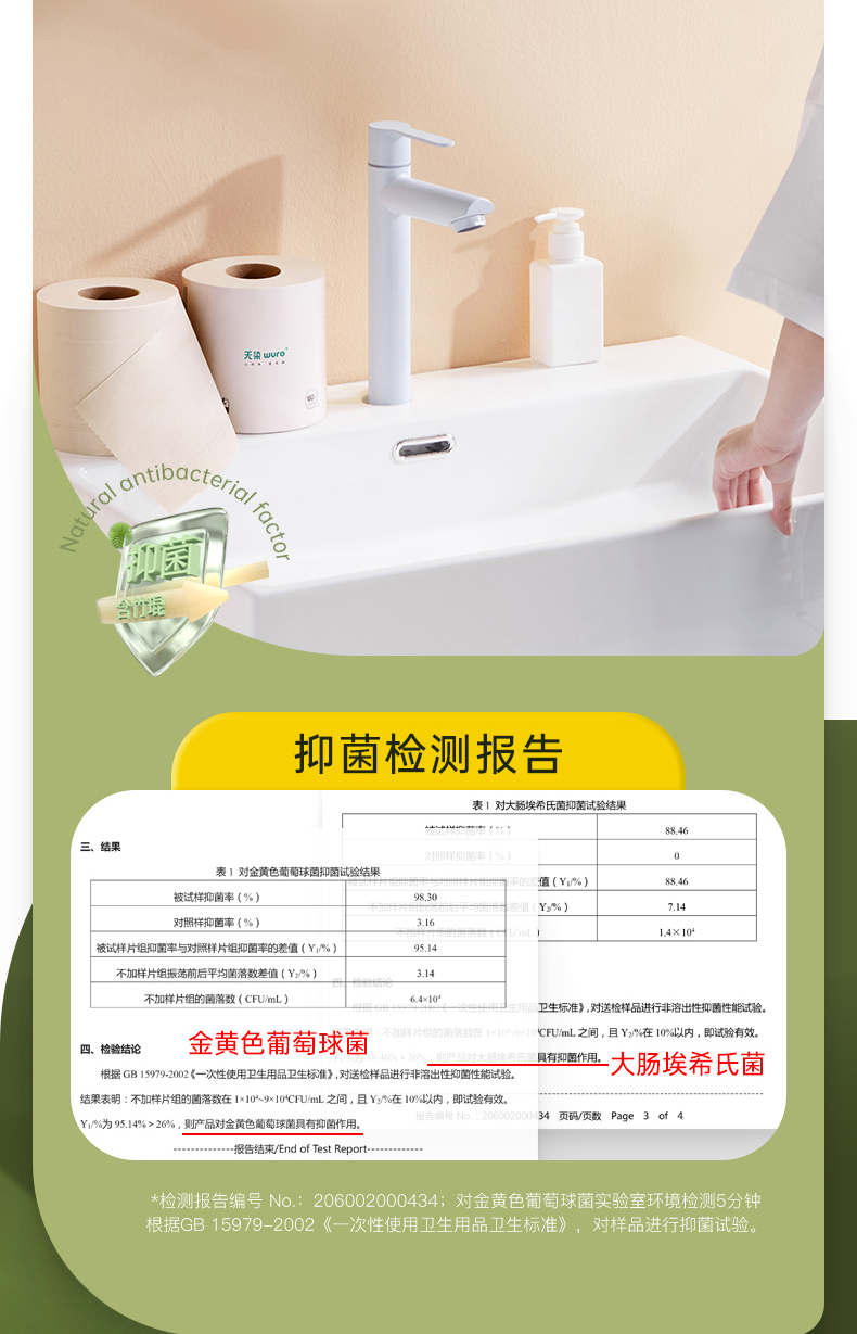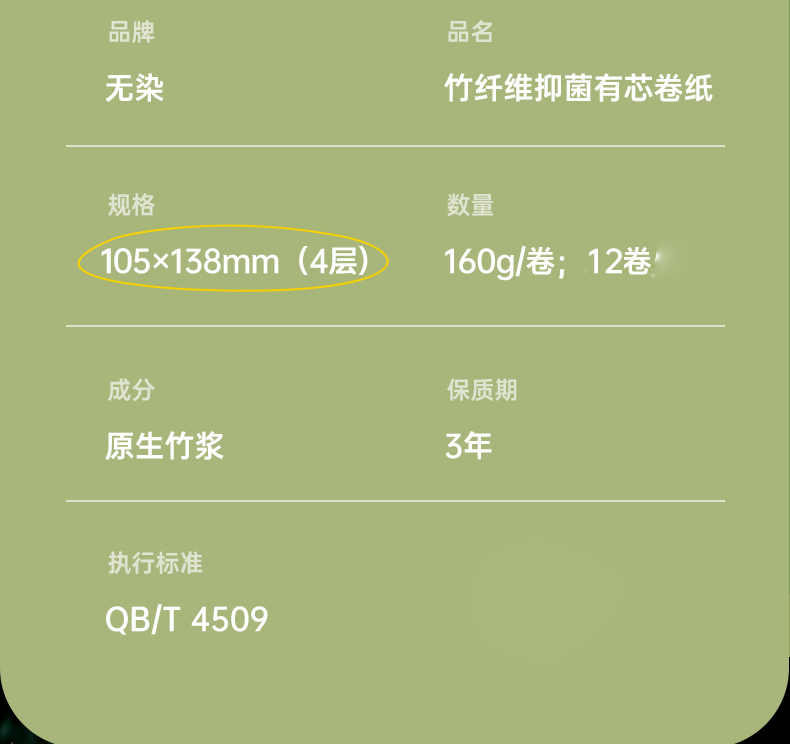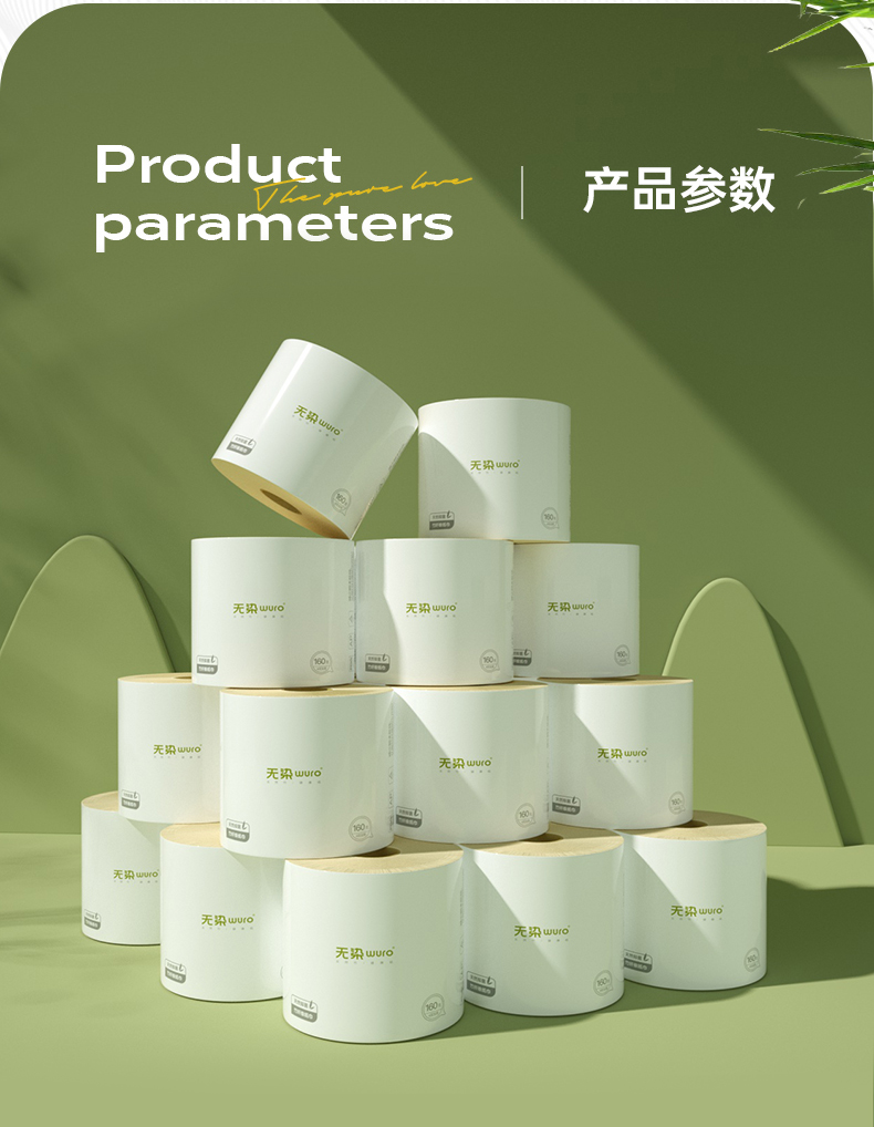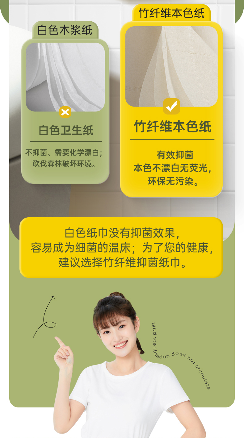 无染WURO竹纤维本色抑菌4层160克有芯卷纸12卷