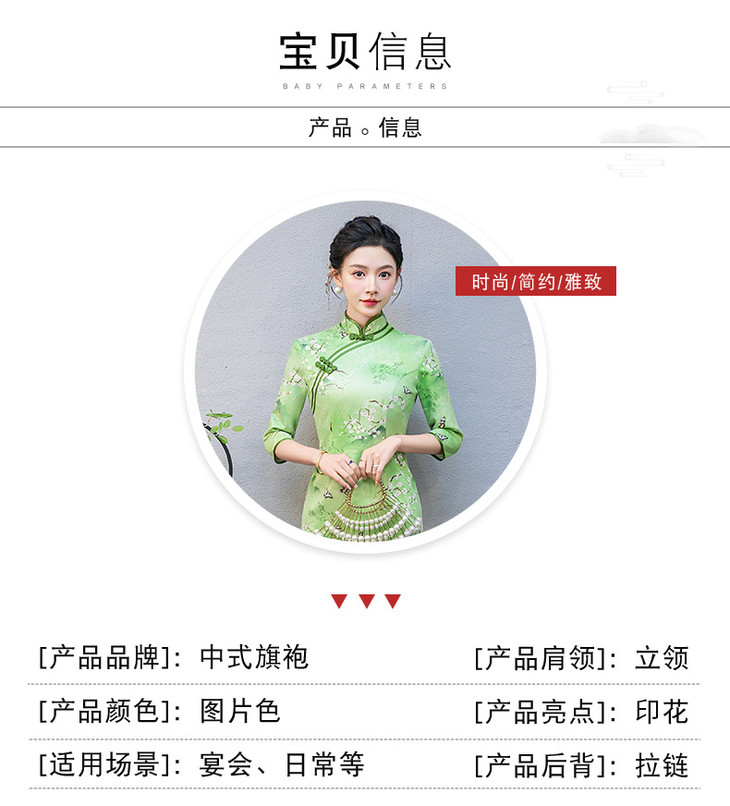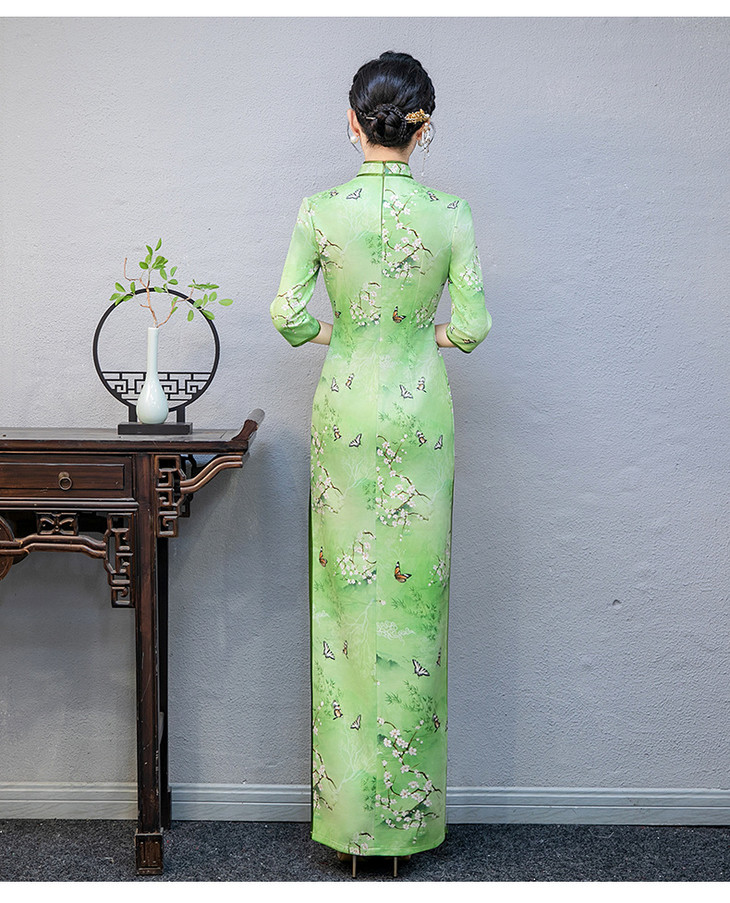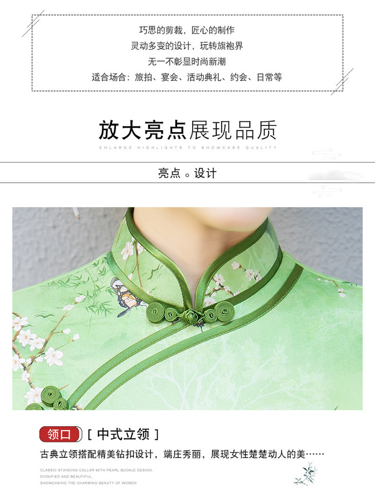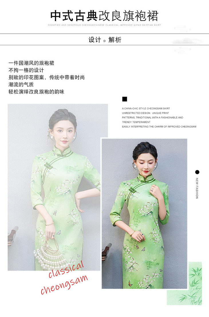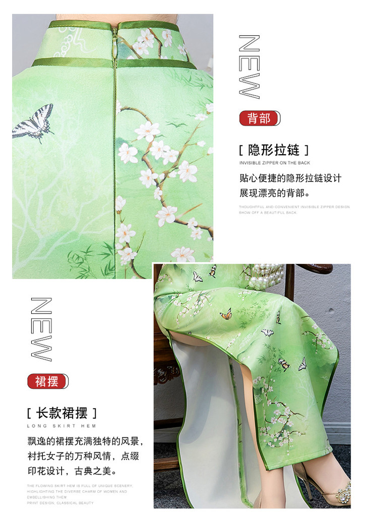 优雅走秀汉服七分袖修身演出服中式长款改良旗袍QC179