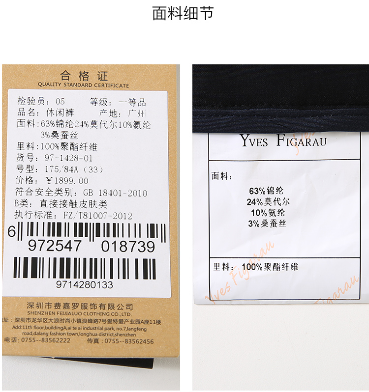 YvesFigarau伊夫·费嘉罗新款休闲裤971428