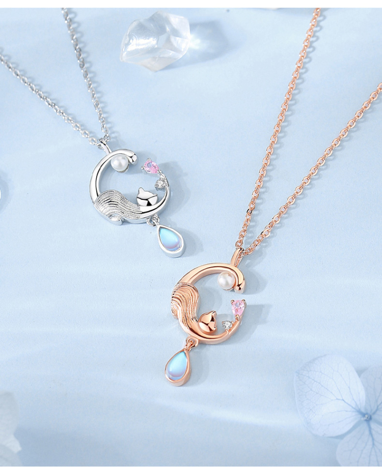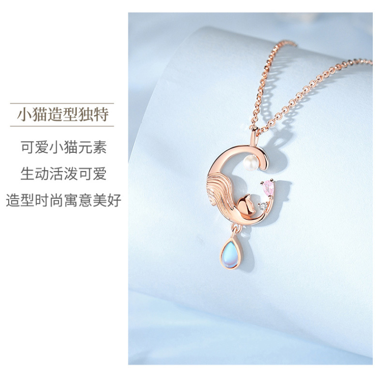 Winy925纯银慵懒小猫项链送女友闺蜜节日生日礼物