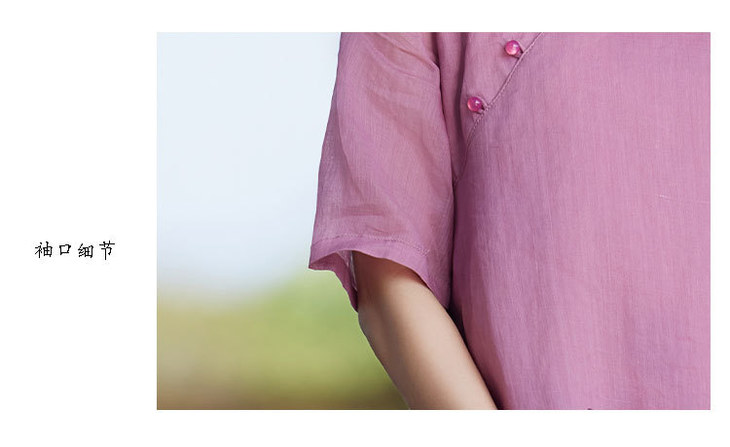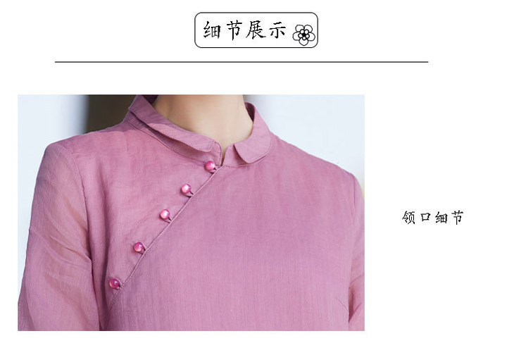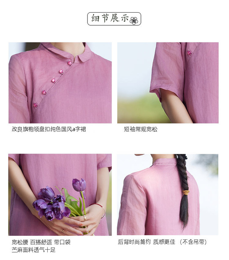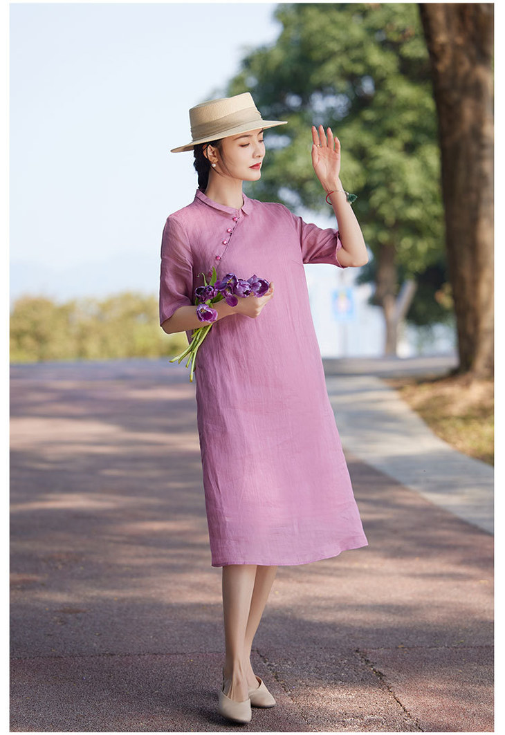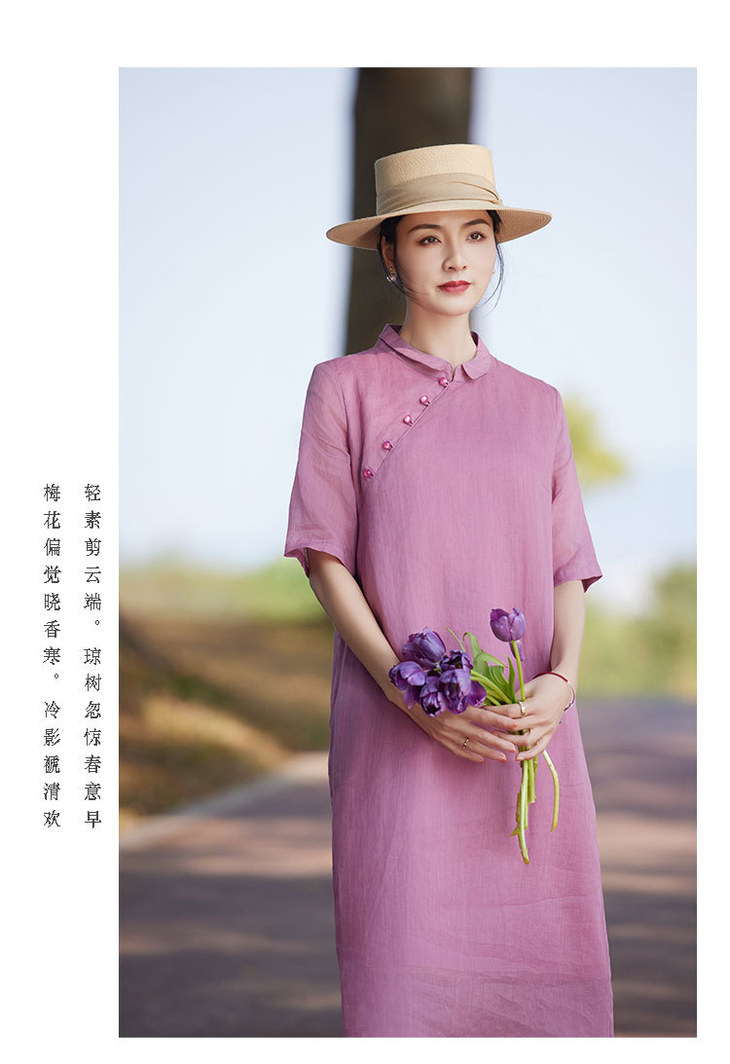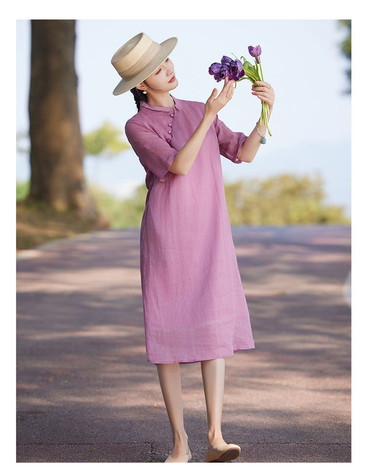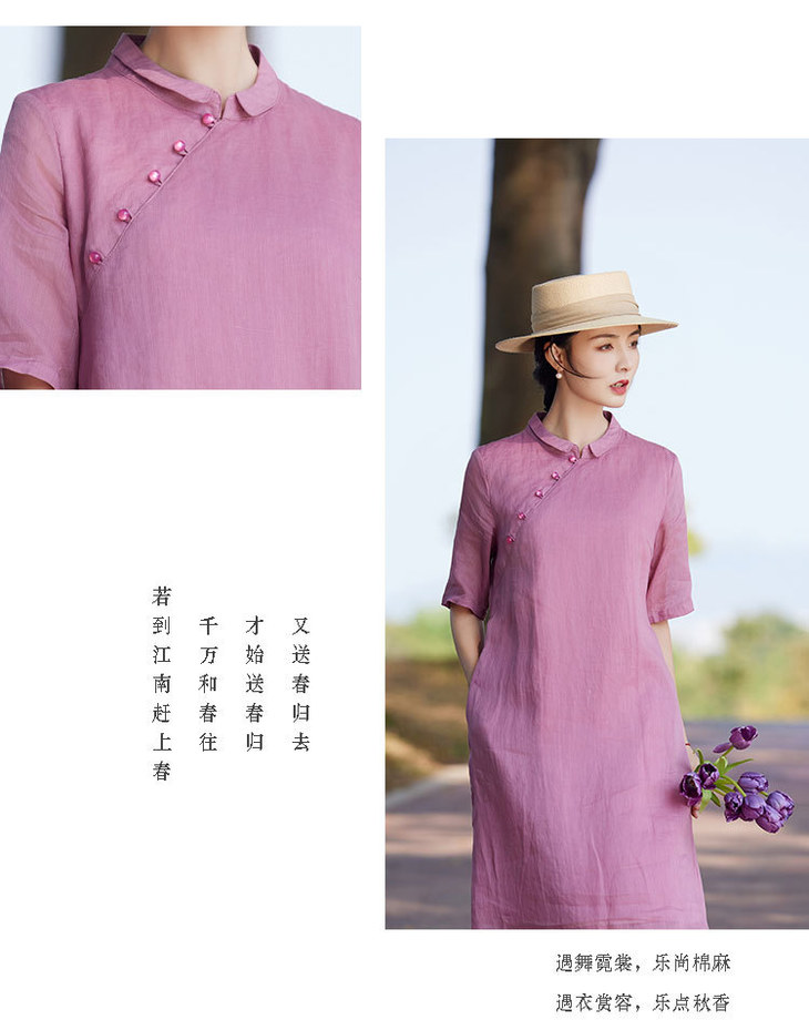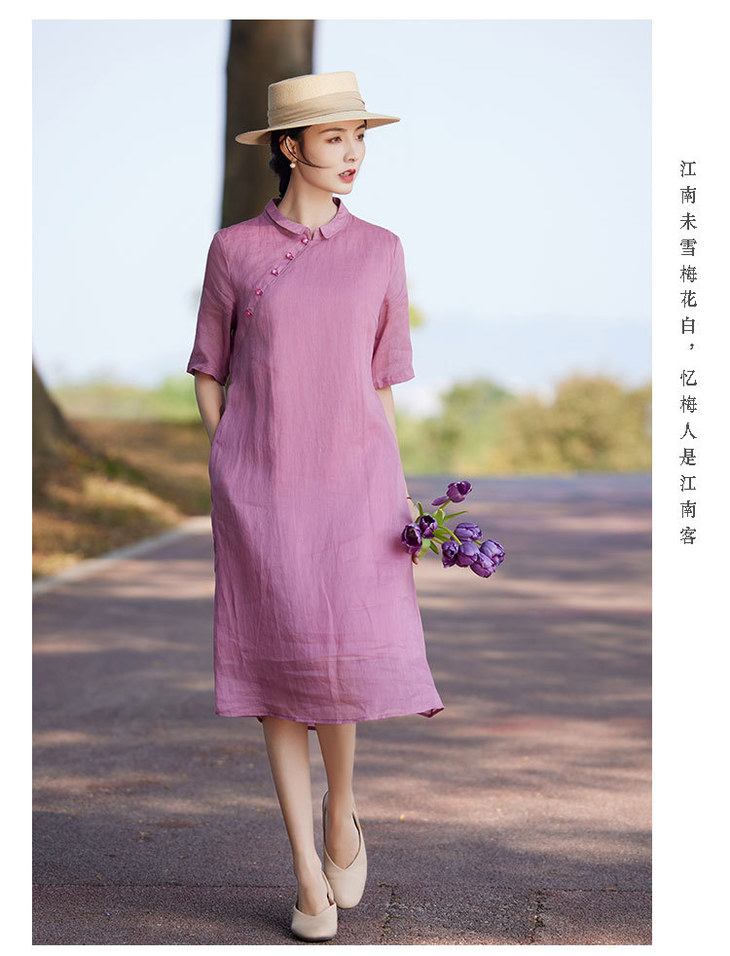 苎麻连衣裙洋气减龄五分袖,立领盘扣改良旗袍裙中长裙TT-96262