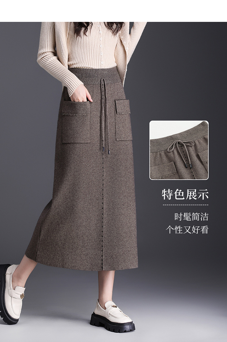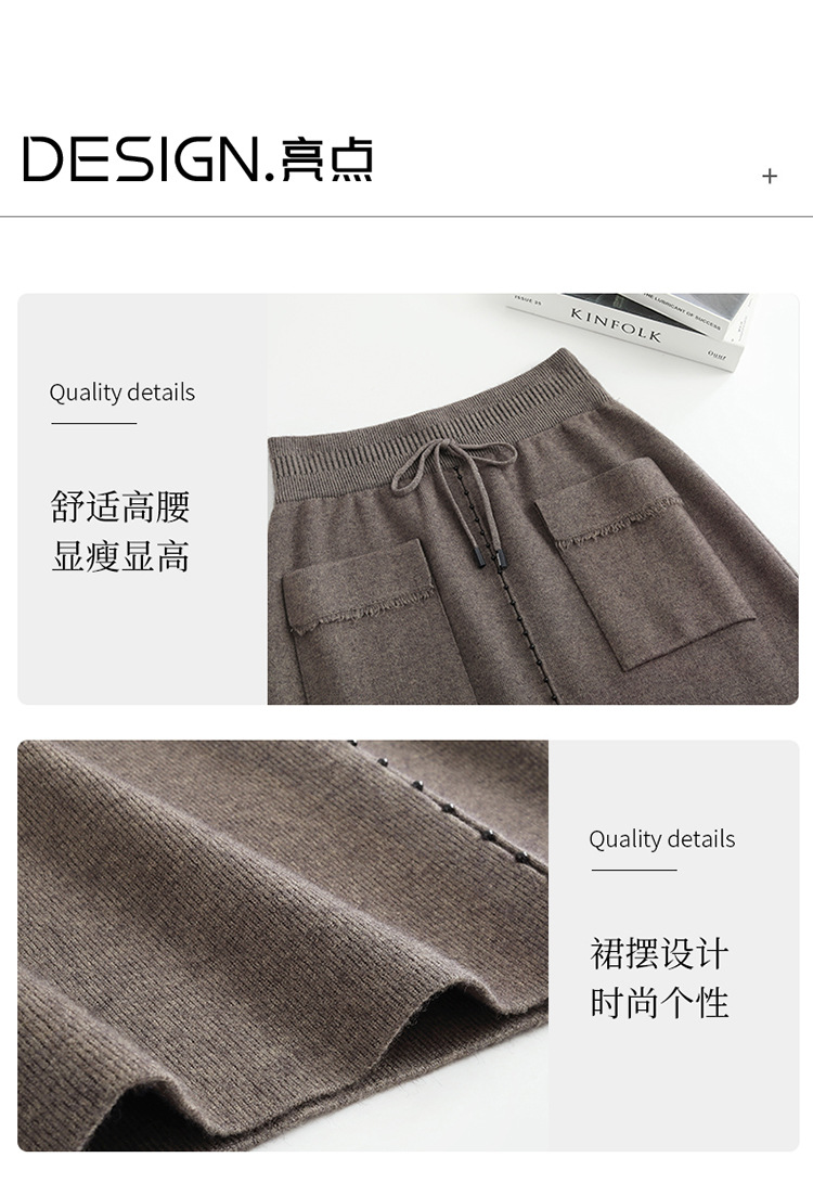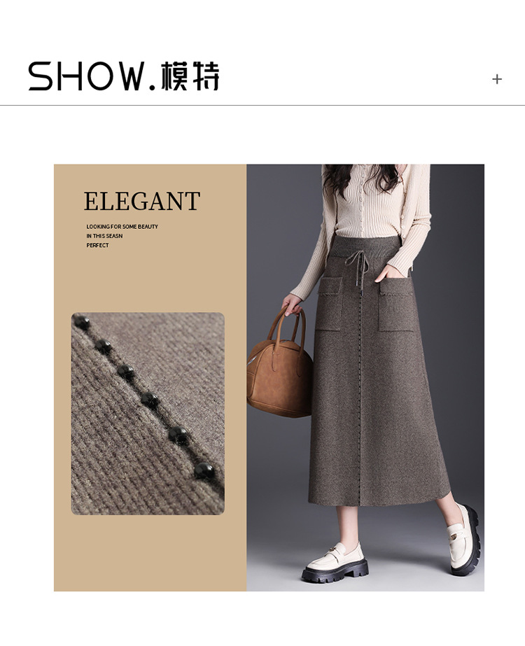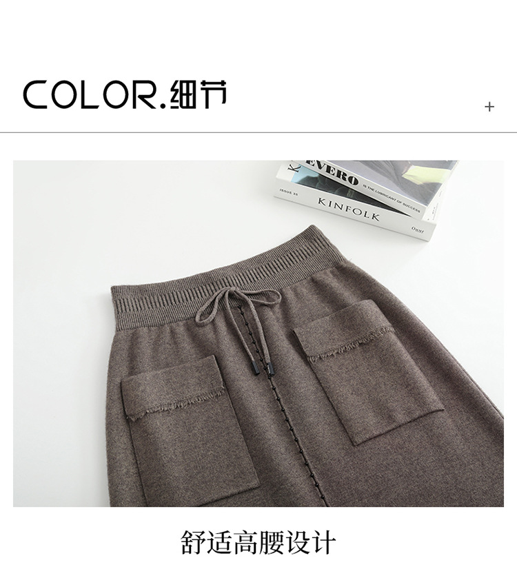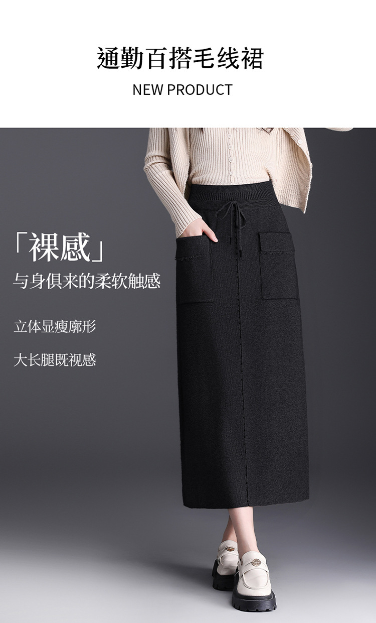 QYM 1201-Y弹力高腰半身裙针织直筒口袋裙时尚一步裙