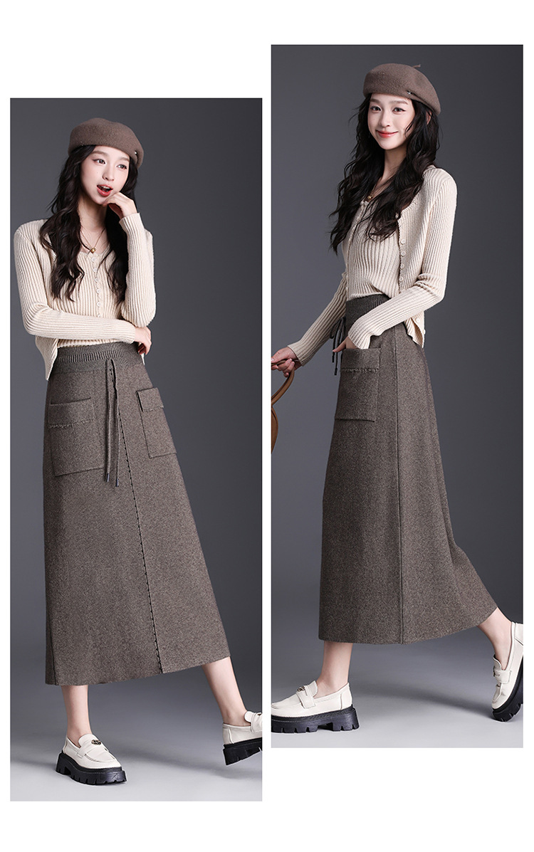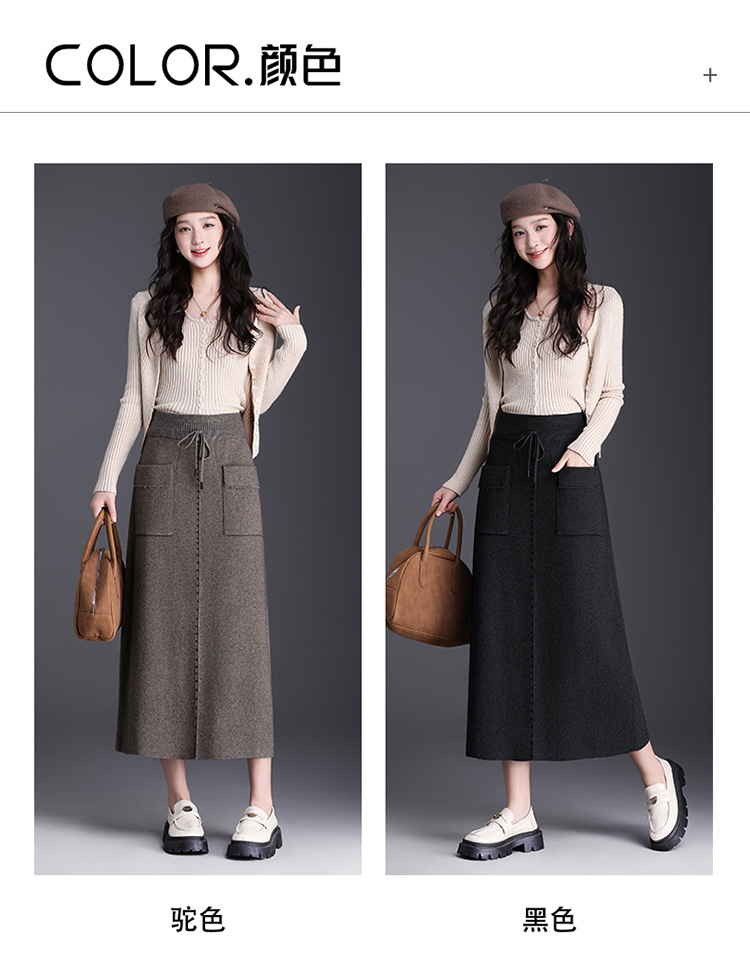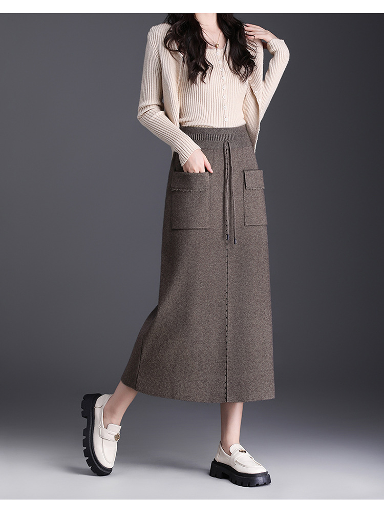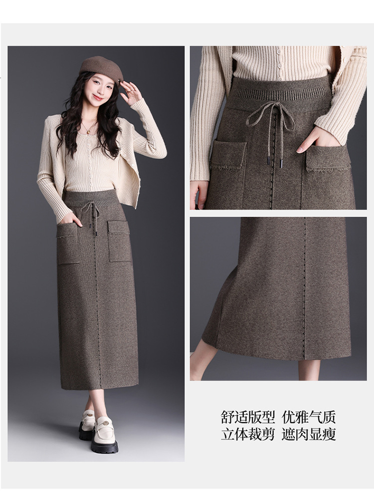 QYM 1201-Y弹力高腰半身裙针织直筒口袋裙时尚一步裙