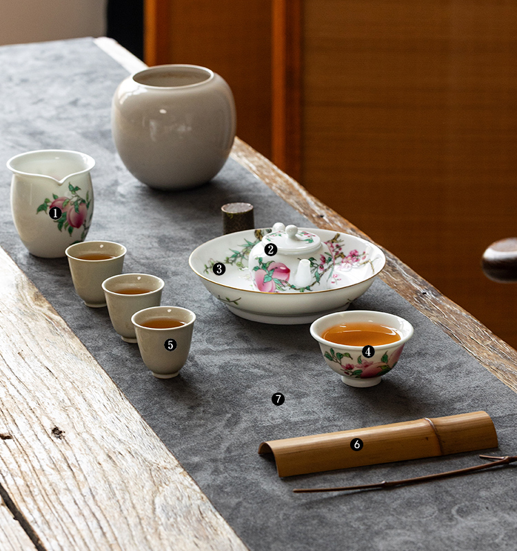 茶香记徐窑五桃圆融公道杯景德镇陶瓷手绘分茶器250ml功夫茶具