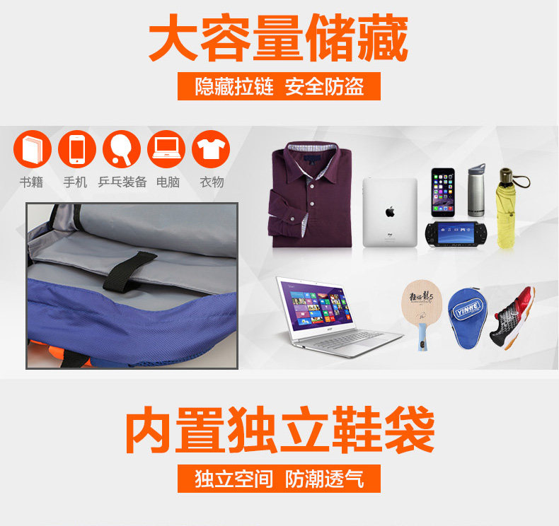 德国阳光TH800乒乓球双肩运动背包加厚透气独立空间