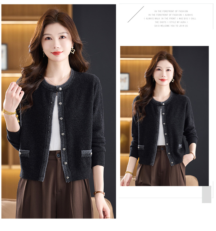 fgtt1822100%纯羊毛开衫女小香风毛衣外套春秋高级感气质名媛短款针织上衣 商品图4