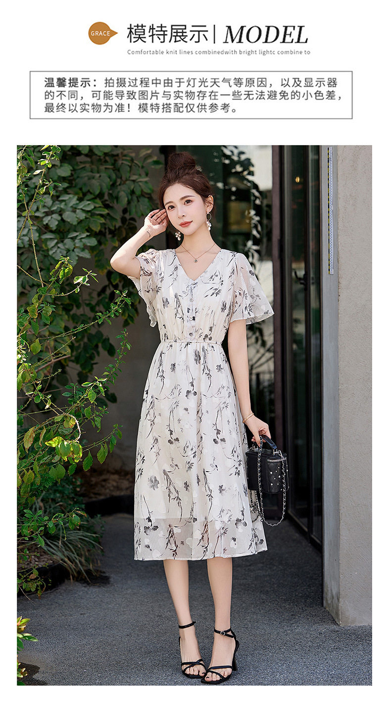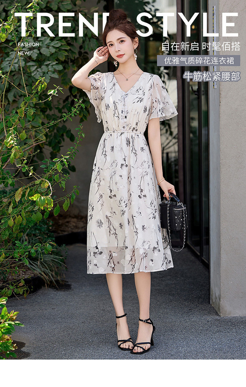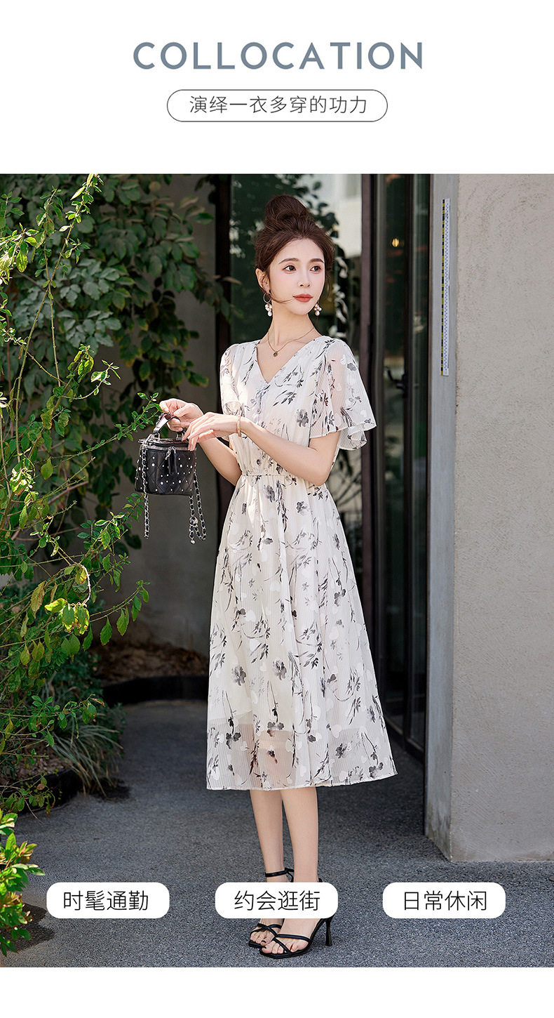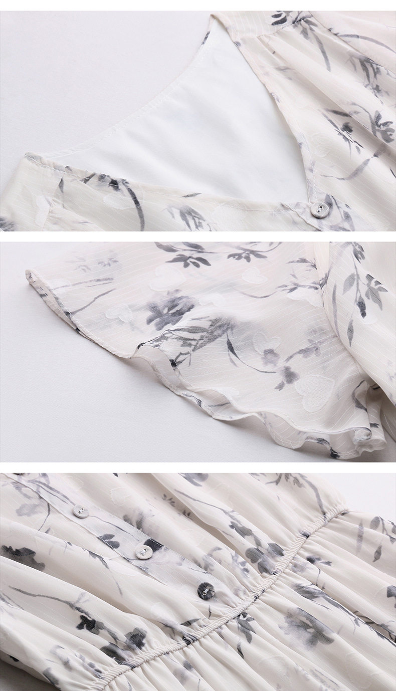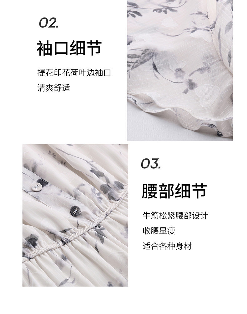 「自」全新升级【铂金会员247/天猫329/差价82】(10719)洛诗琳气质水墨印花连衣裙女2026夏季新款收腰荷叶袖中长裙