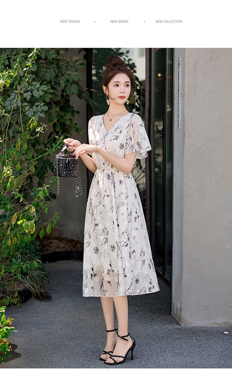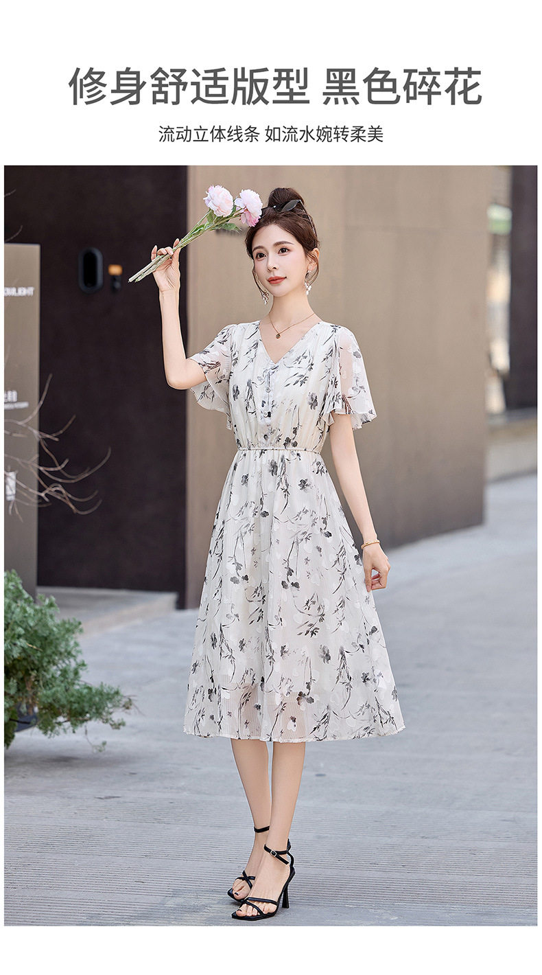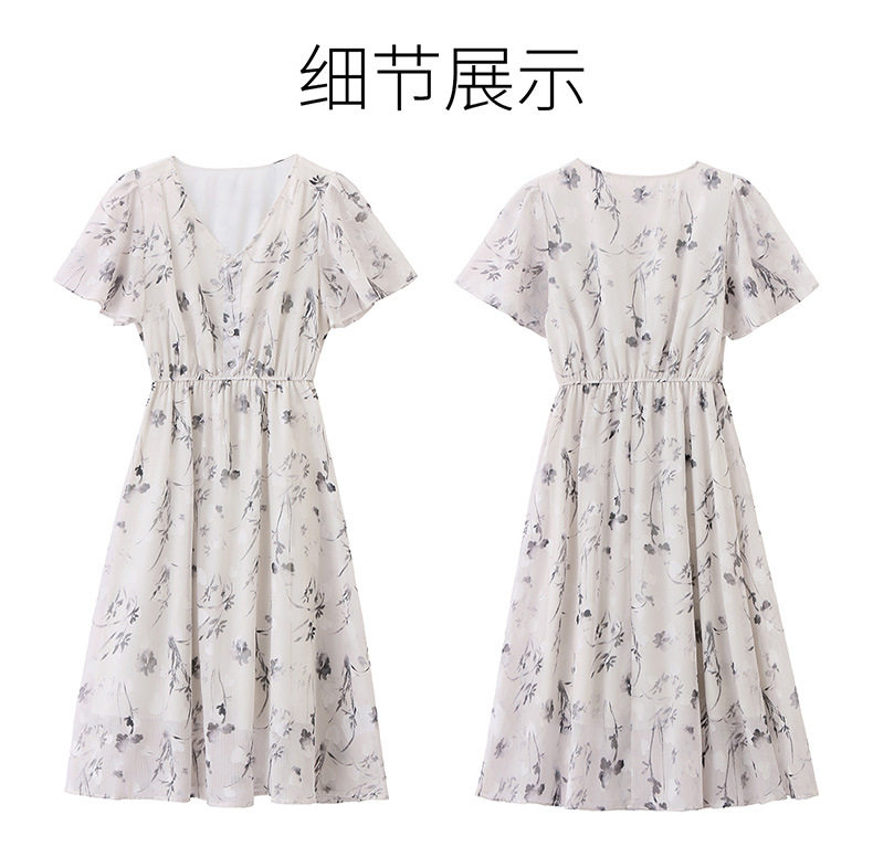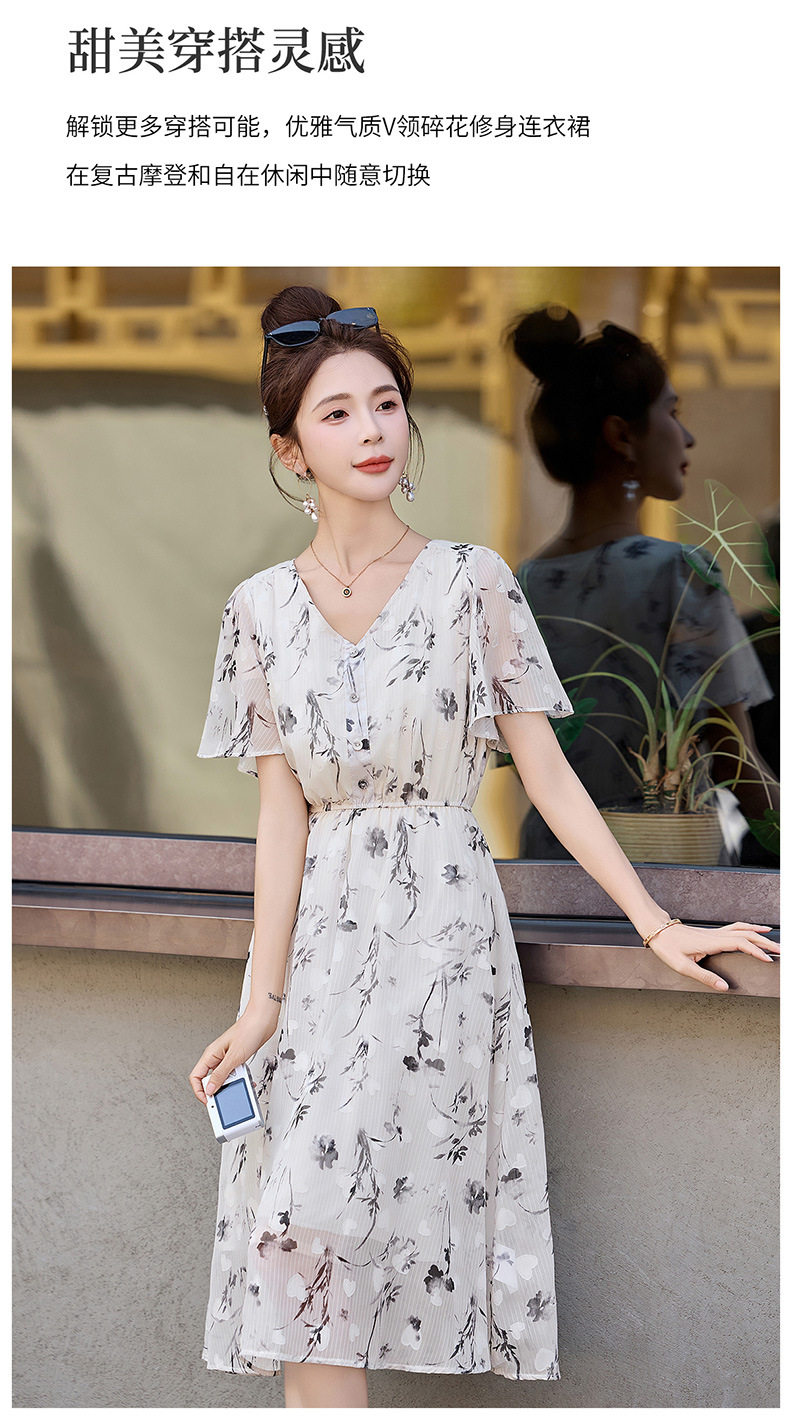 「自」全新升级【铂金会员247/天猫329/差价82】(10719)洛诗琳气质水墨印花连衣裙女2026夏季新款收腰荷叶袖中长裙