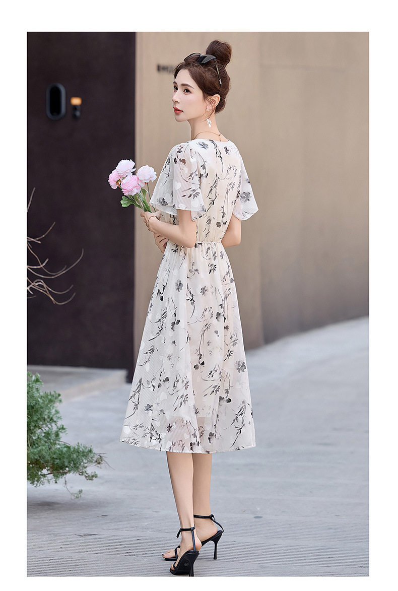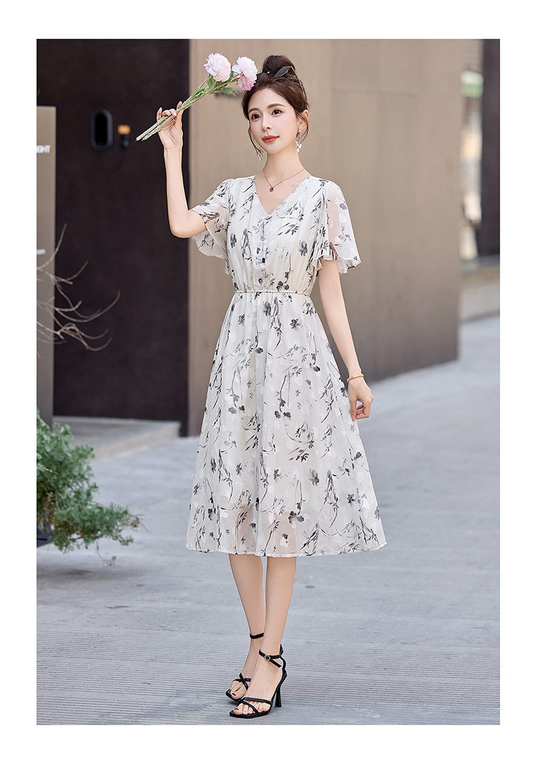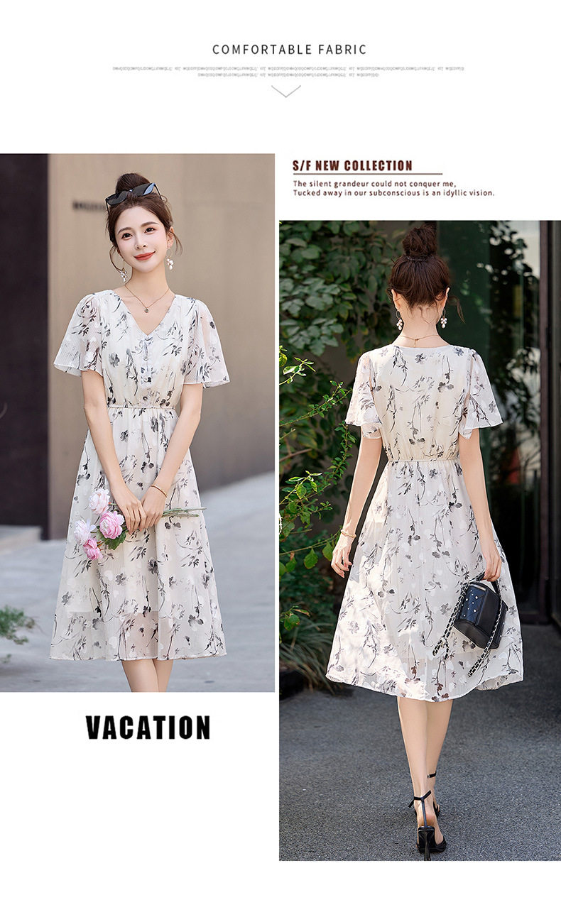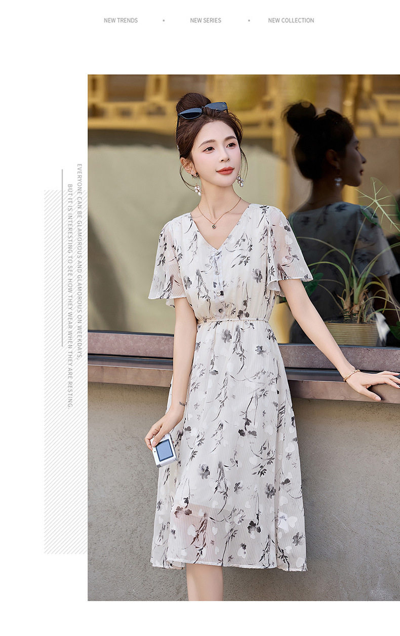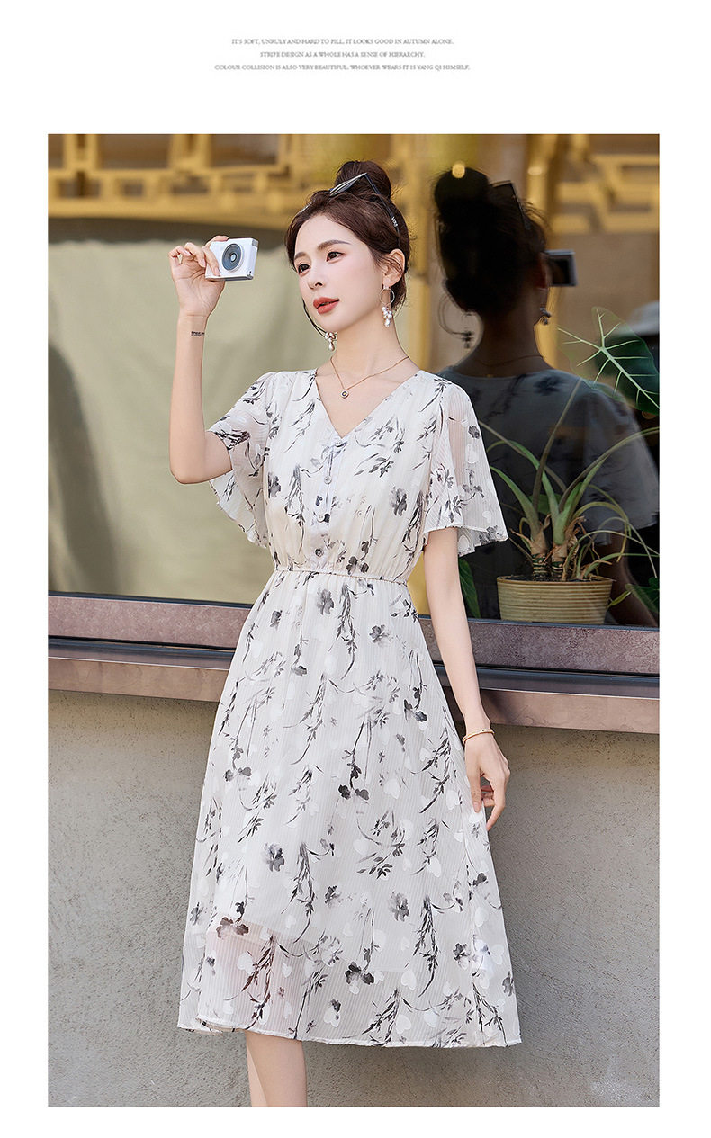 「自」全新升级【铂金会员247/天猫329/差价82】(10719)洛诗琳气质水墨印花连衣裙女2026夏季新款收腰荷叶袖中长裙