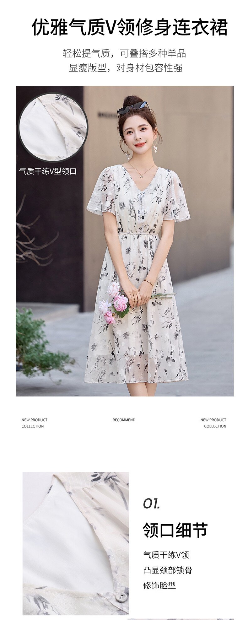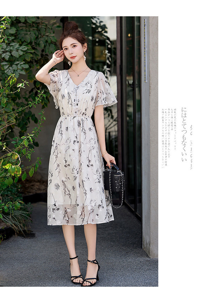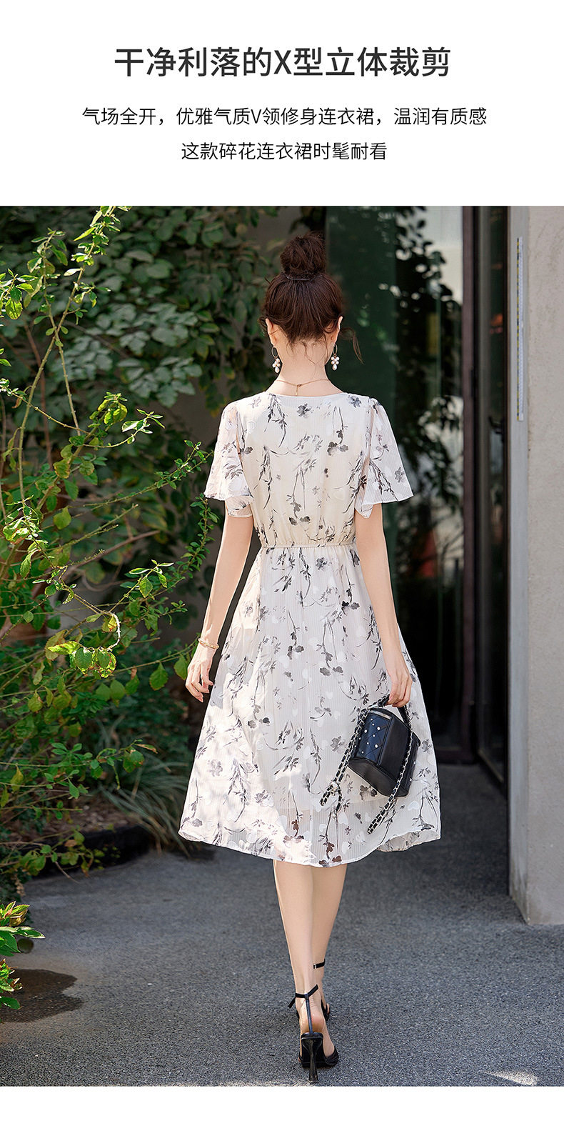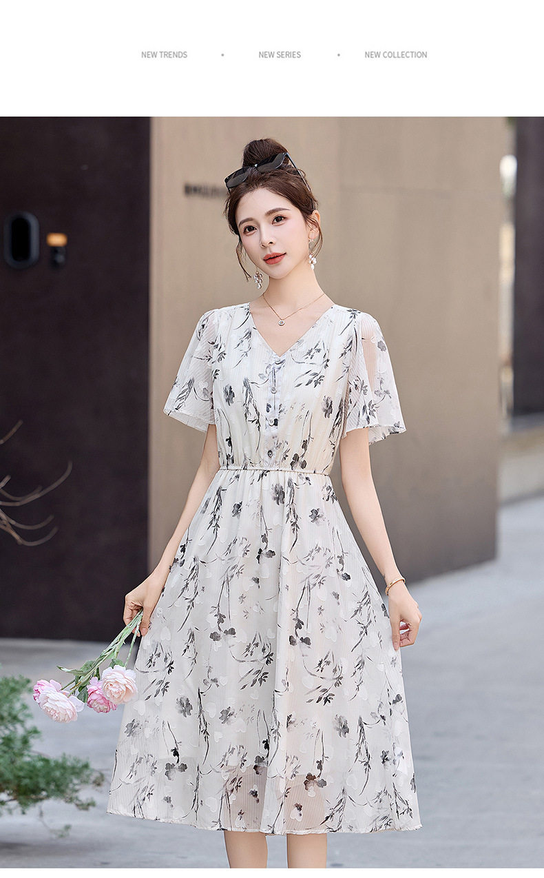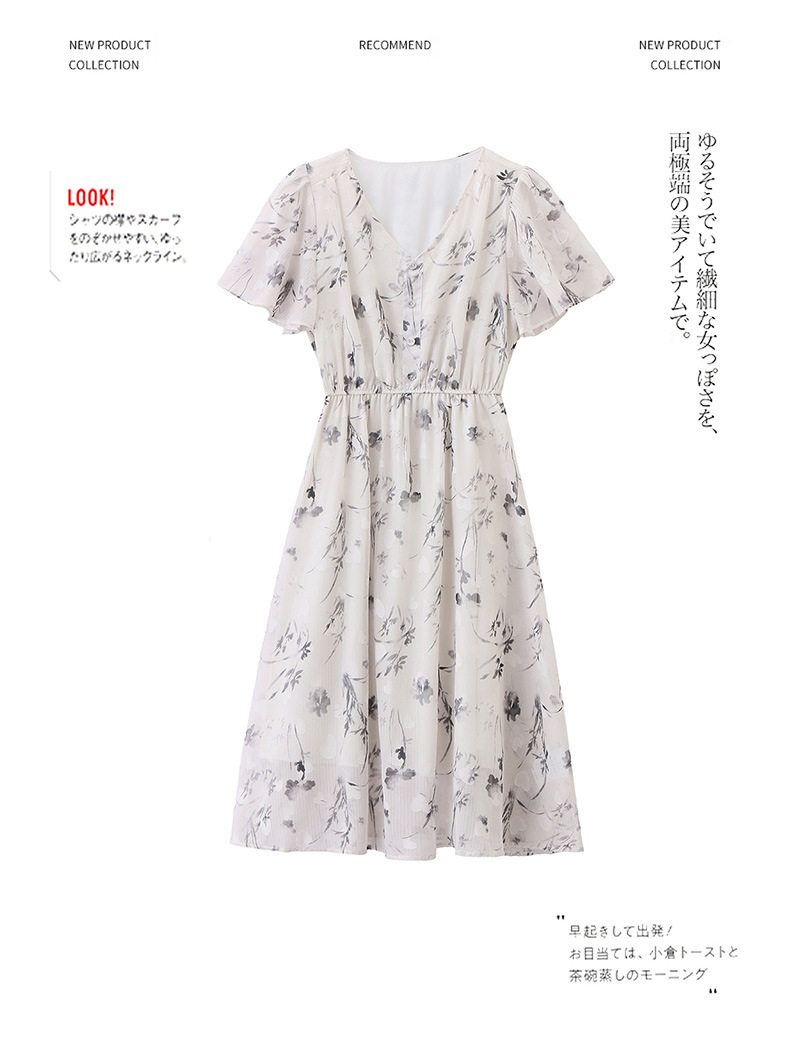 「自」全新升级【铂金会员247/天猫329/差价82】(10719)洛诗琳气质水墨印花连衣裙女2026夏季新款收腰荷叶袖中长裙