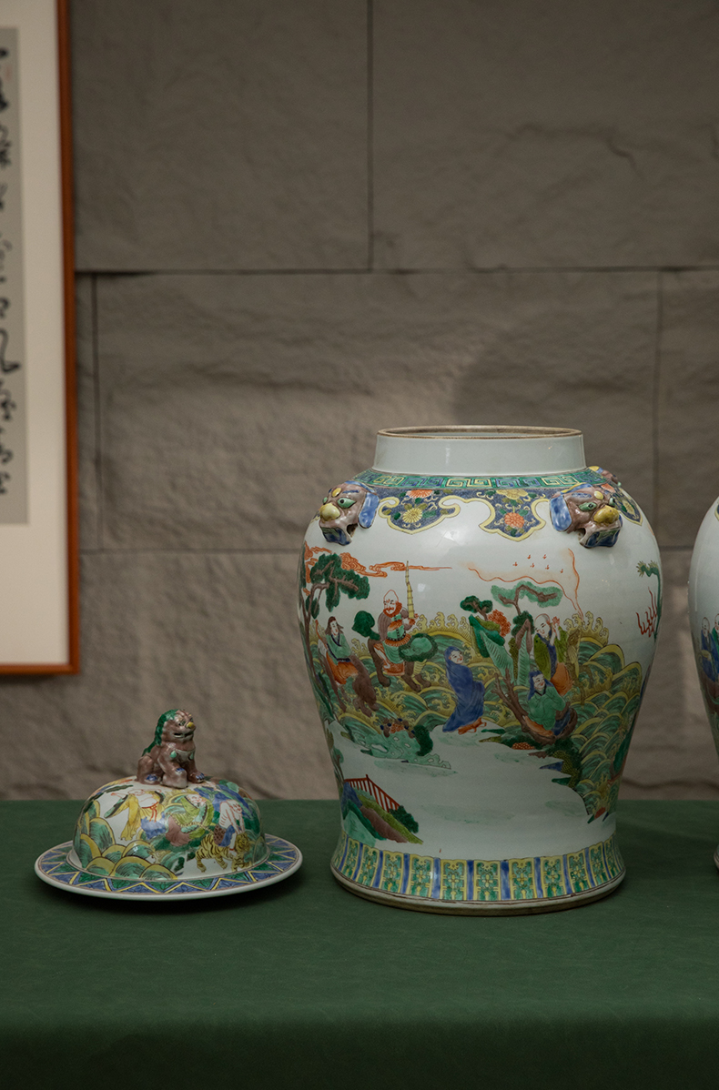 清 青金石嵌绿松石莲花盖盒(红木座)