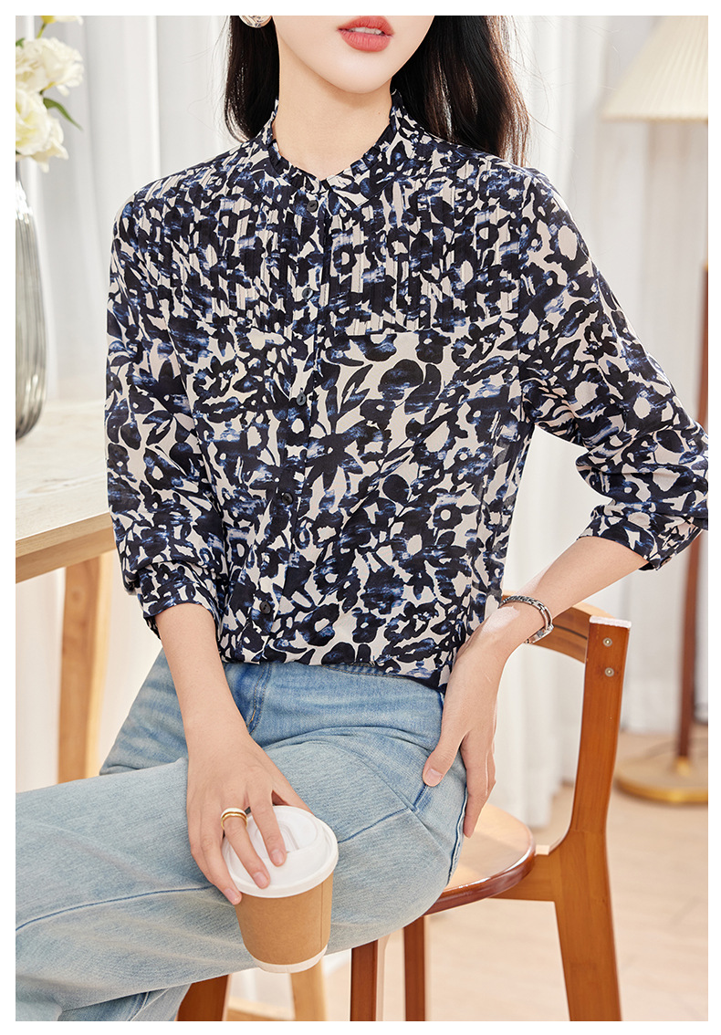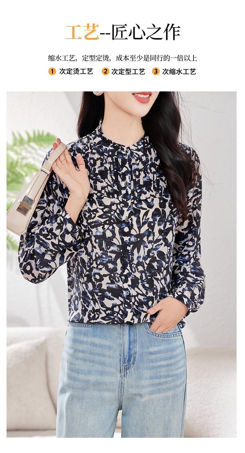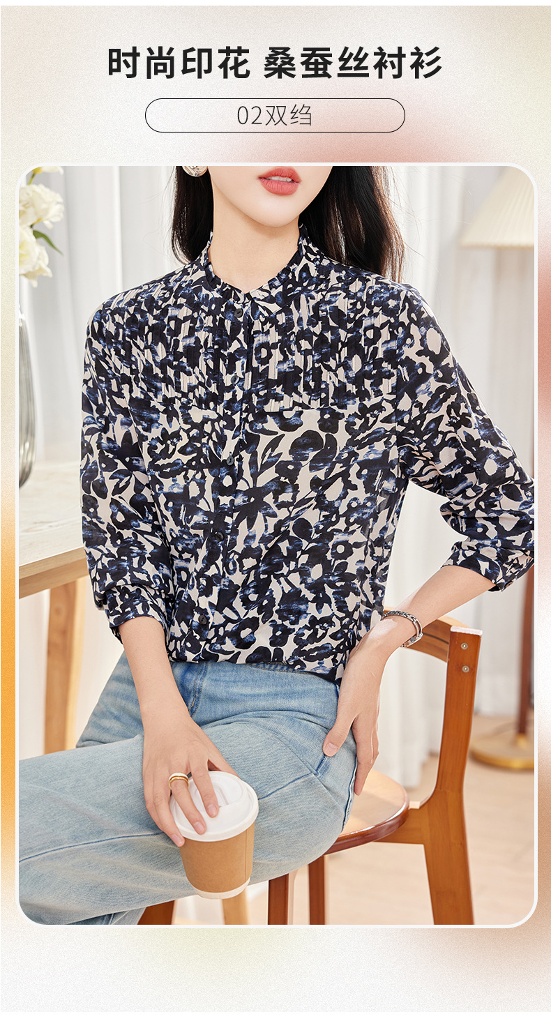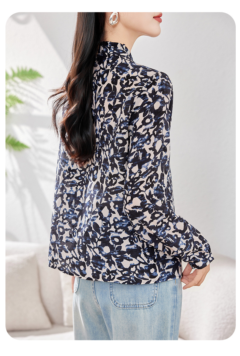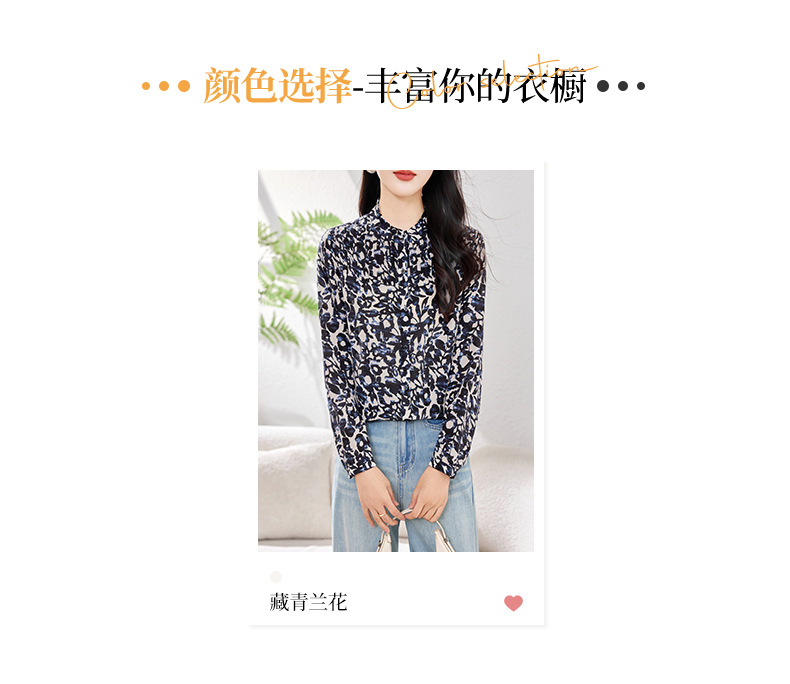 KQ-新碎花长袖衬衫女真丝显瘦气质时尚春季衬衣复古轻奢优雅上衣