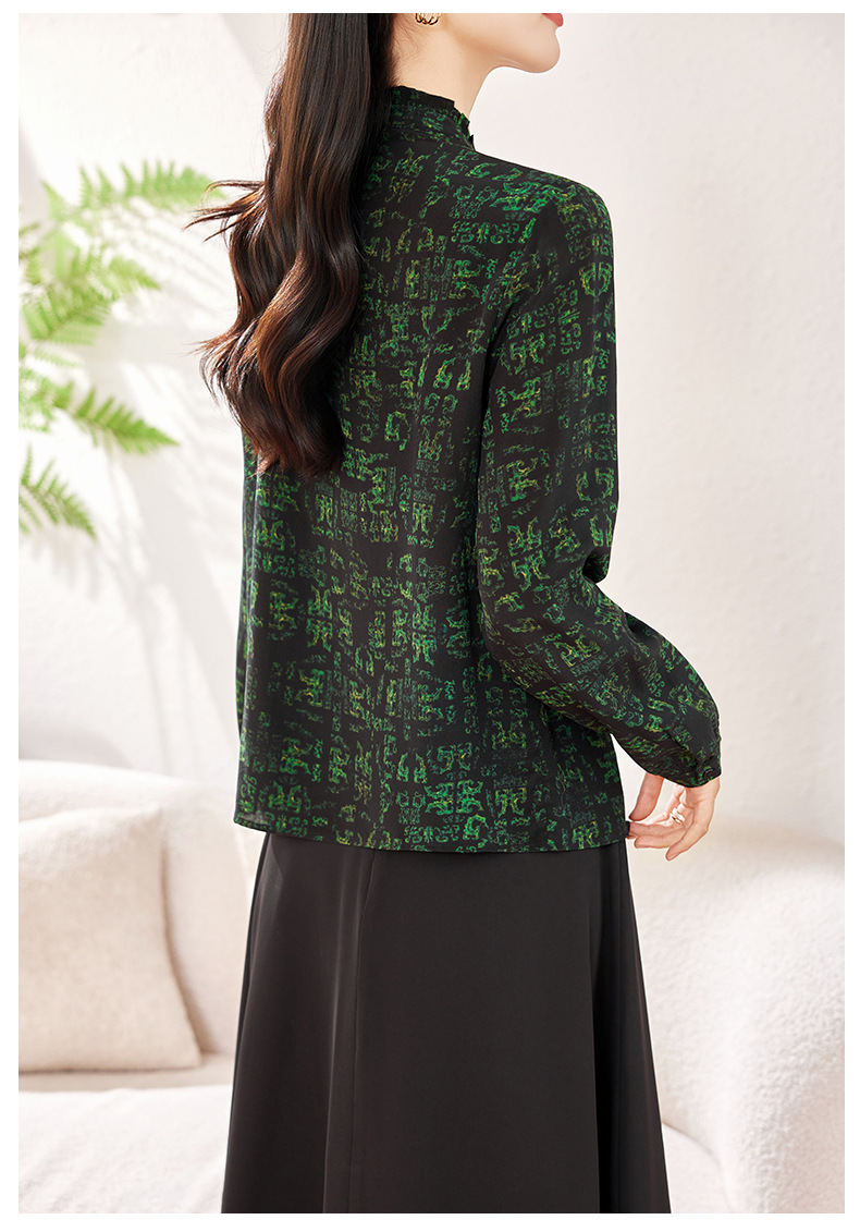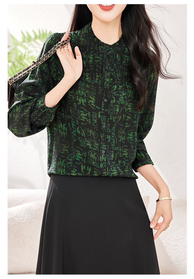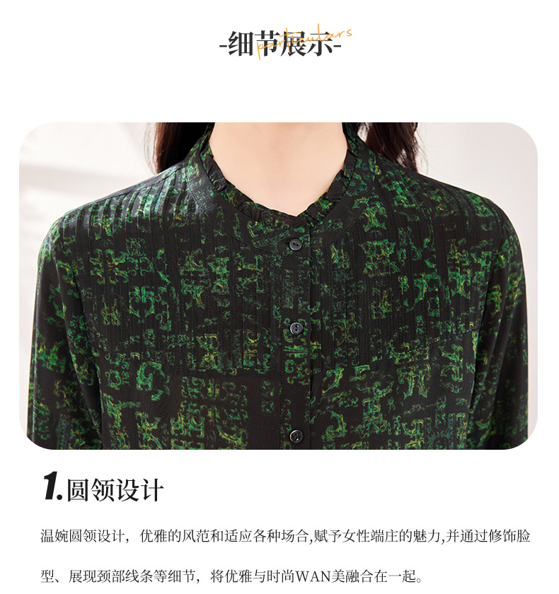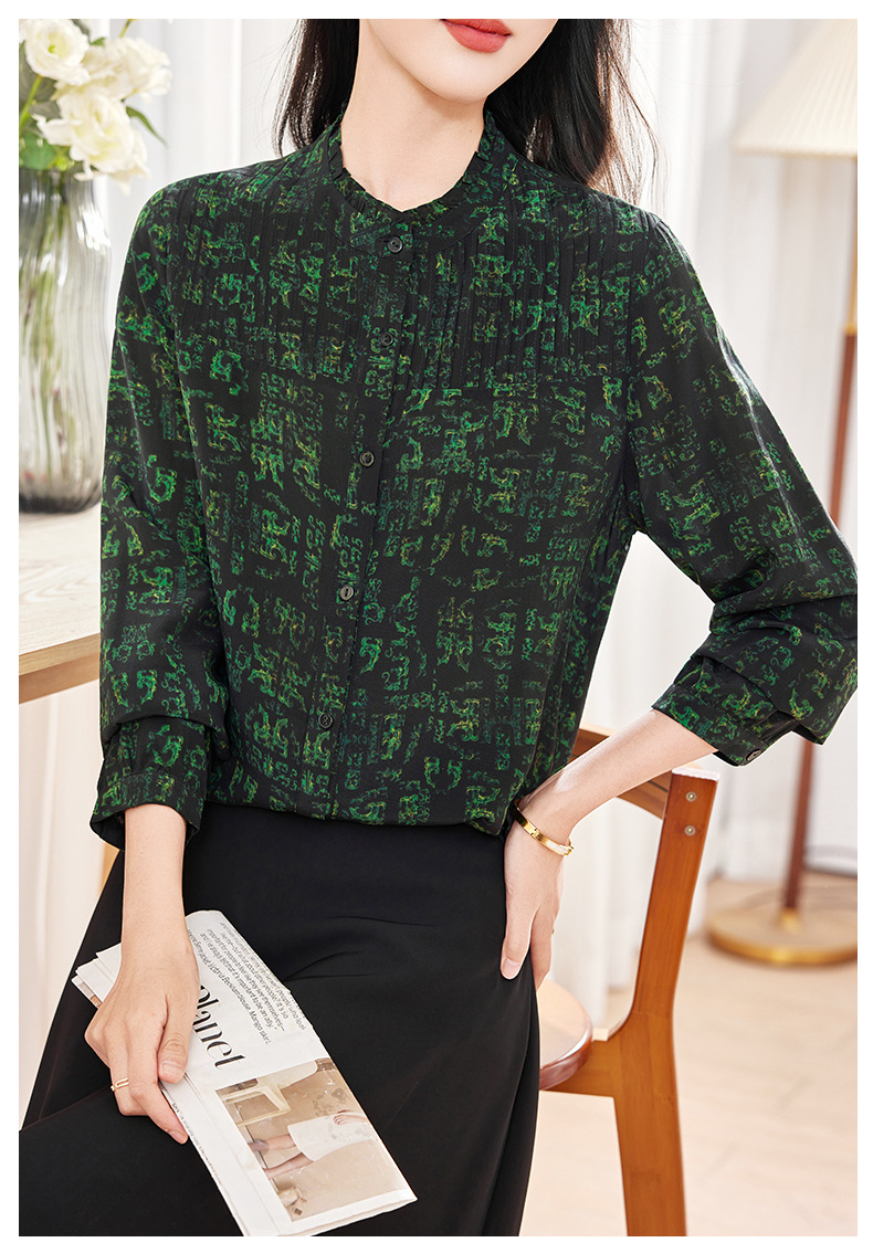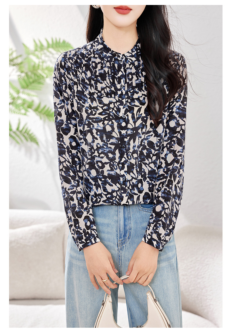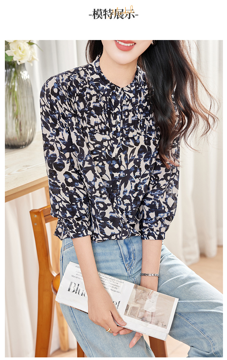 KQ-新碎花长袖衬衫女真丝显瘦气质时尚春季衬衣复古轻奢优雅上衣