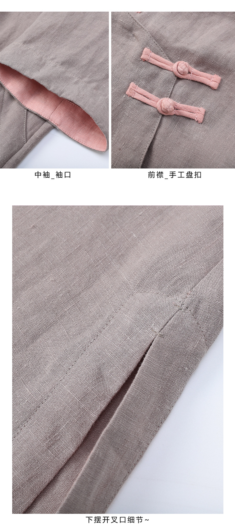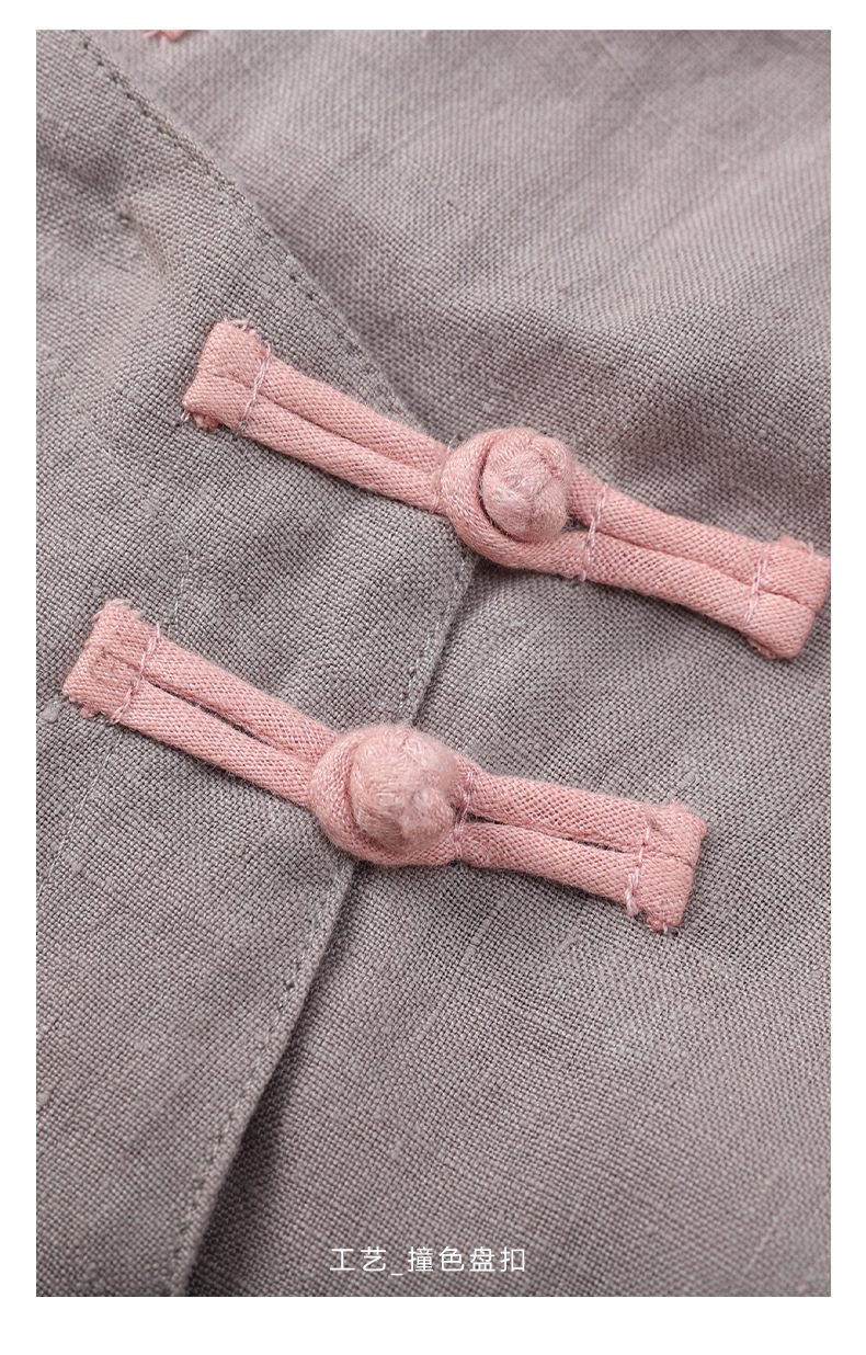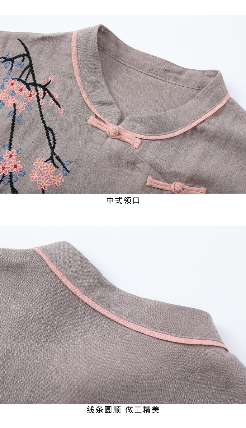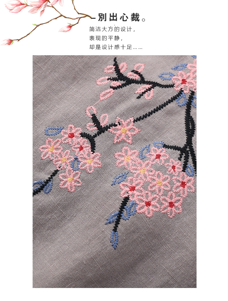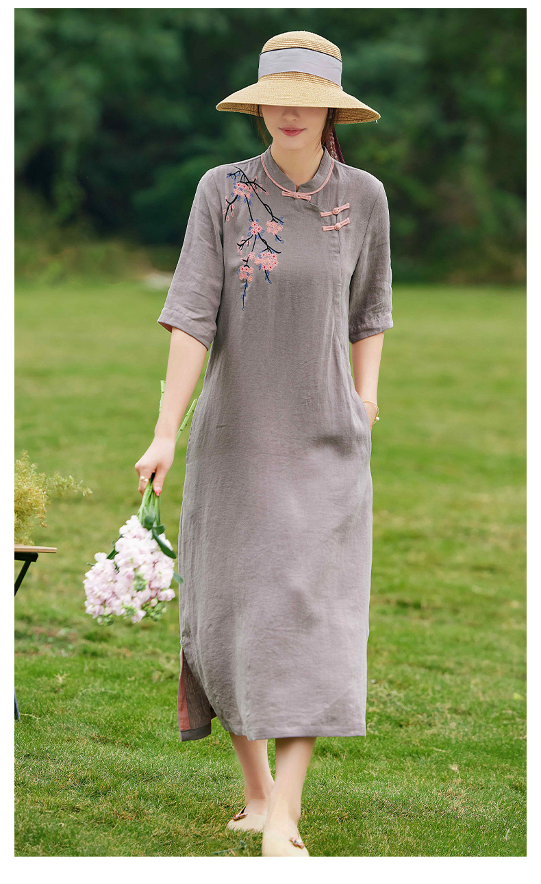 HM-C006春夏原创新款国风刺绣古典改良旗袍立领亚麻连衣裙一步裙