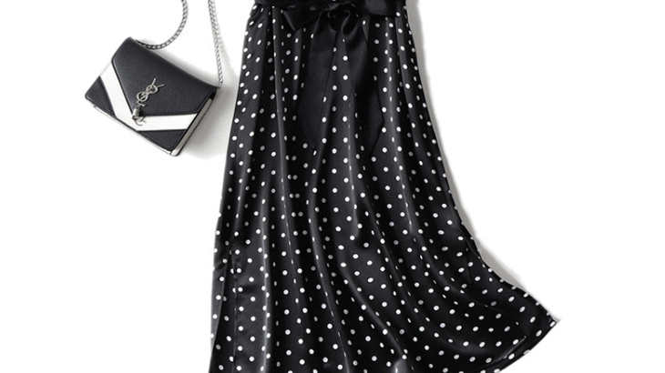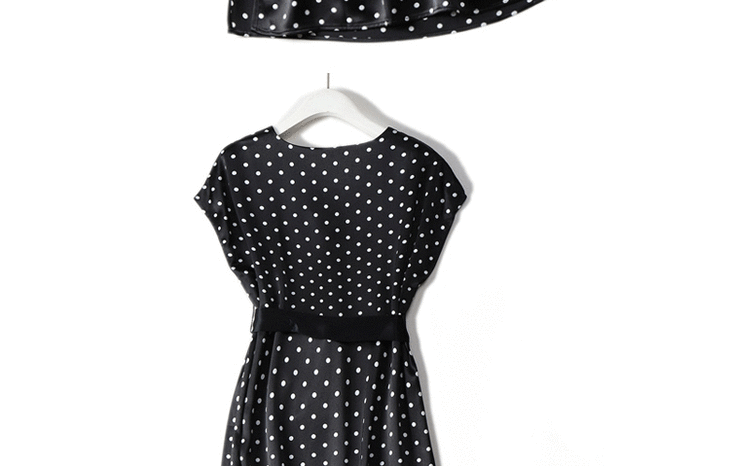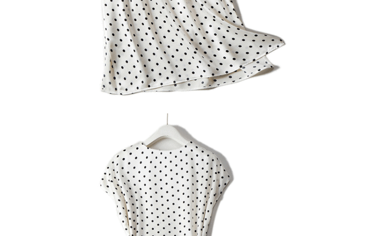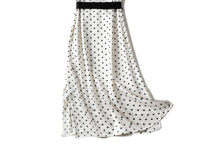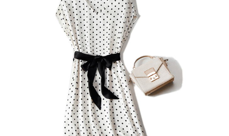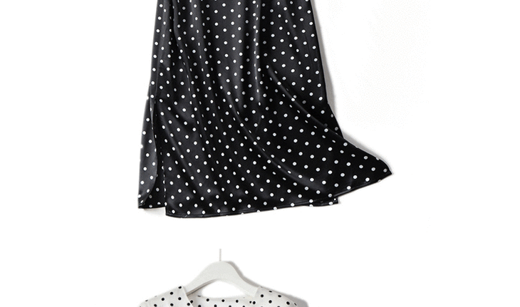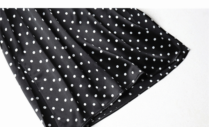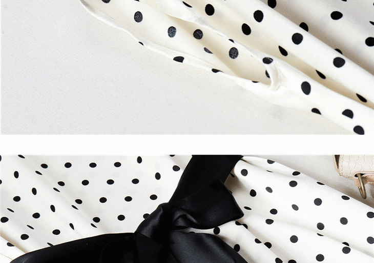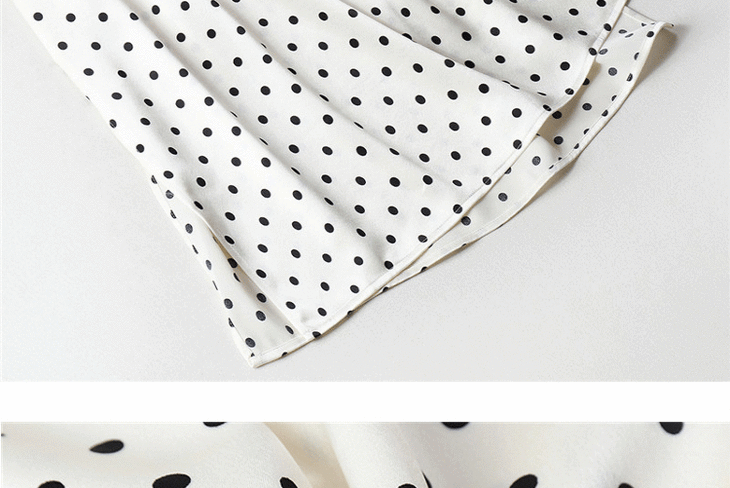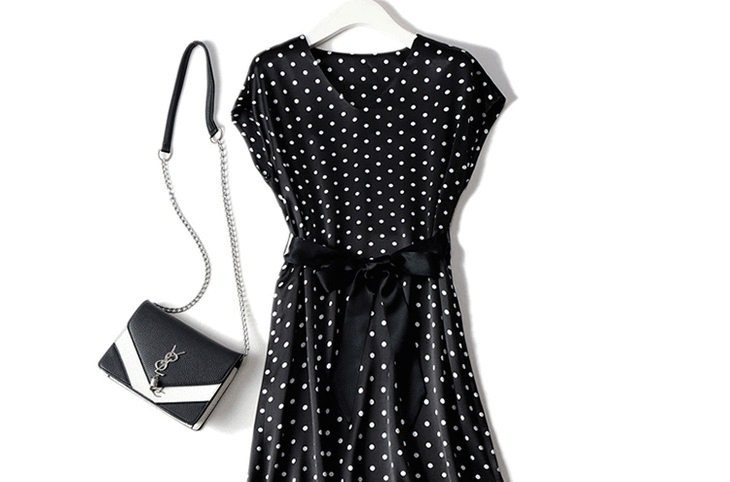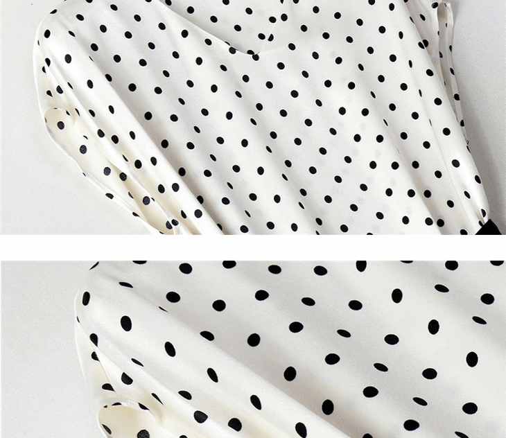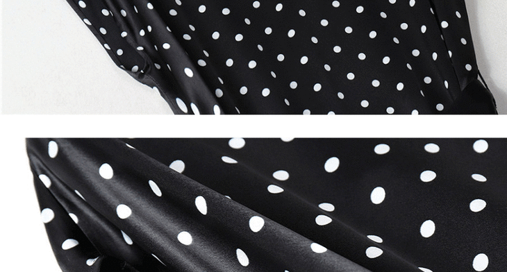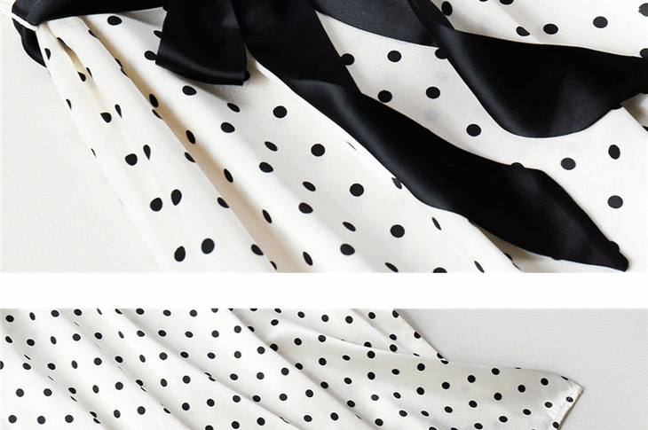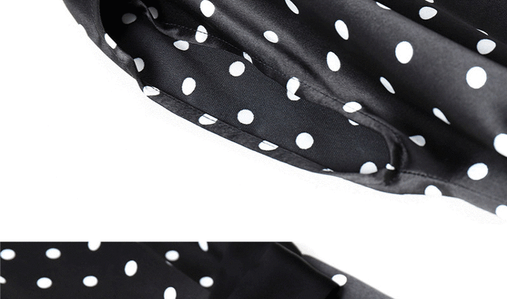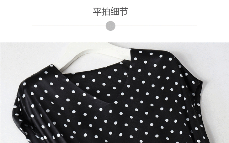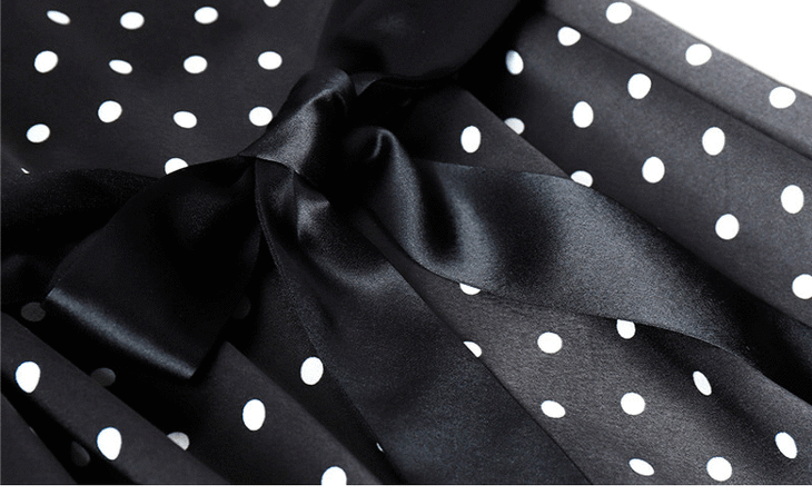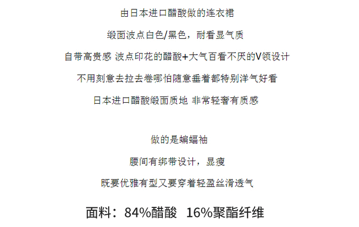丁摩 减龄又显瘦~进口三醋酸缎面波点V领系带连衣裙20-205DS399