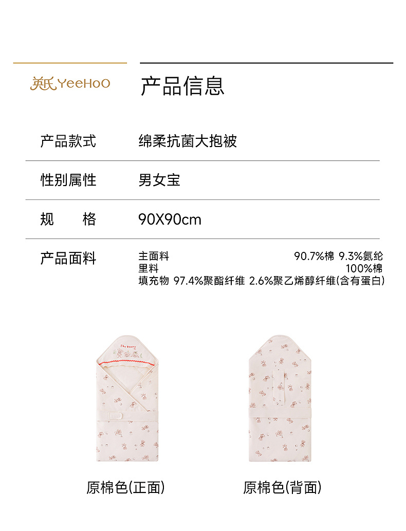 【商场同款】英氏婴儿抱被新生儿包单宝宝四季通用10A抗菌抱毯