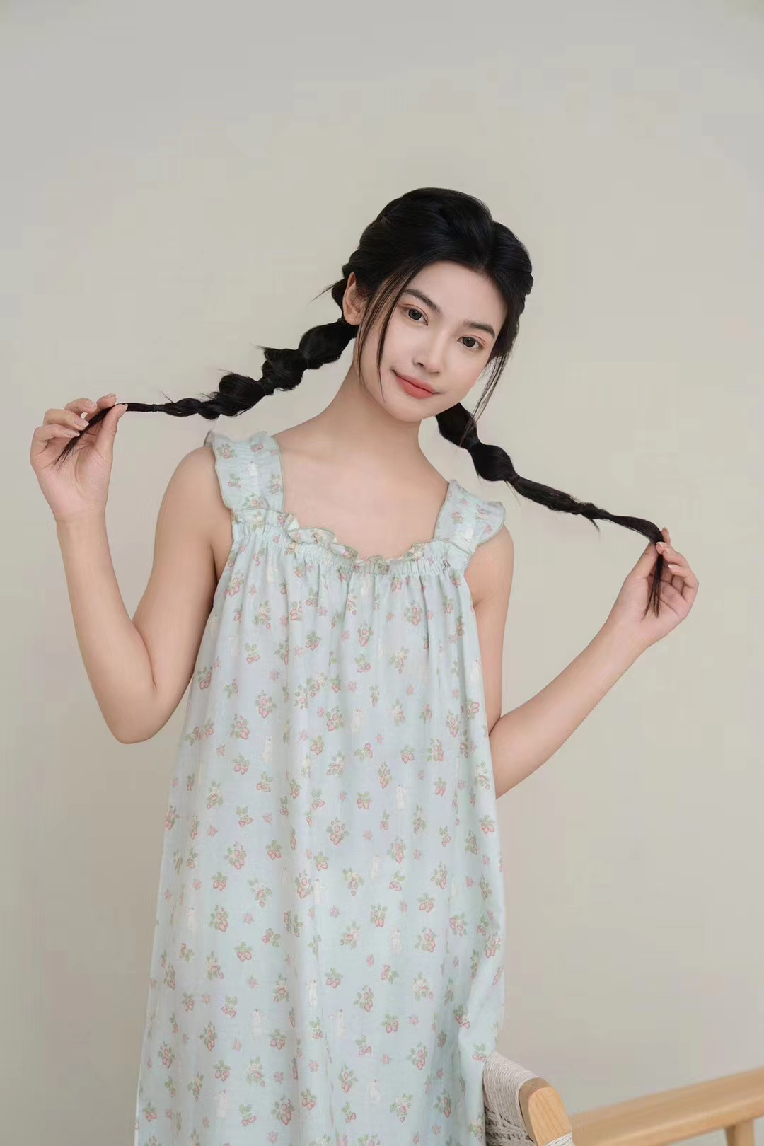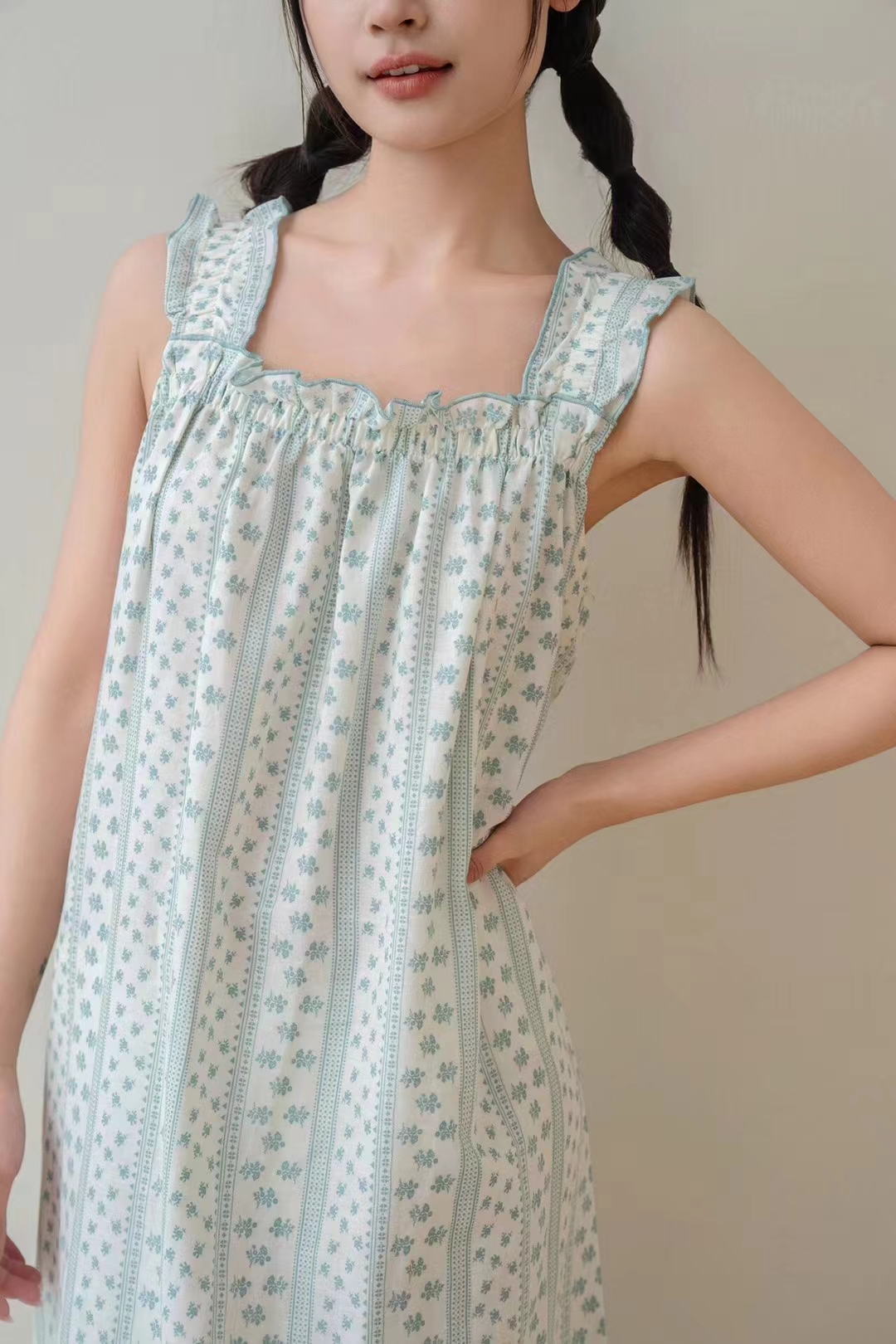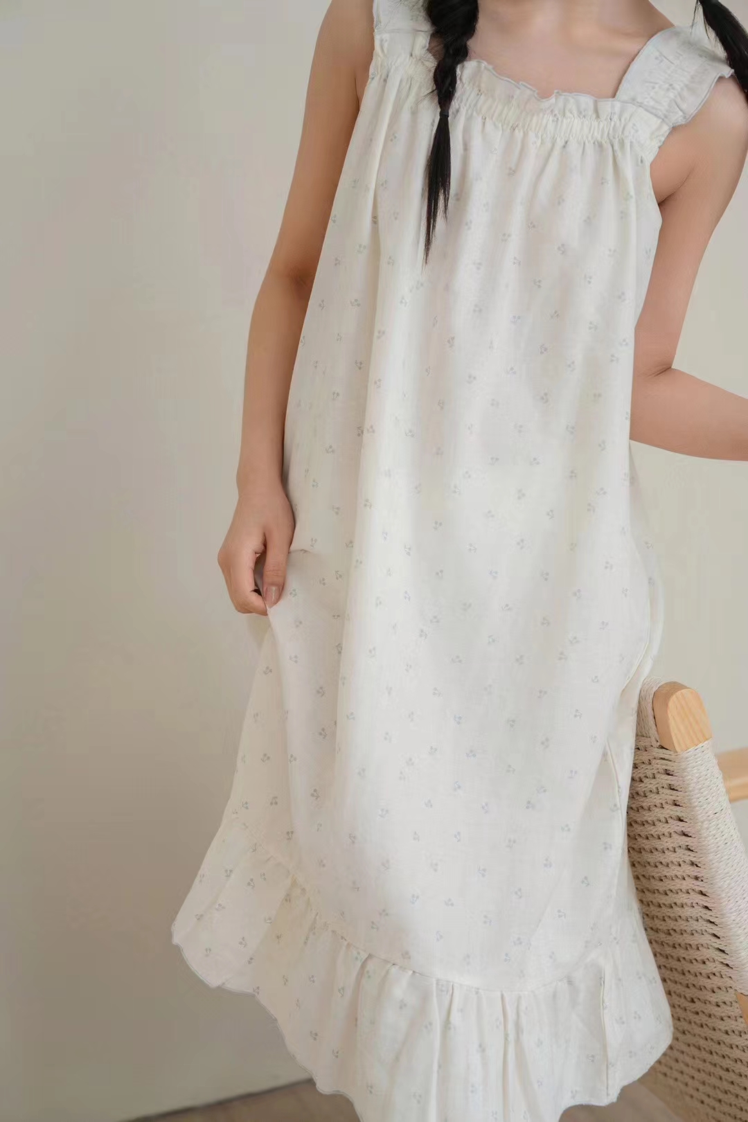 蔓秋2024春夏新款家居裙 全棉舒适双层纱面料均码