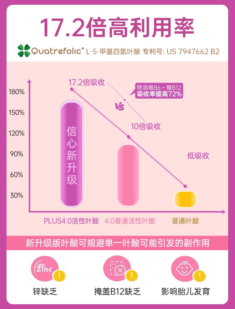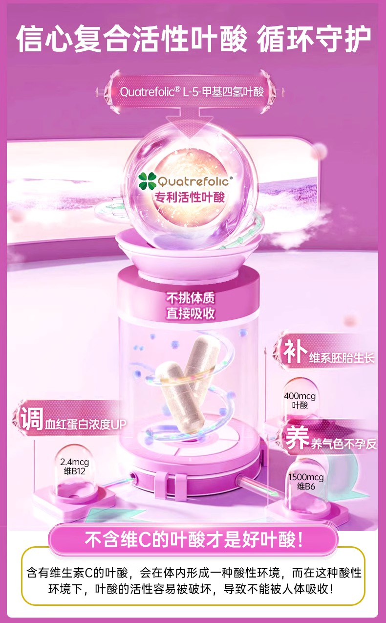 信心康乐400mcg活性叶酸孕妇叶酸孕前孕早期营养30粒/瓶 WH