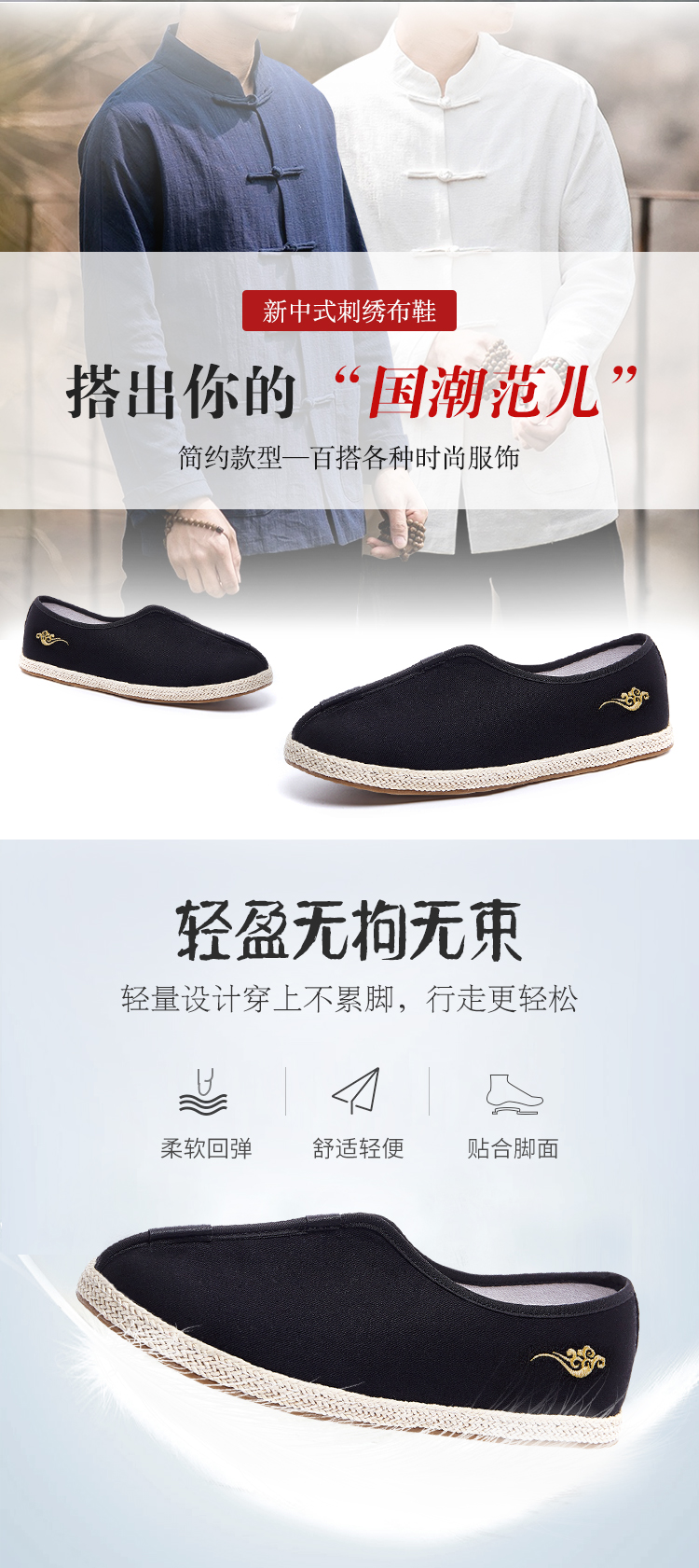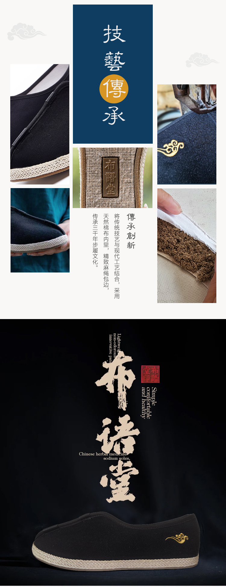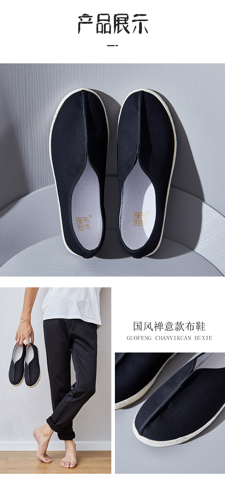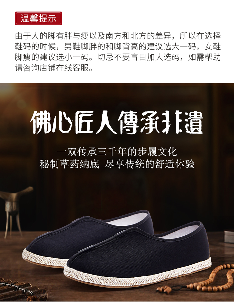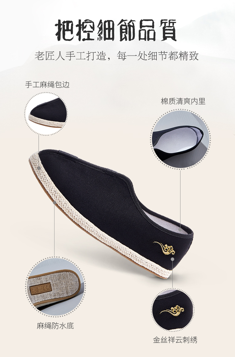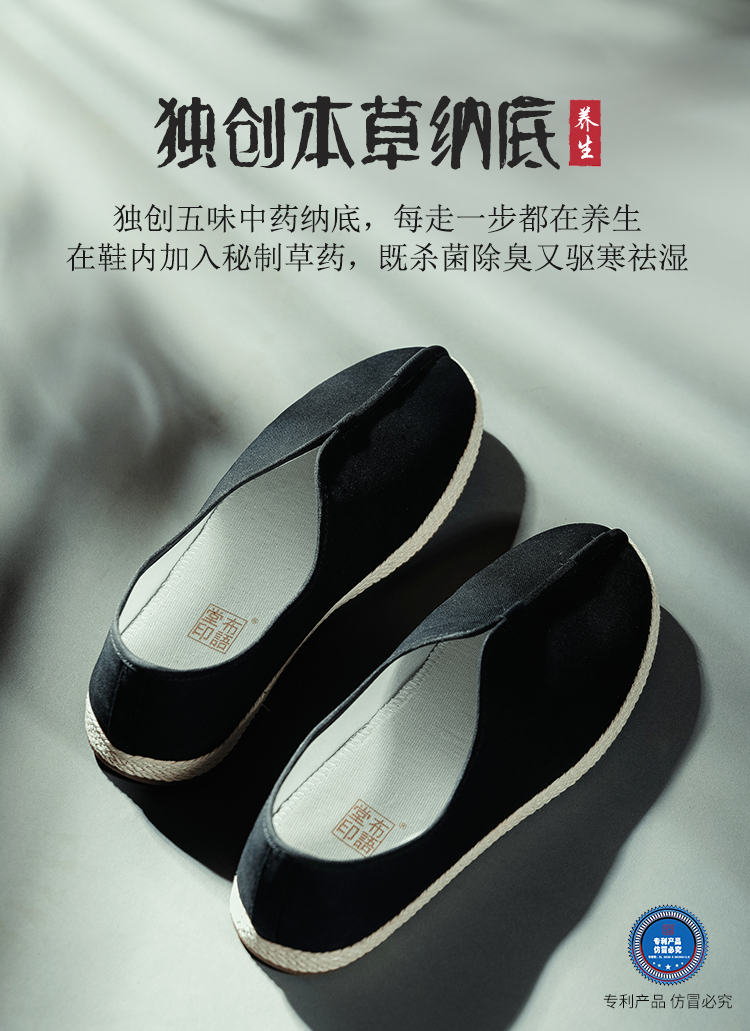 布语堂 老布系列老布鞋 禅意黑色刺绣款(男女同款) 非遗本草手工布鞋 (男女同款) 老北京老布鞋 中国风
