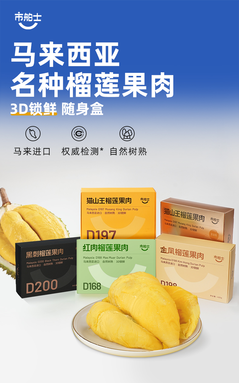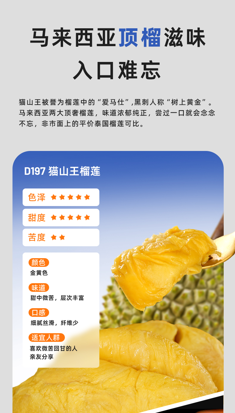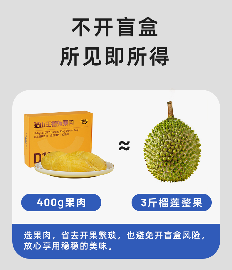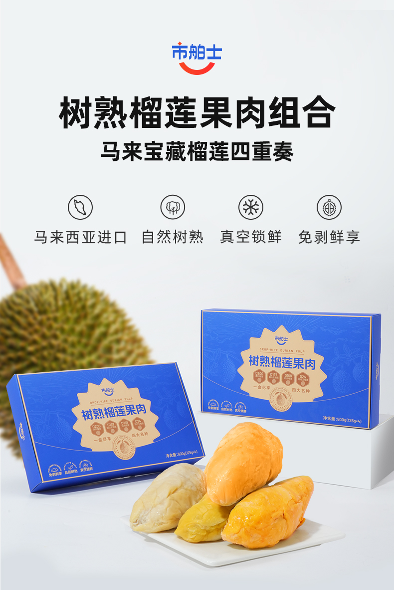 树熟榴莲果肉拼盘/树熟猫山王果肉马来西亚黄金产区直采 自然树熟高山老树榴莲肉 赠保鲜收纳袋【拼盘需预售15天,其他规格48小时发货】
