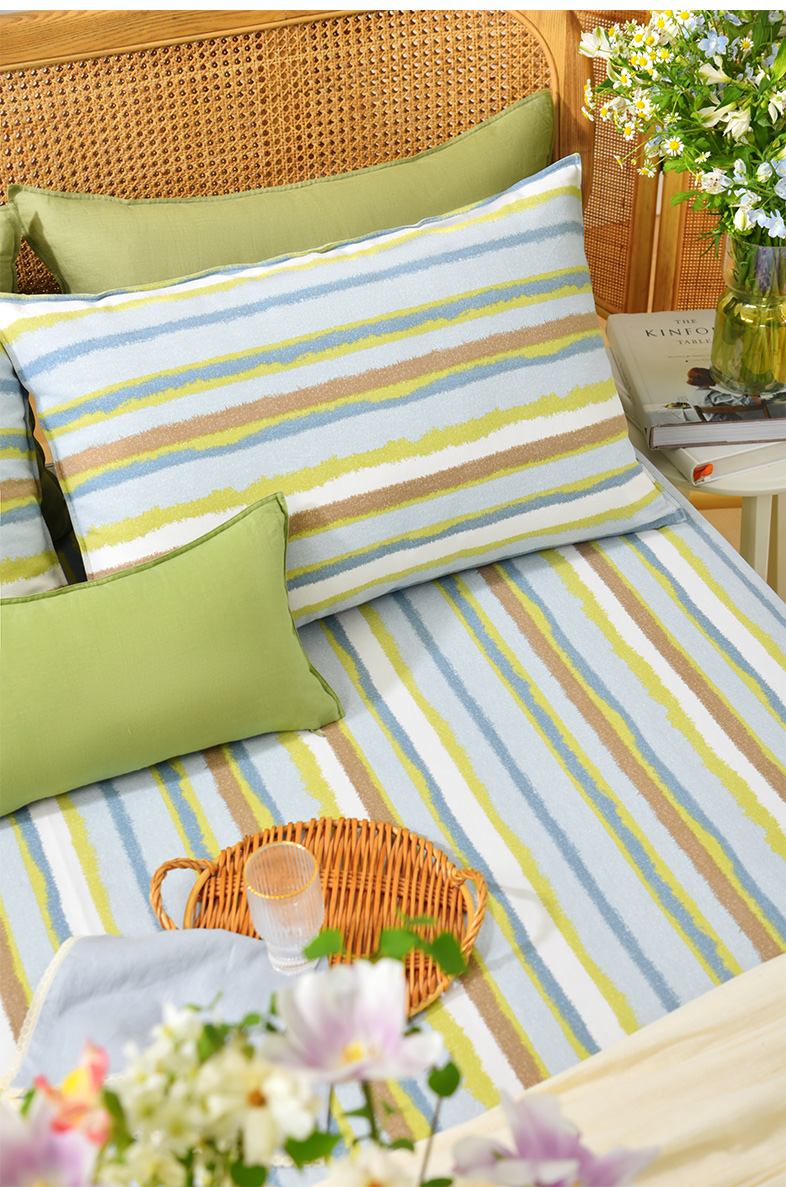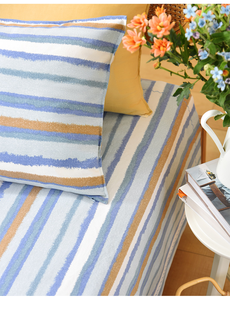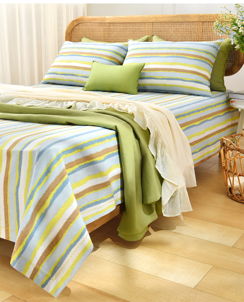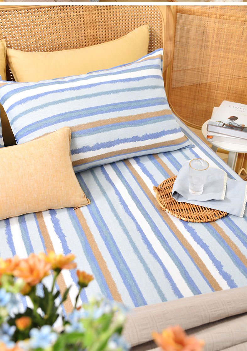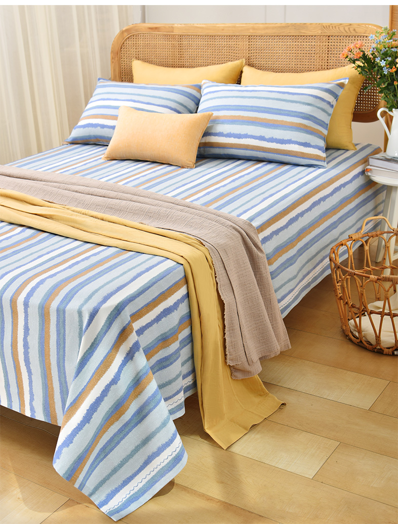 珊瑚条纹床单枕套床单纯棉100全棉防滑夏季双人定制