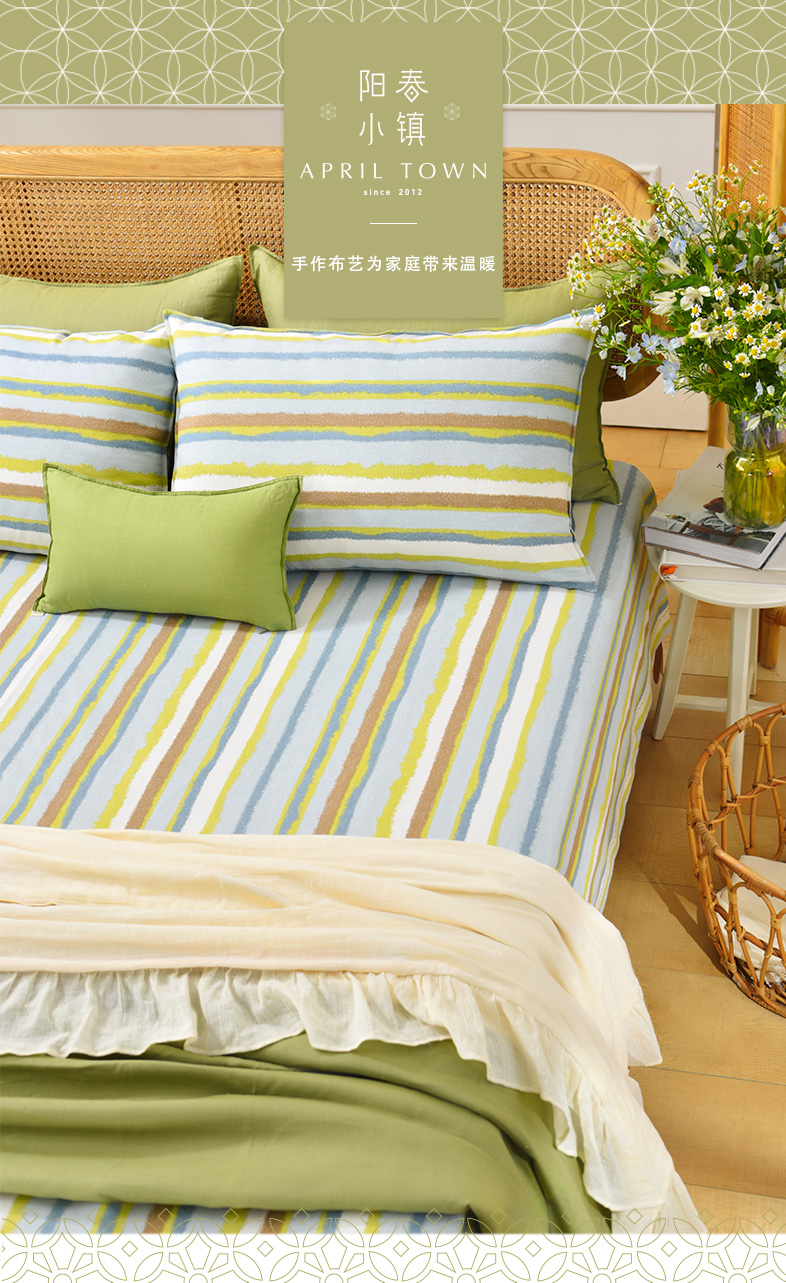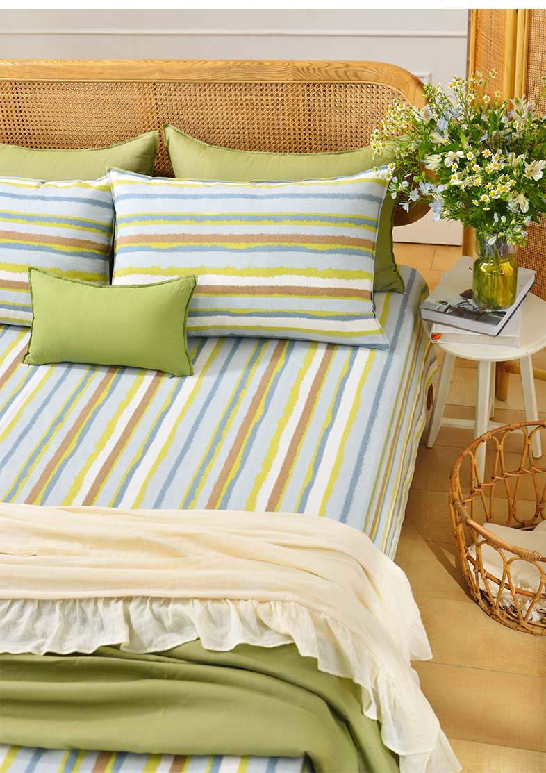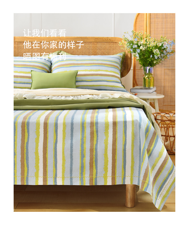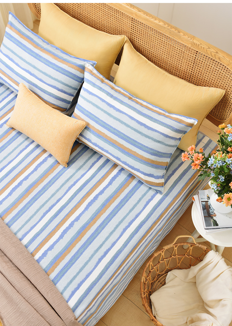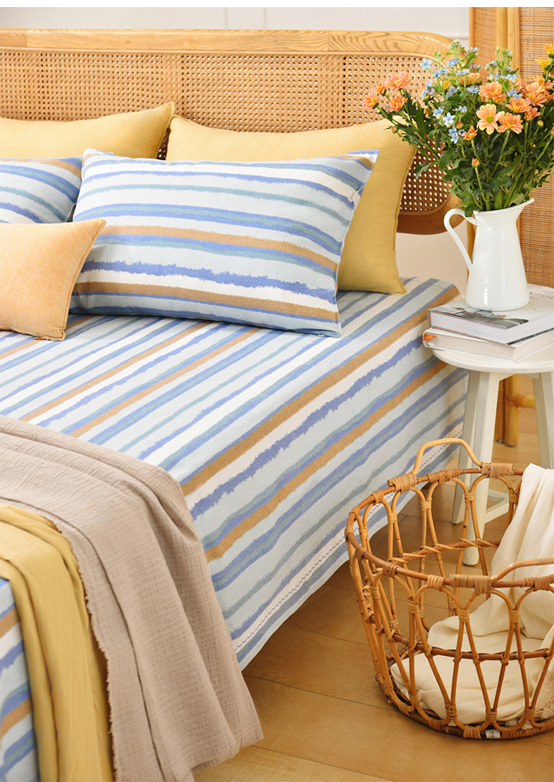 珊瑚条纹床单枕套床单纯棉100全棉防滑夏季双人定制
