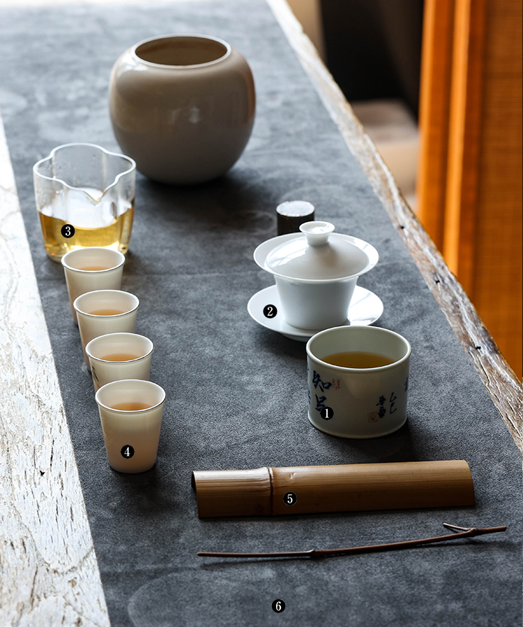 茶香记 邓华章手绘书法知足常乐马蹄杯130ml茶杯主人杯茶室茶具
