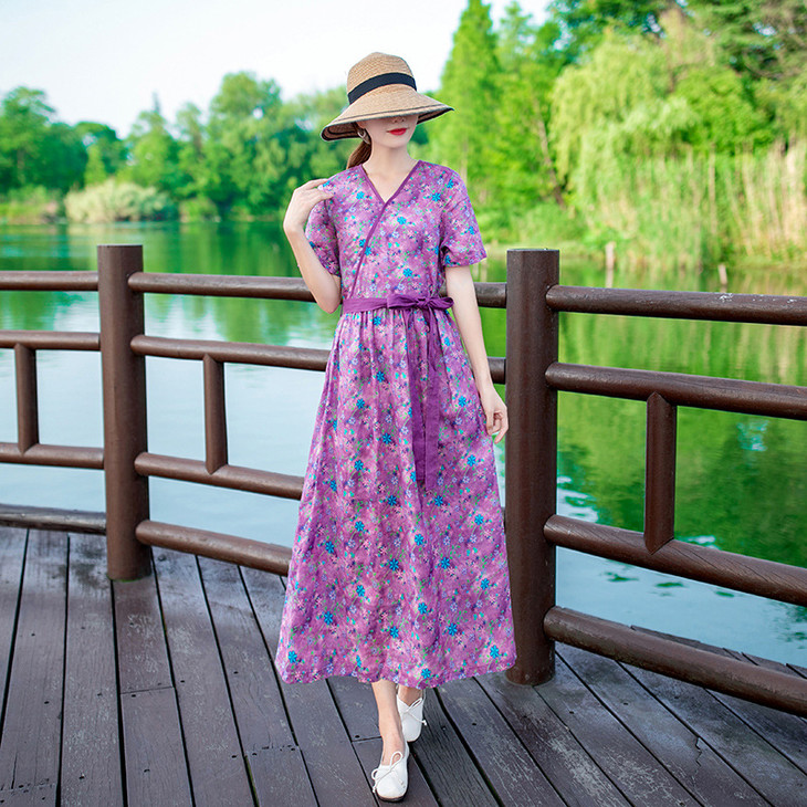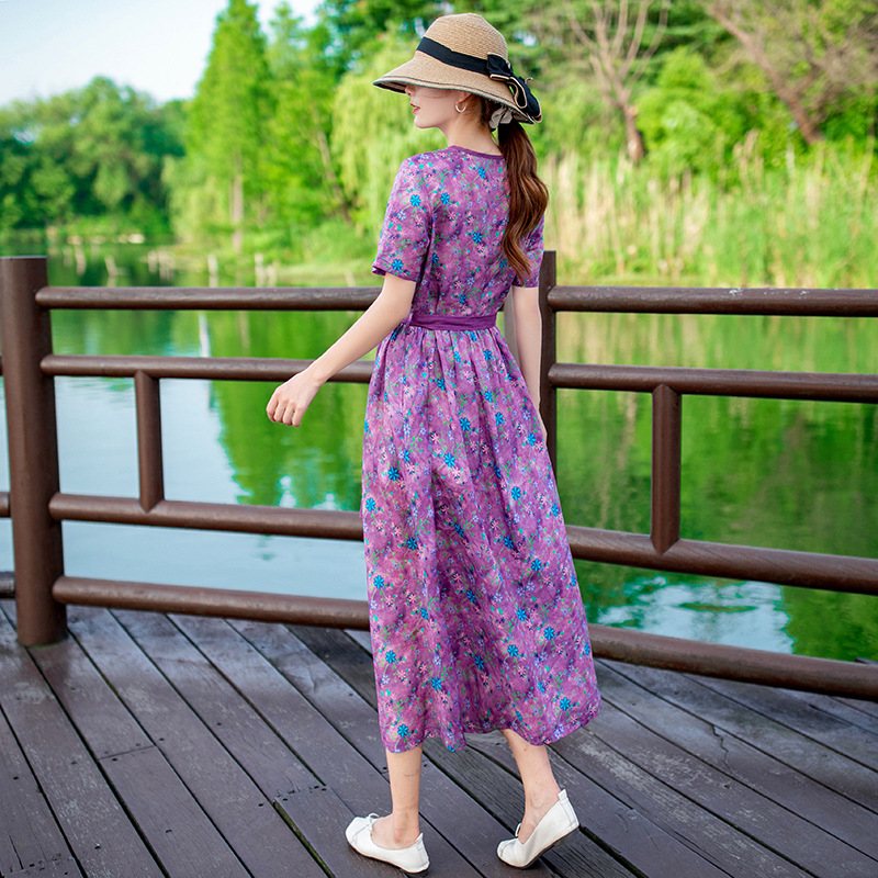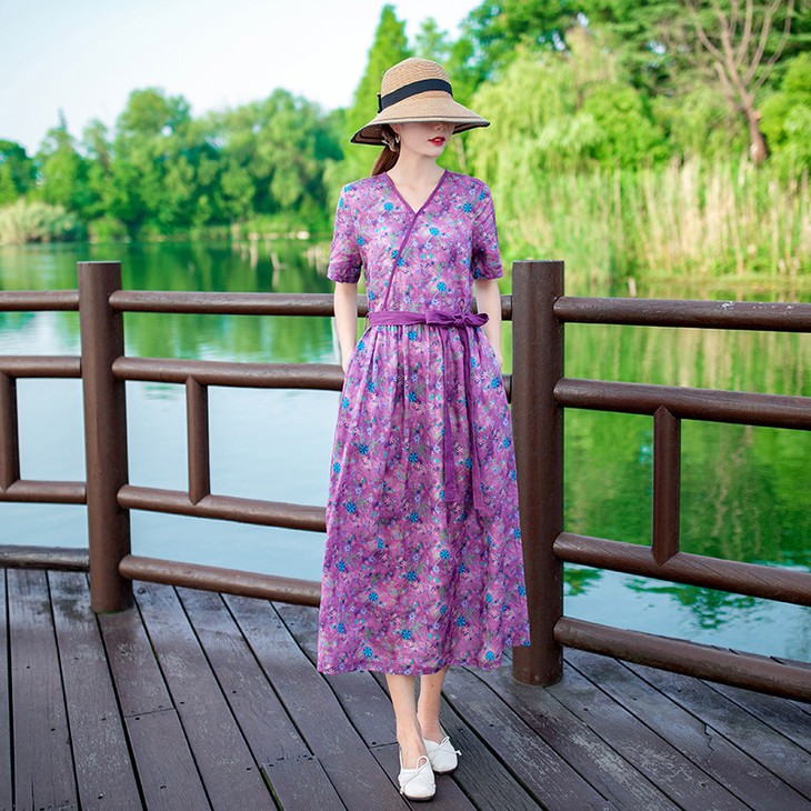 LTFS069新款收腰气质原创纯苎麻连衣裙
