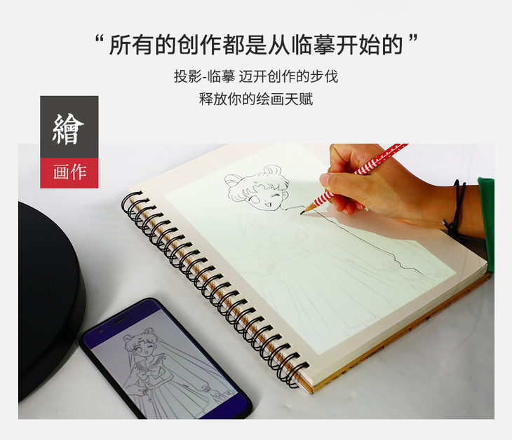【店主使用心得】书画学习,临摹是最核心的手段,传统的临摹,存在看不清、临不准的问题,本款书画仪拷贝台,利用科技手段,很好的解决了这个问题,可以把手机里的书法字帖、绘画作品投影出来,实际投影面积,最大可达4尺,最小可临硬笔字,非常方便。