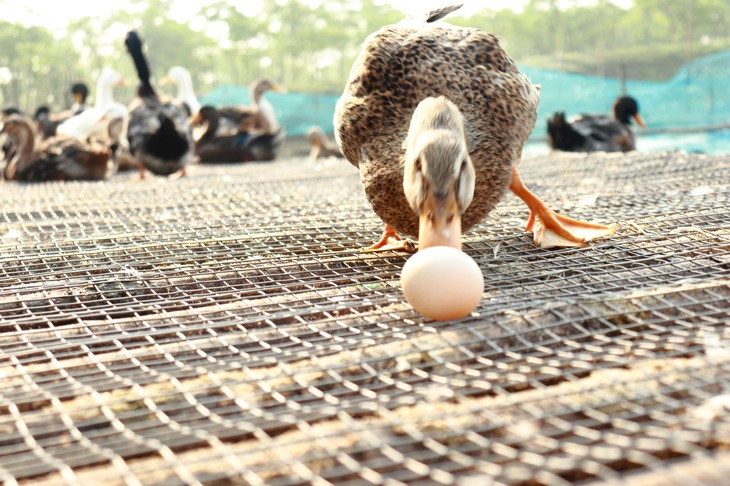 12日龄小鸭从今年5月上旬在农园开始喂养,头顶荫凉的遮阳棚,脚踩镂空的木条,它们是畜牧类中最悠闲自得的一个群体。