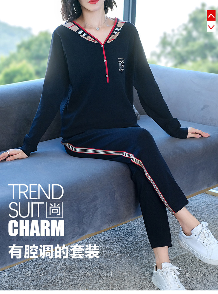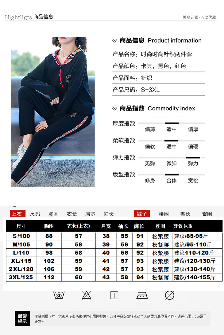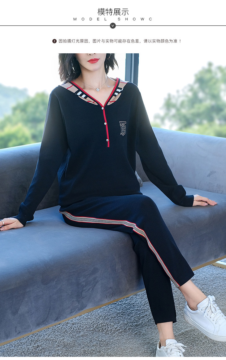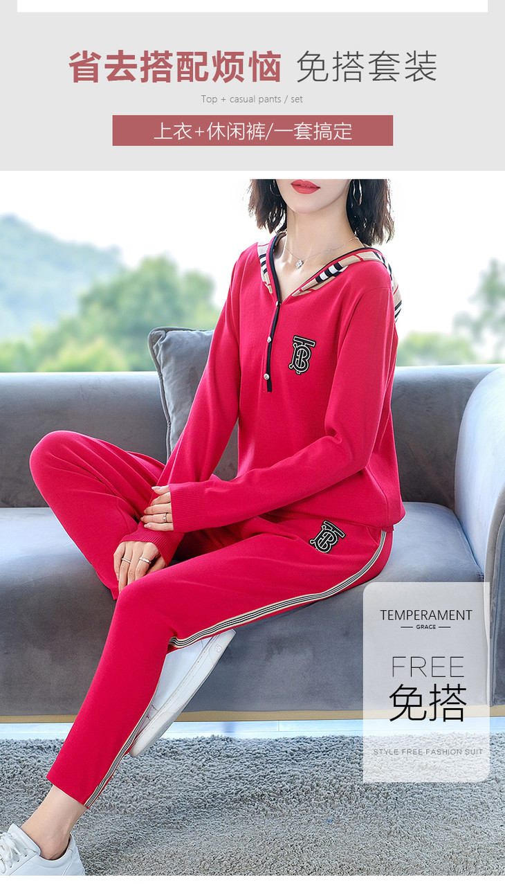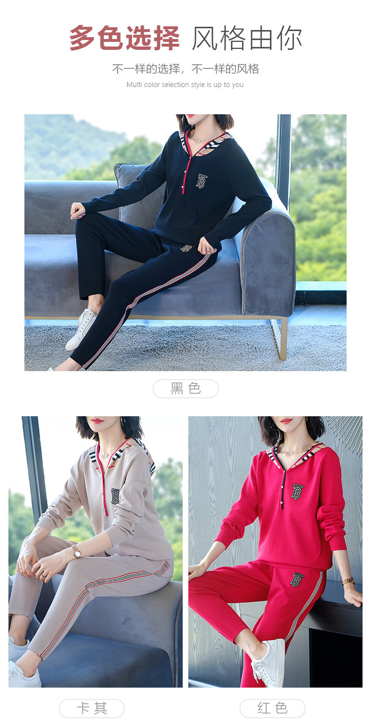 RWQ8319 大码女装品牌运动服休闲套装显瘦胖mm春秋季时尚针织两件套宽松潮