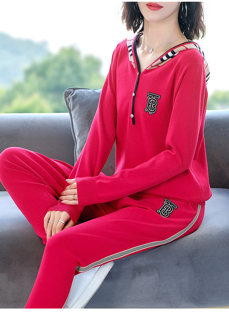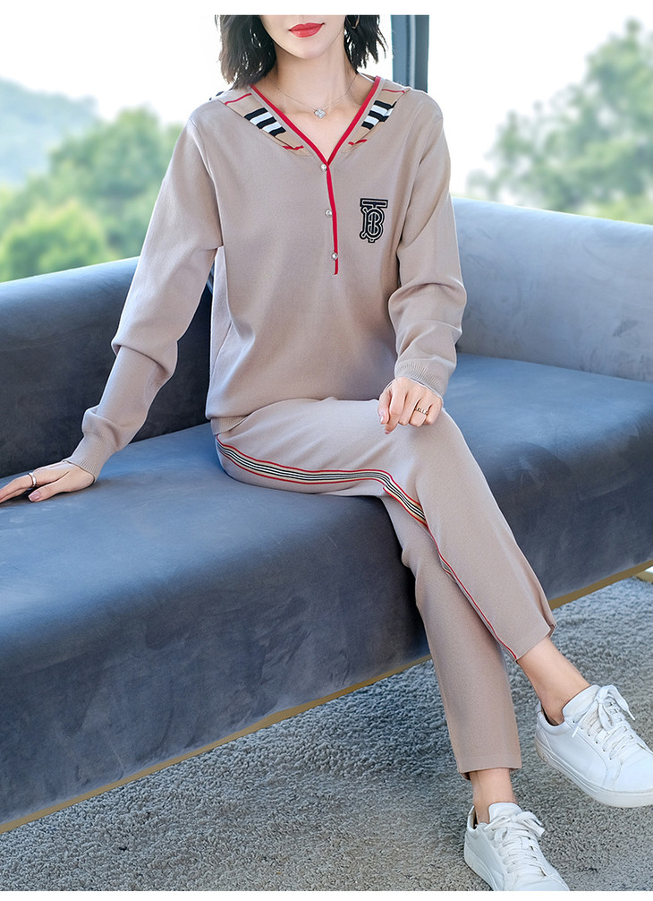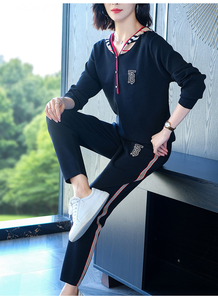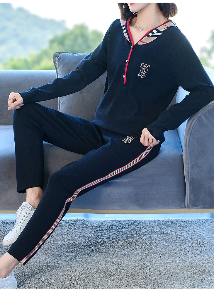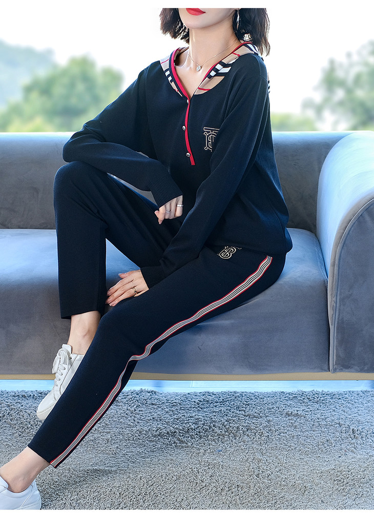 RWQ8319 大码女装品牌运动服休闲套装显瘦胖mm春秋季时尚针织两件套宽松潮