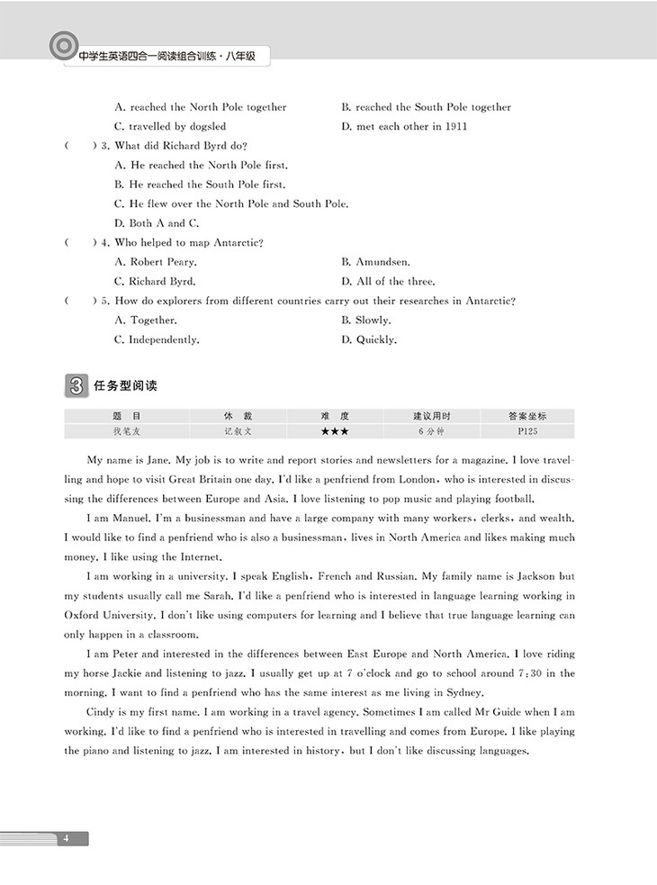 书名:中学生英语四合一阅读组合训练·八年级·提高版