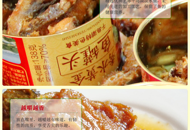 千岛湖好山好水产好鱼,味道鲜美可口,骨质松软,香酥味美适合旅行野餐、办公室零食、餐桌新宠,无鱼刺处理老人小孩都可以放心食用。