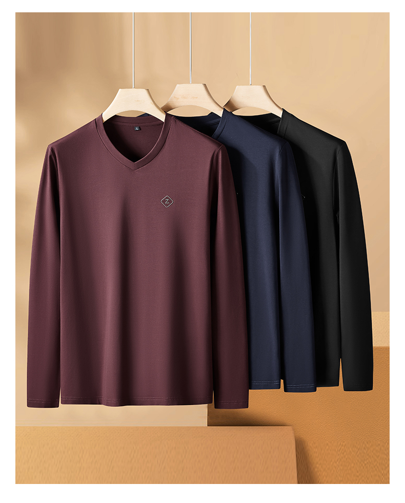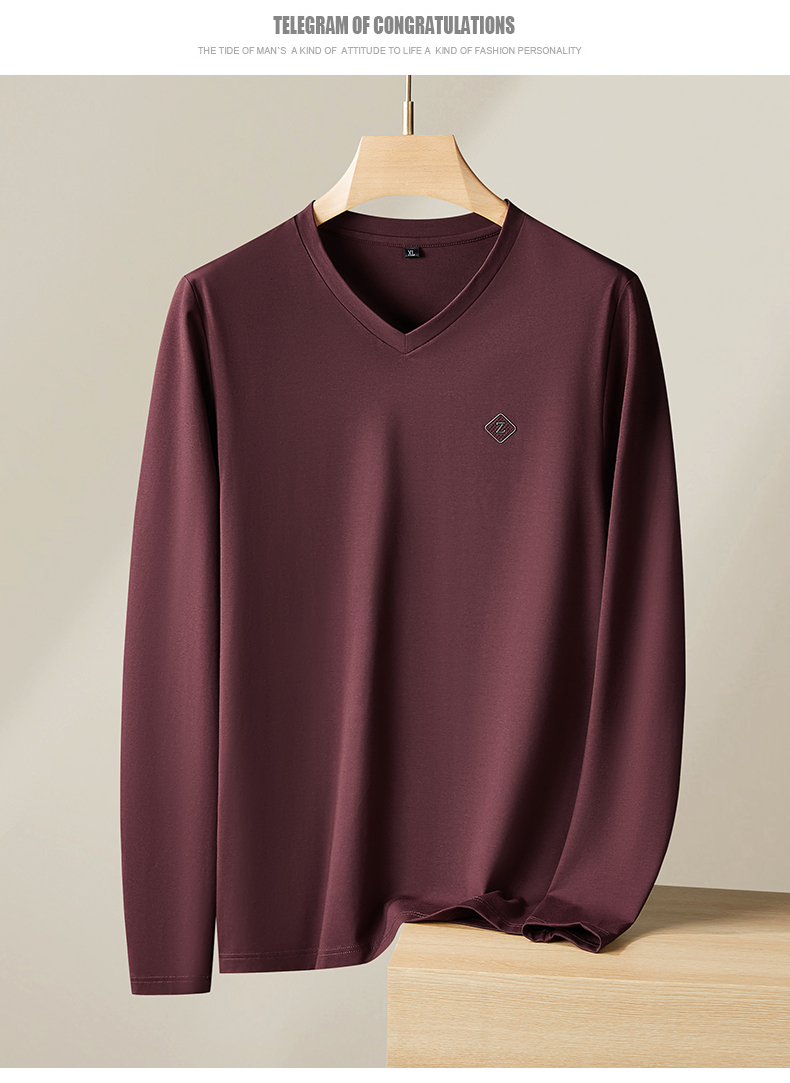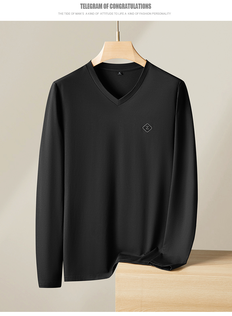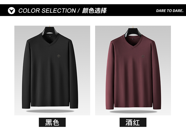 【一口价】莫代尔【新款DPF】大依优型大码V领长袖T恤休闲加肥加大上衣男士胖子体恤打底