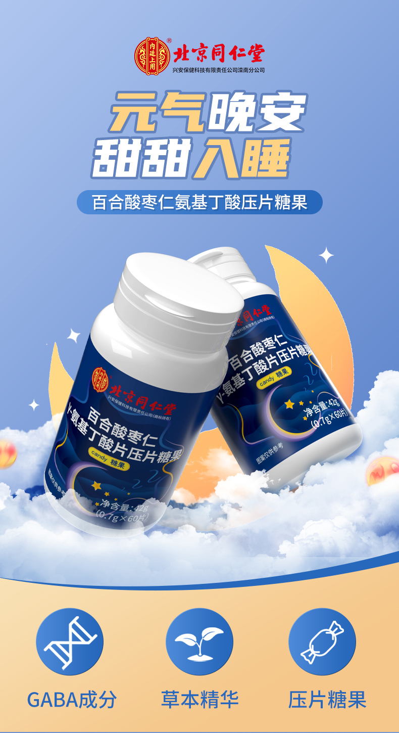 北京同仁堂-百合酸枣仁氨基丁酸压片糖果42g 42g/瓶*1 42g/瓶*2 42g/瓶*3 42g/瓶*5