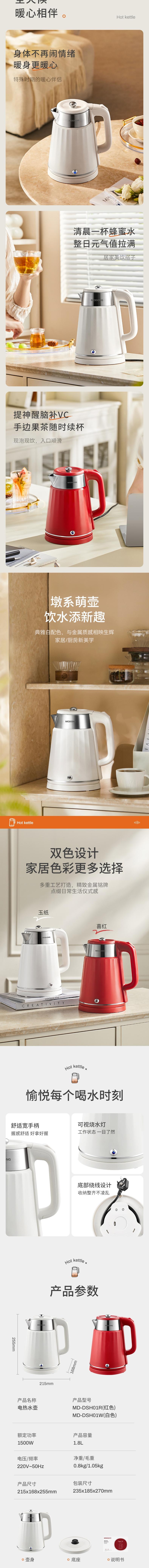 摩动 电热水壶1.8L MD-DSH01R