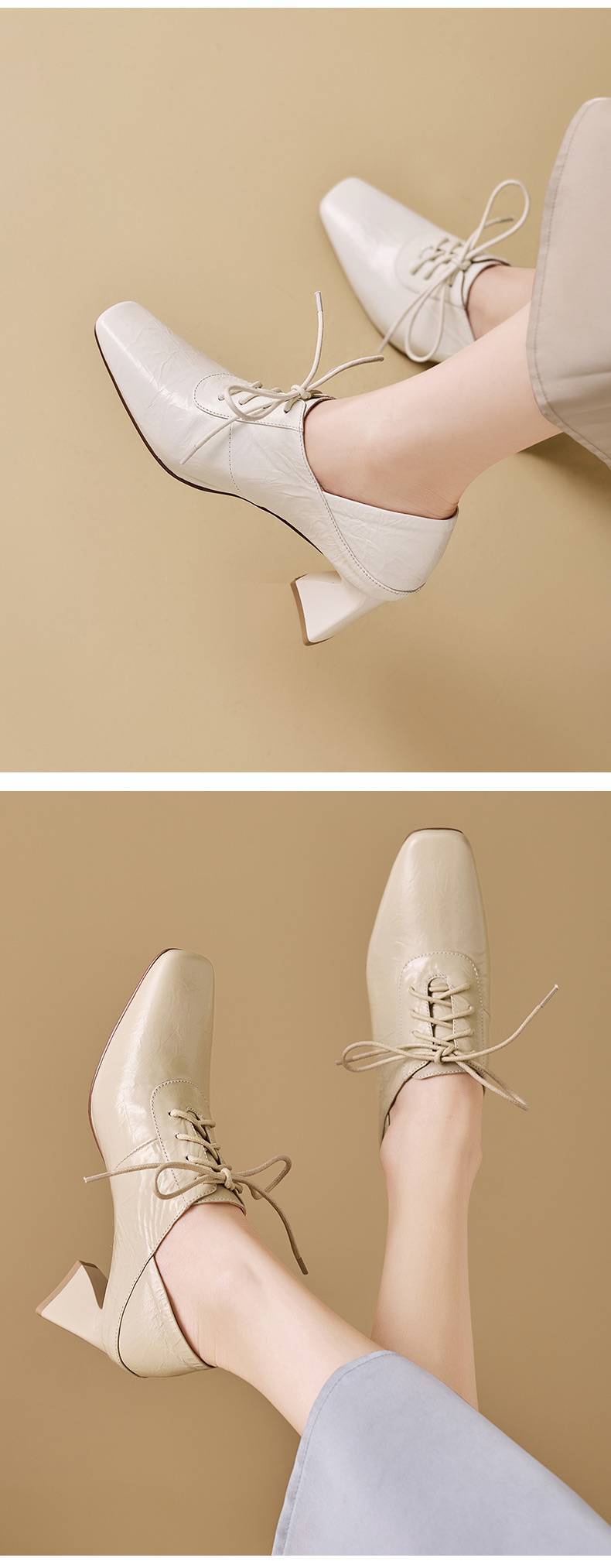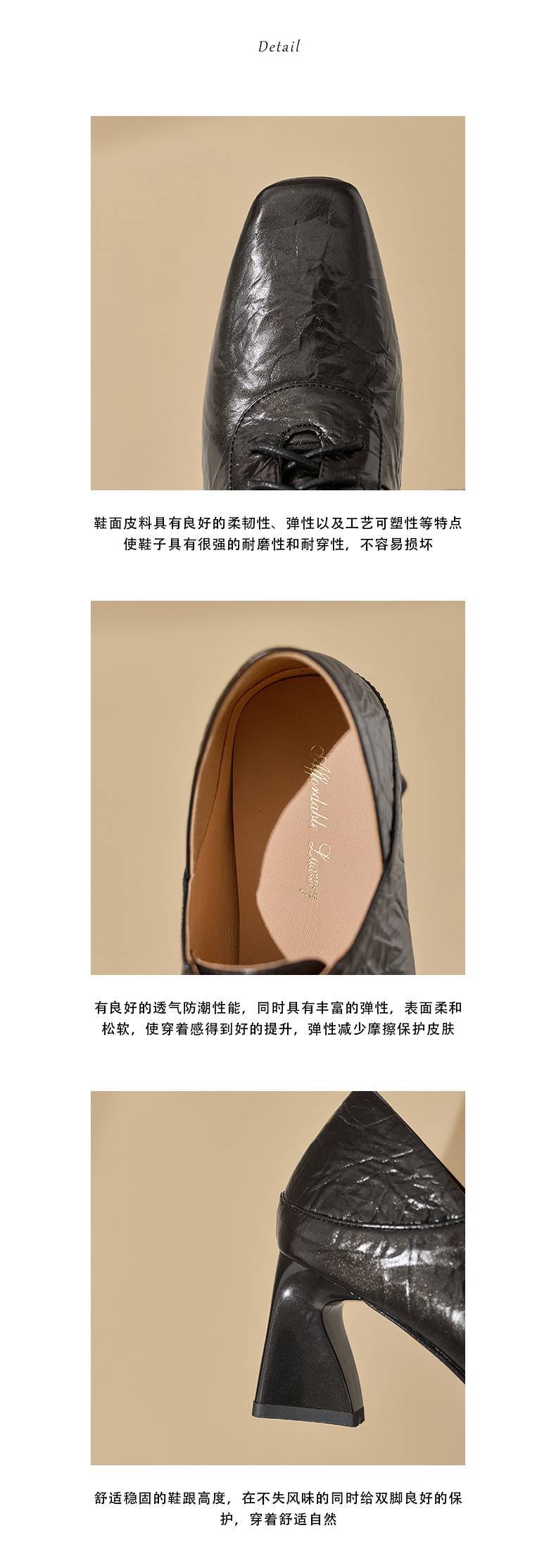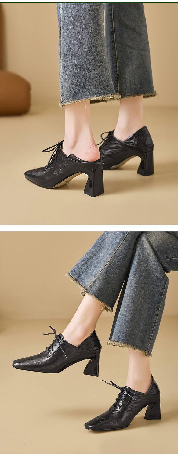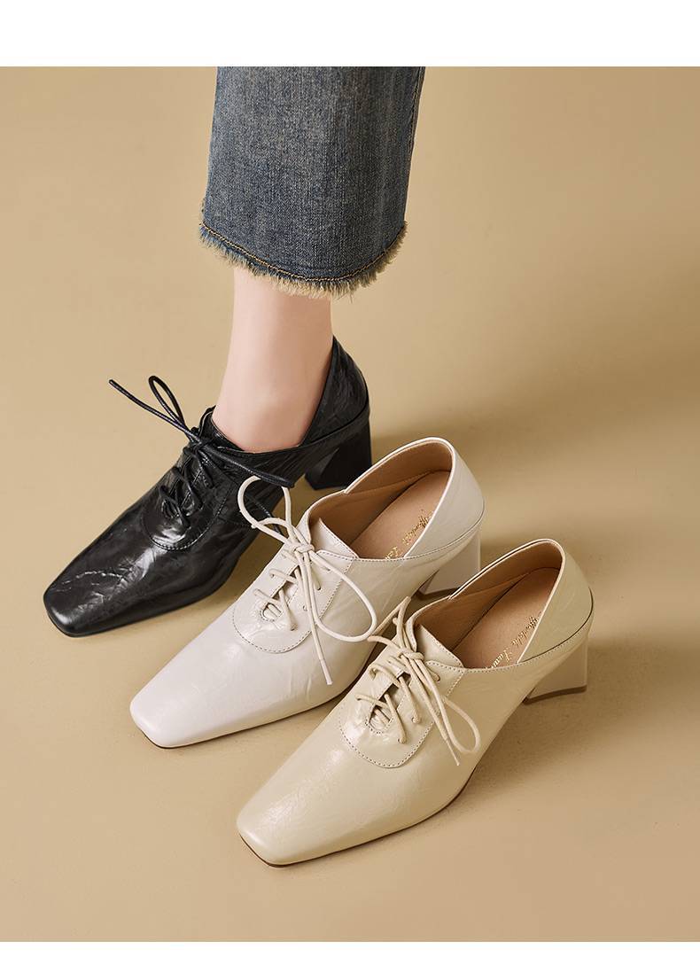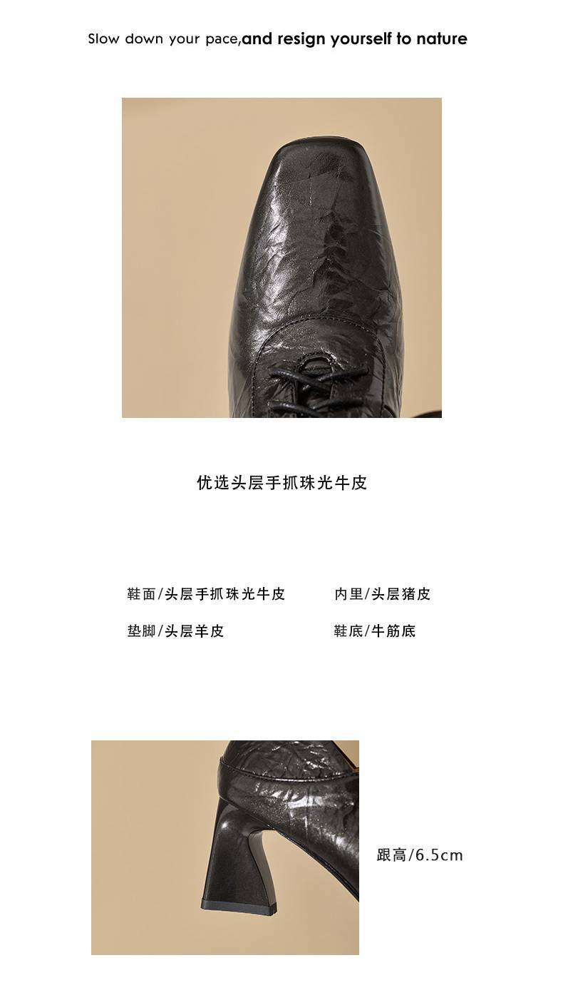 【预售5天】新款真皮系带小皮鞋女粗跟方头时尚高跟深口单鞋百搭女鞋MBJR&5915