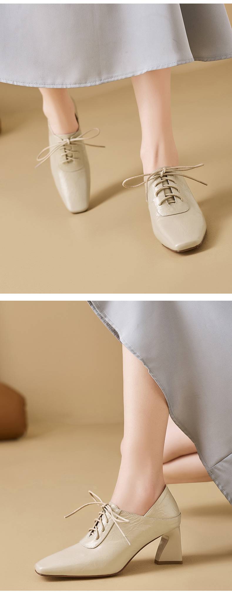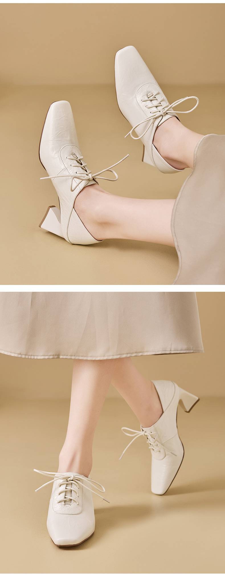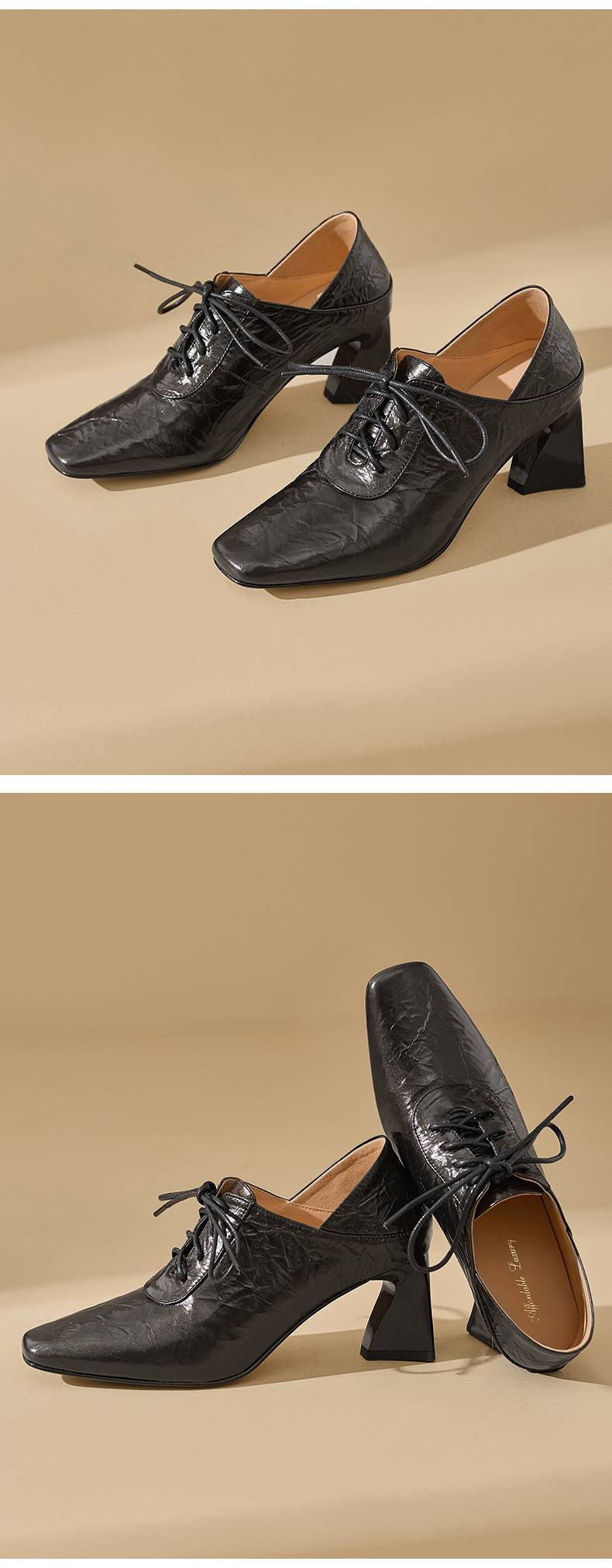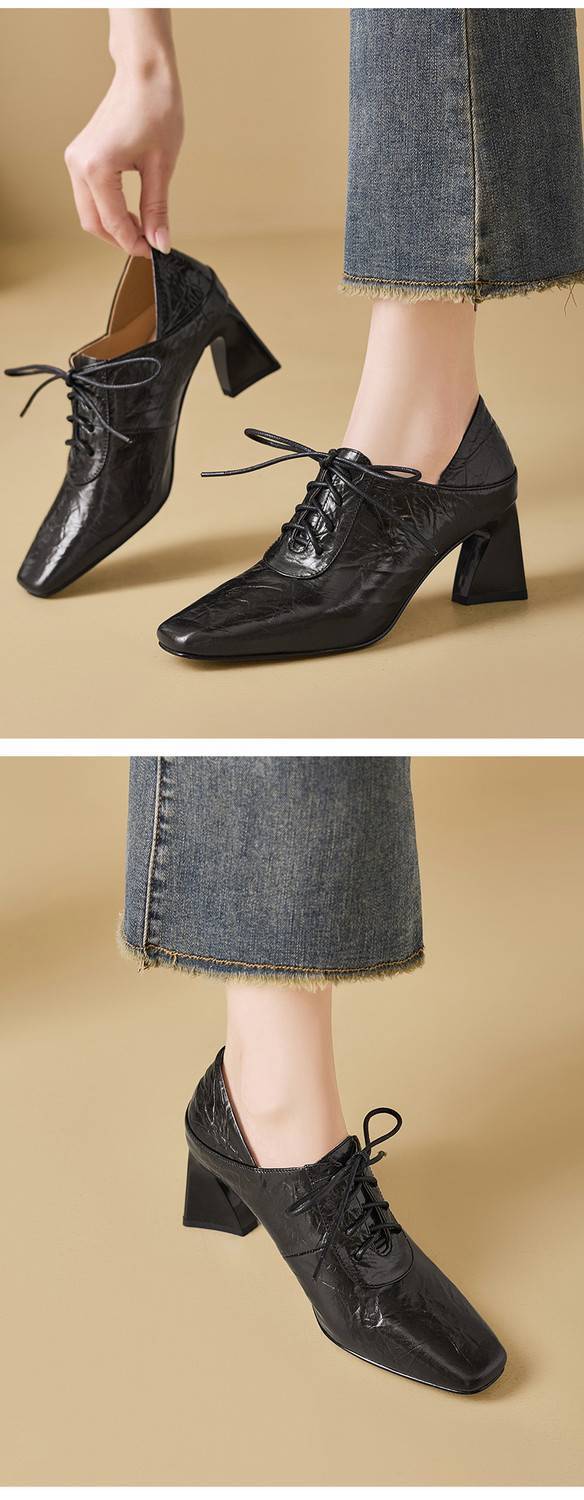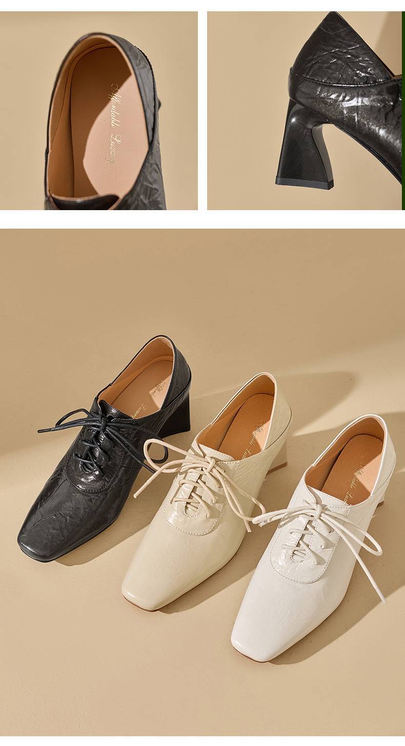 【预售5天】新款真皮系带小皮鞋女粗跟方头时尚高跟深口单鞋百搭女鞋MBJR&5915